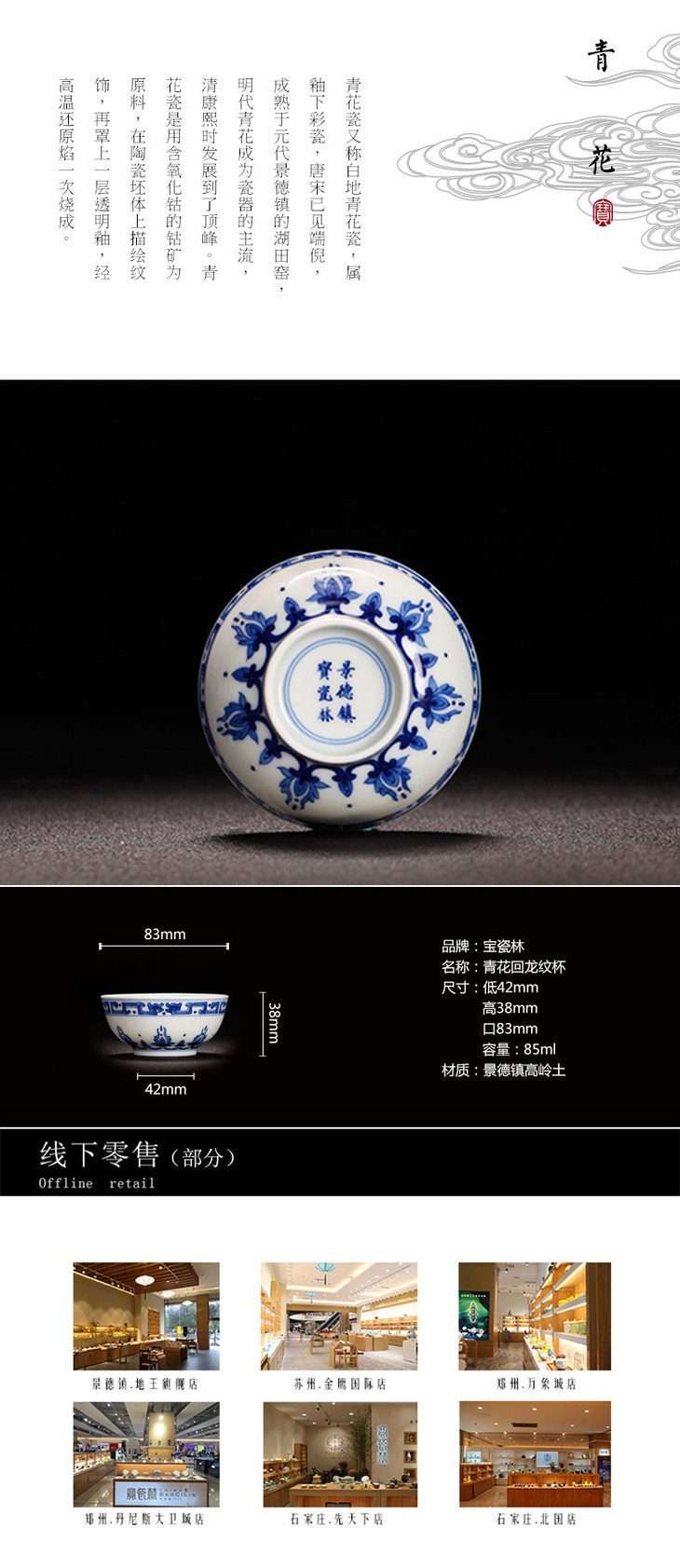 宝瓷林青花回龙纹杯