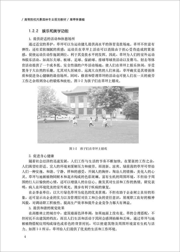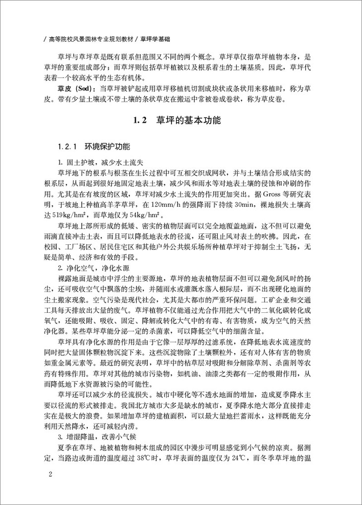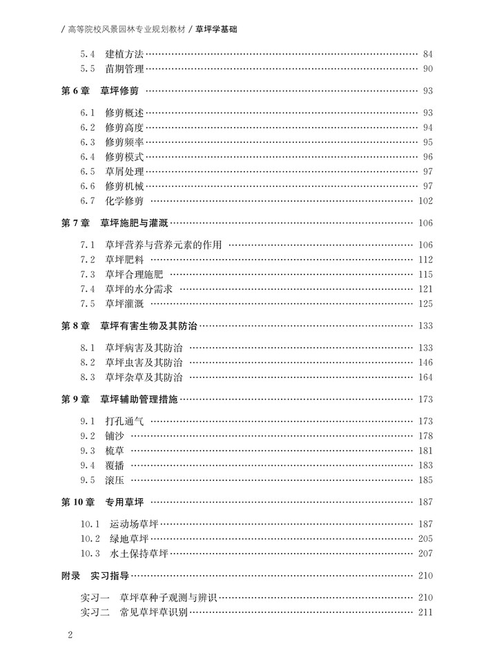 近20年,随着我国经济和社会的发展特别是城镇化步伐的加快,草坪在我国可以说已融入人们生活的方方面面。在校园、公园、社区、机关与企事业单位、城市绿化、运动场、旅游景点、机场、公路、铁路、河堤等应用领域,草坪或提供优美的景观,改善人居环境;或提供舒适、安全的竞技场地,提高运动和观赏效果;亦或促进生态环境改善,防止水土流失等。我国草坪业规模也不断扩大,相关的草坪公司或企业达数千家,提供了大量就业岗位。更令人欣慰的是,我国草坪科学研究与教育事业同样取得了较大成绩,不仅开展了较为系统的研究工作,还培养了一大批草坪专业技术人才。他们活跃在草坪及相关行业的公司或部门,整体提升了我国草坪设计、建植和管理水平。但在草坪应用调查中我们也注意到,在一些地方草坪建植和养护管理仍存在问题,如修剪不及时、施肥灌溉不合理、病虫害防治不科学、杂草危害严重等,其主要原因仍是缺乏具有草坪基本知识和实践能力的操作人员以及草坪科学养护管理的技术经验。为此,我们编写了《草坪学基础》一书奉献给读者,希望与行业人员一起继续为我国草坪业持续、健康发展贡献力量。