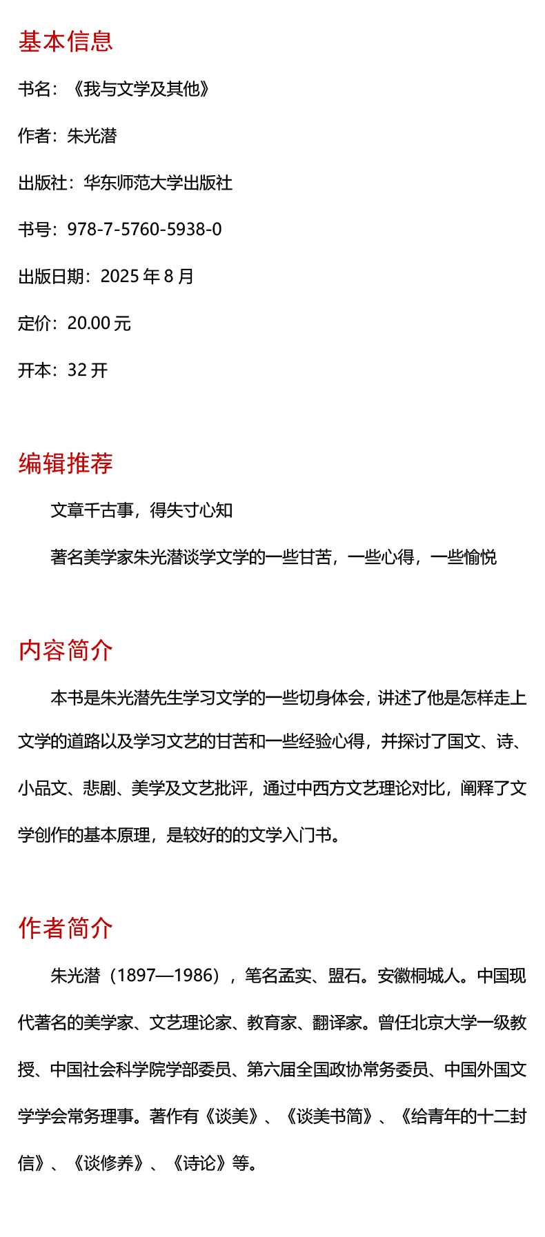我与文学及其他 美学家朱光潜谈学文学 文学入门书 朱光潜精品集