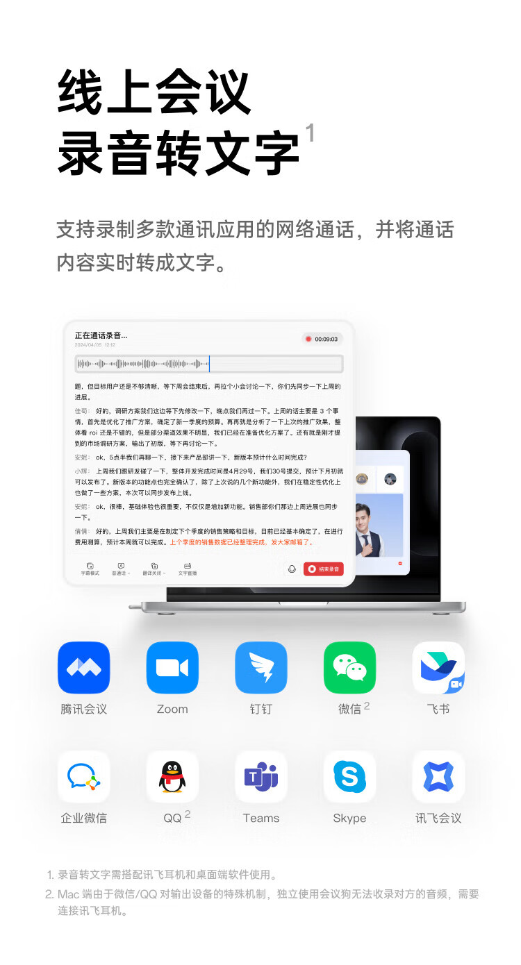 智能功能:搭载 viaim AI 技术,可一键生成 “摘要总结” 和 “待办事项”,帮助用户快速整理会议重点和关键任务。