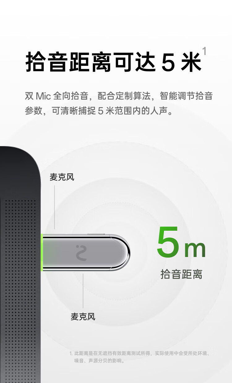拾音设备:采用双麦克风全向拾音技术,可清晰捕捉 5 米范围内的人声。
