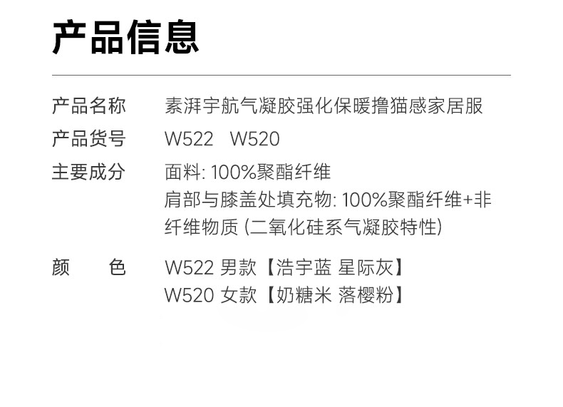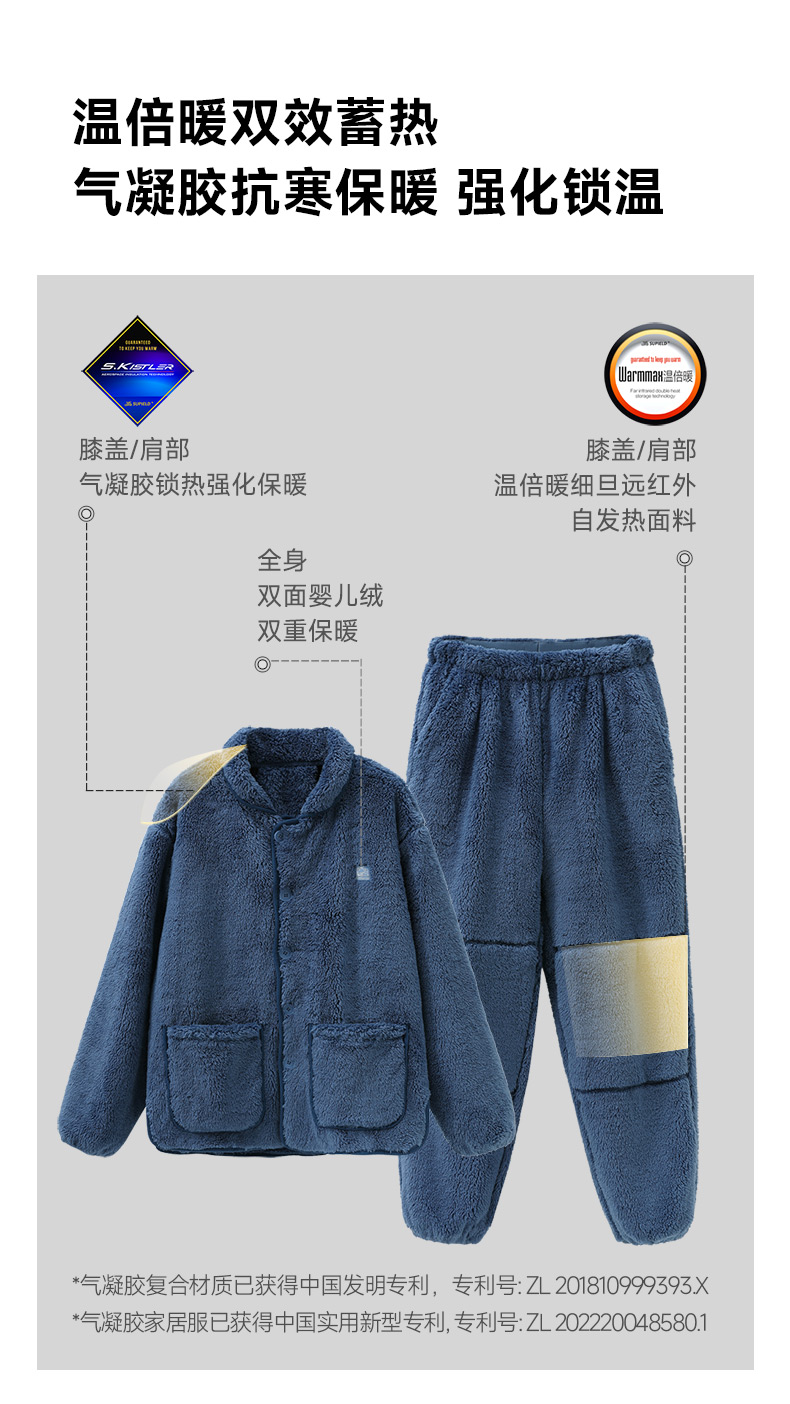 家居服【加厚毛绒 气凝胶锁温】素湃气凝胶保暖家居服520/522 仿生毛孔 透湿性强 大口袋储物