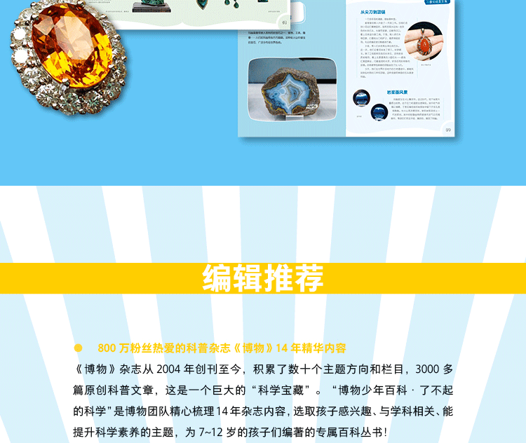 精选《博物》杂志14年精华内容,分别由博物学达人、地理学家、天文学家、动物行为研究学者和珠宝鉴定师们撰写和改编,以独特的视角,用精美的图片、轻松严谨的文字,成体系的科学知识,为孩子带来一次全新的科学之旅。