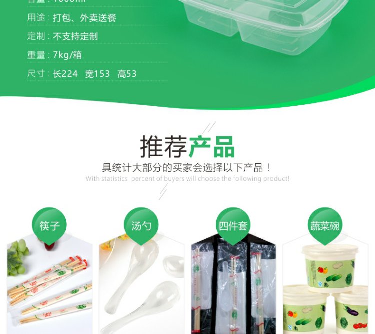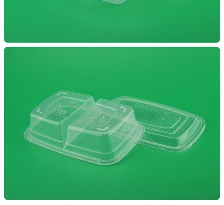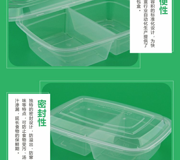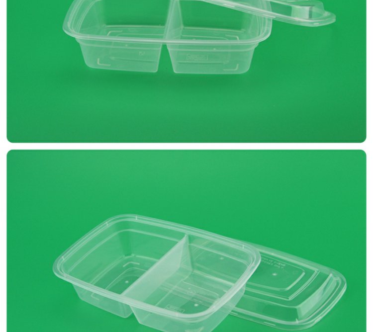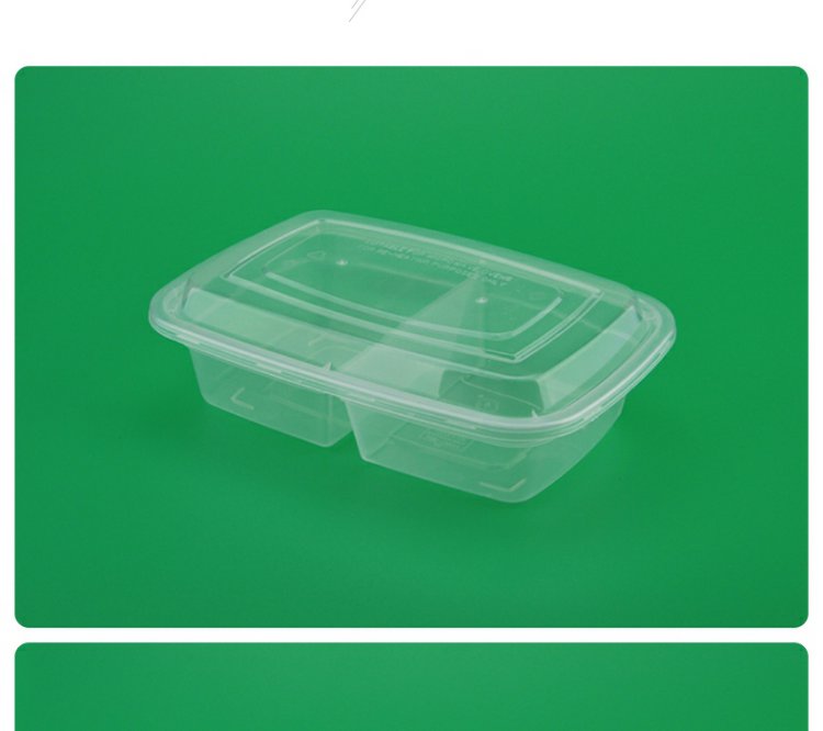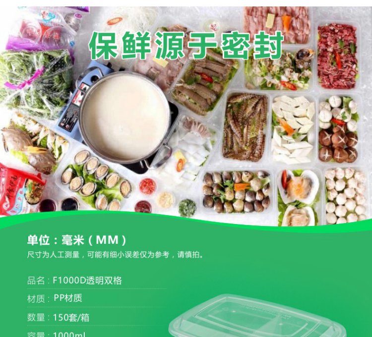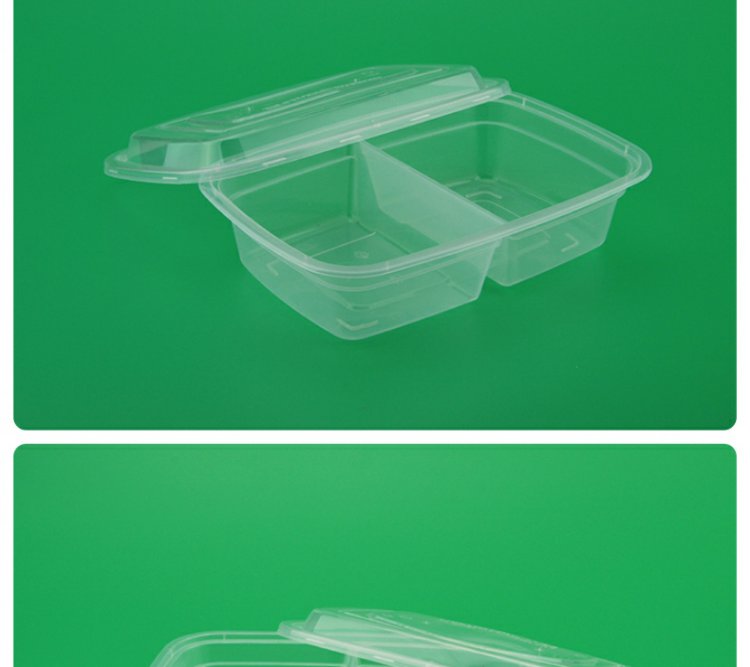 喇叭花1000ml透明打包盒一次性餐盒带盖双格便当盒日式饭盒150套