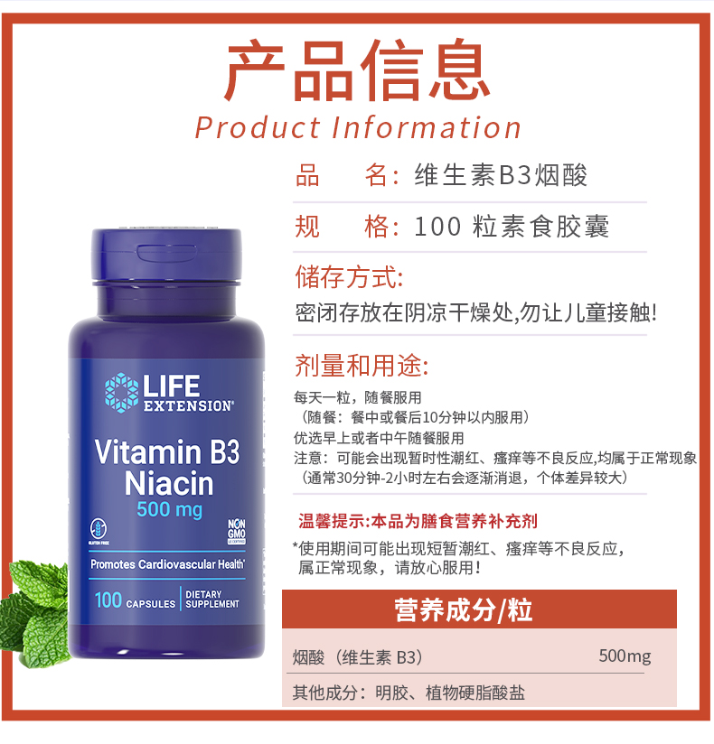 沿寿Life Extension维生素B3胶囊100粒