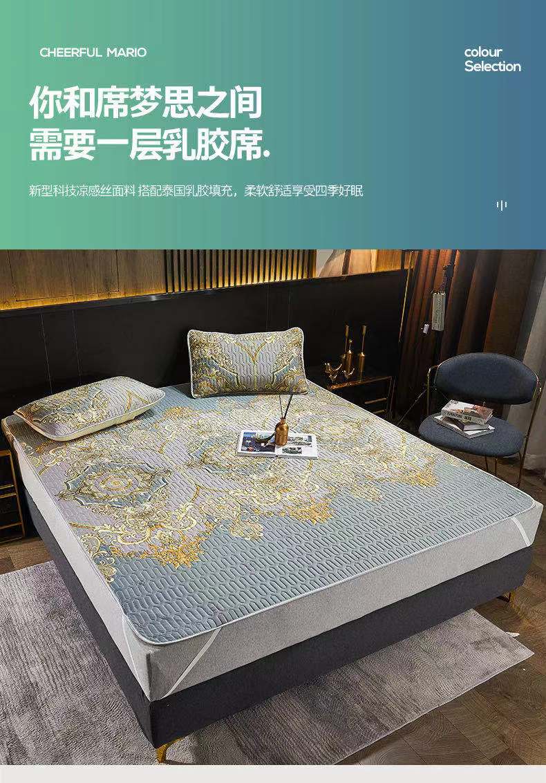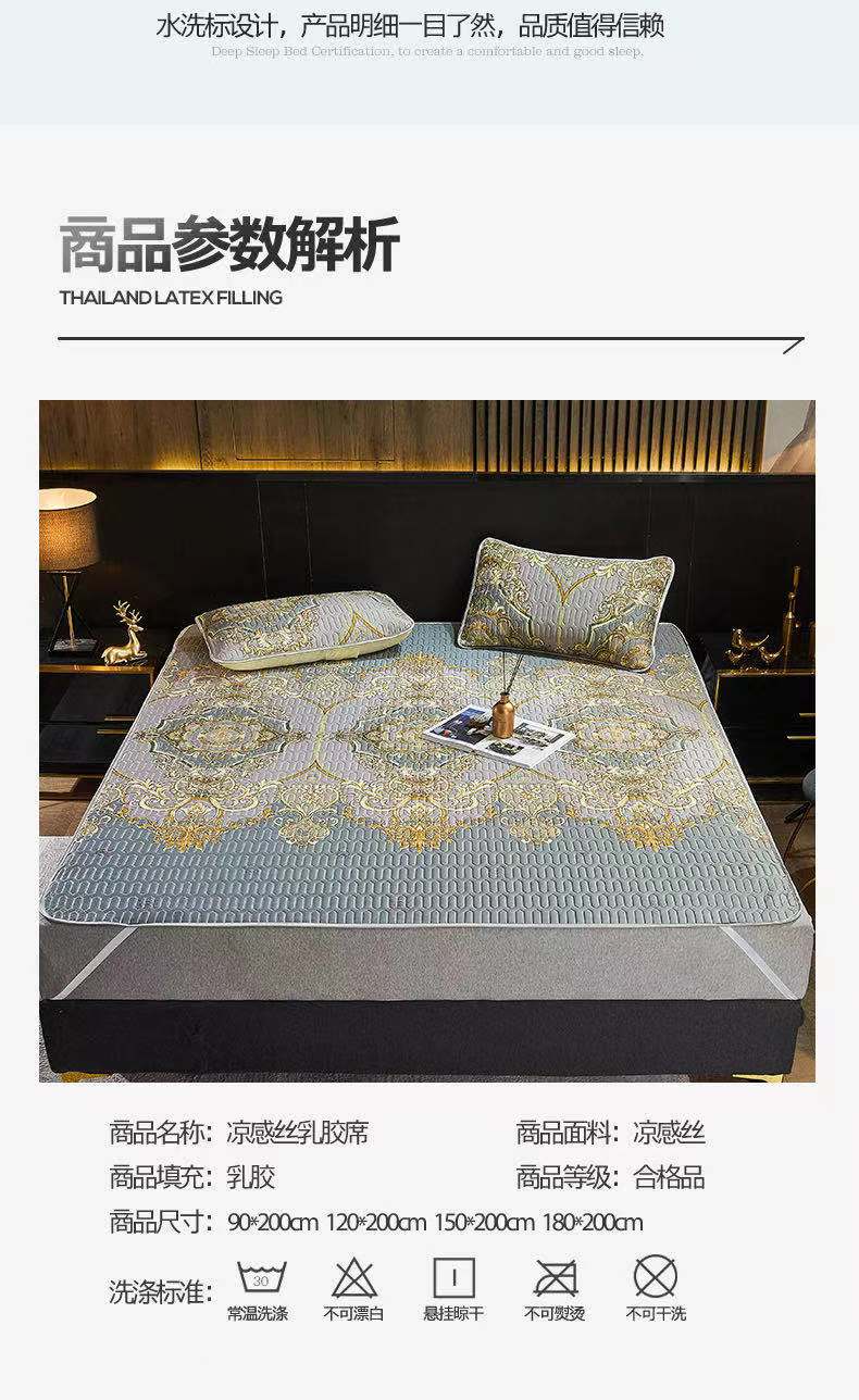 浪莎泰国乳胶凉席三件套空调软席子床可水洗可折叠夏季冰丝席家用