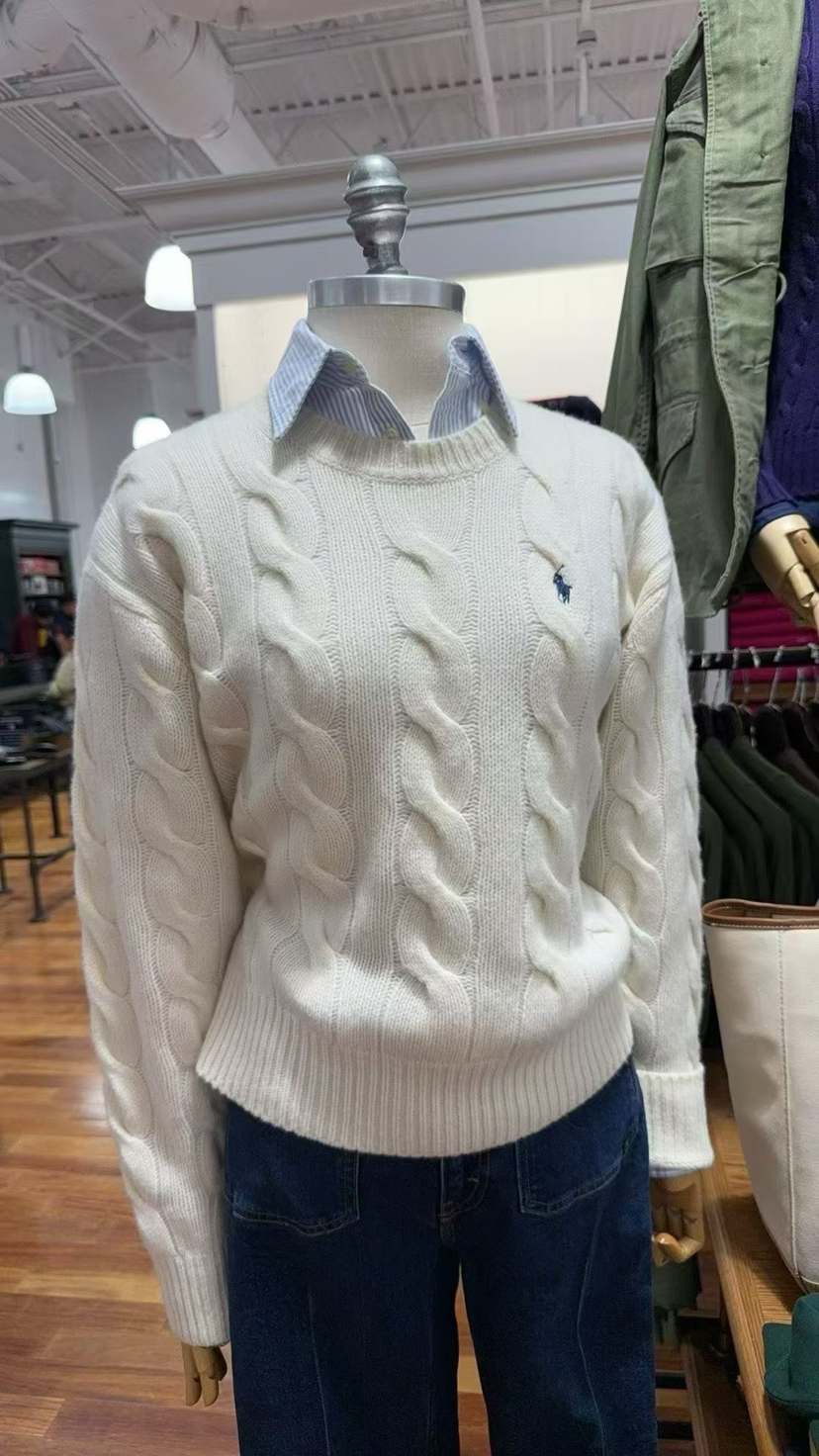 999 黑五巨折💢羊绒麻花🐏🇺🇸✨Ralph Lauren拉夫劳伦麻花羊毛针织衫🤍柔软90%羊毛+10%山羊绒,细腻又保暖