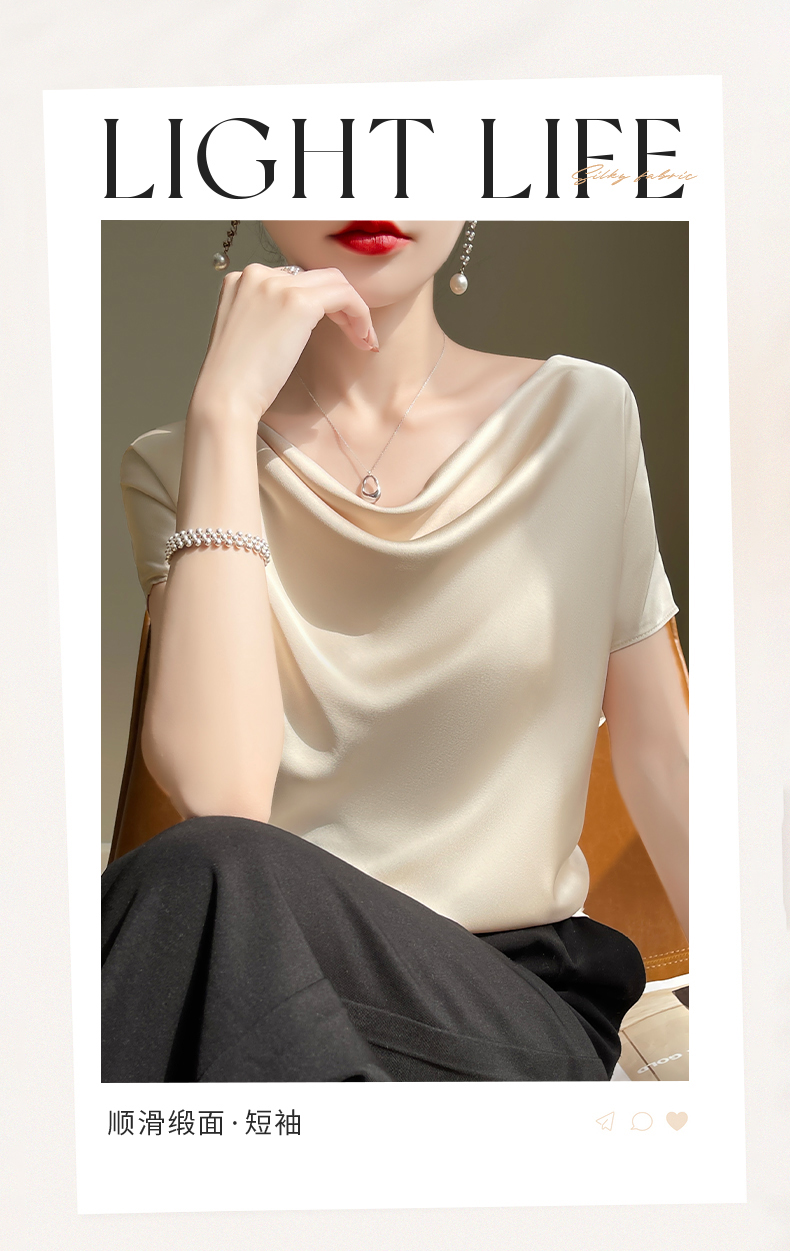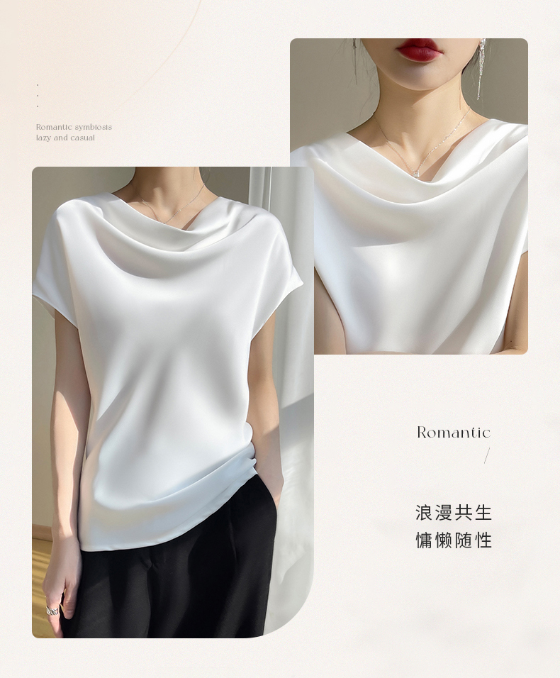 缤纷夏日仿真丝法式荡领T恤 RWA15