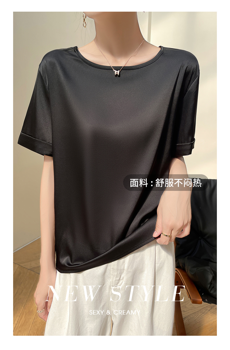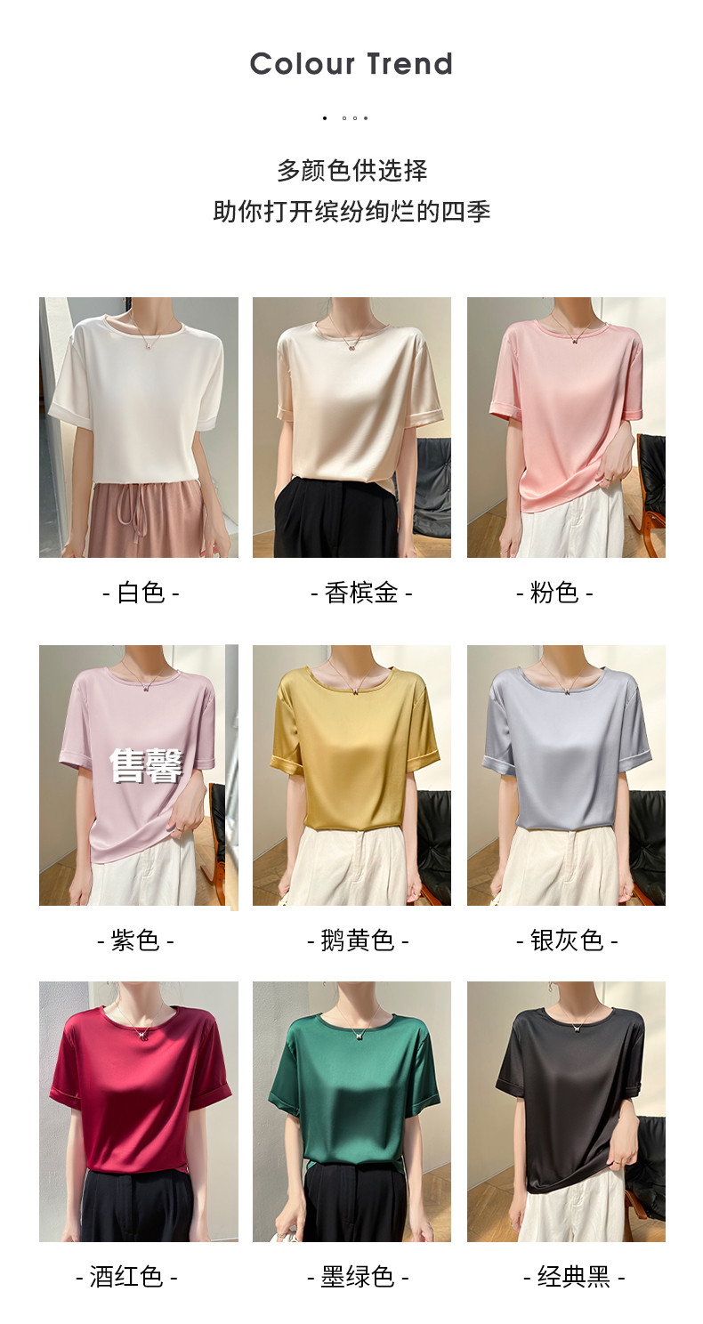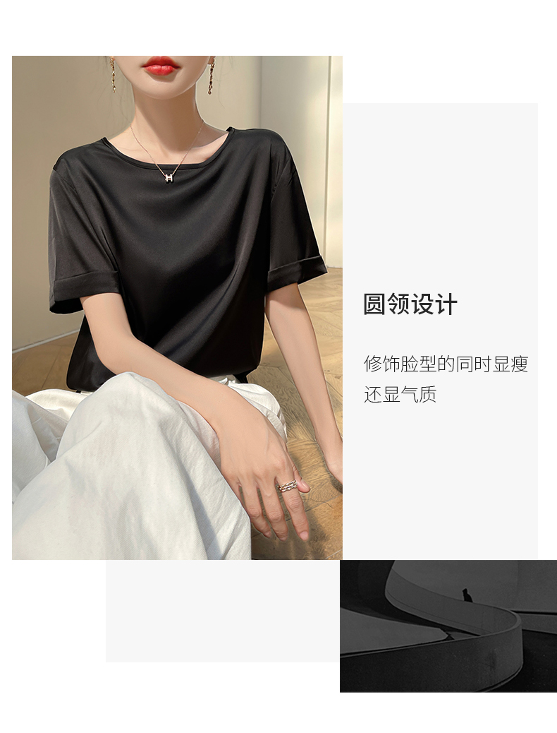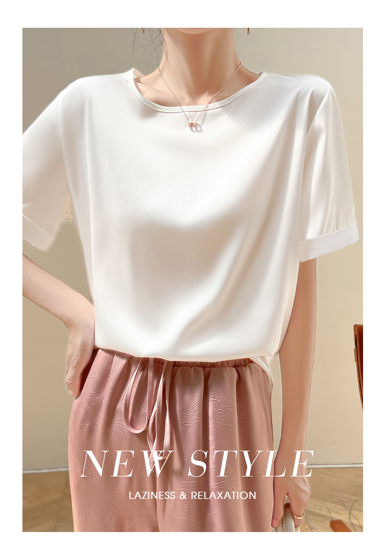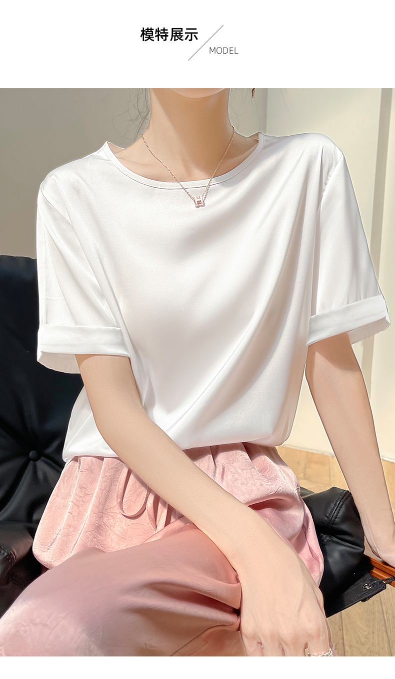 缤纷夏日仿真丝卷边圆领T恤RWF139