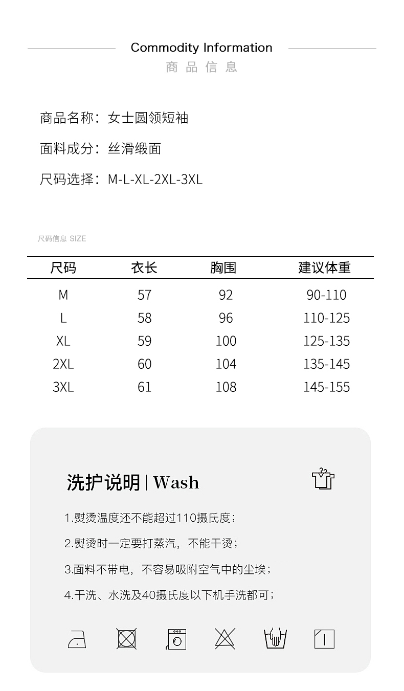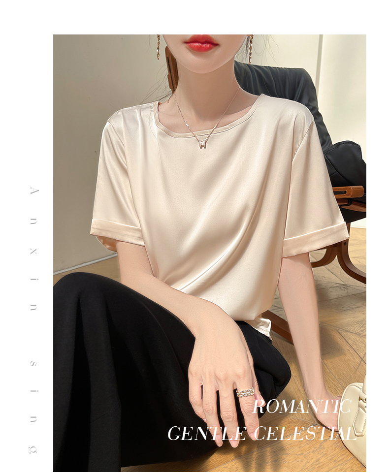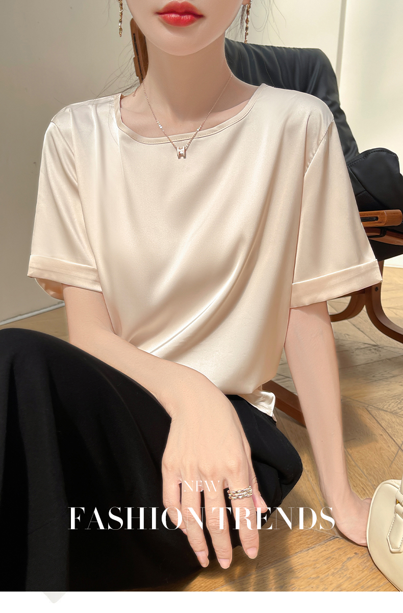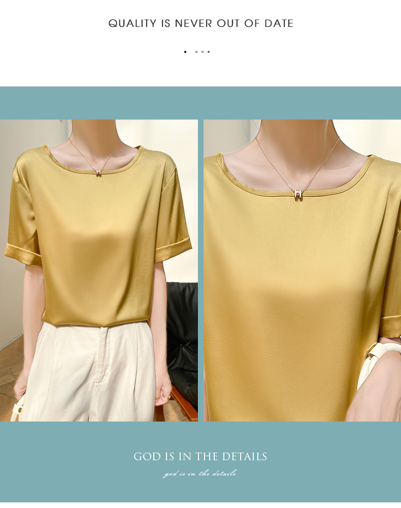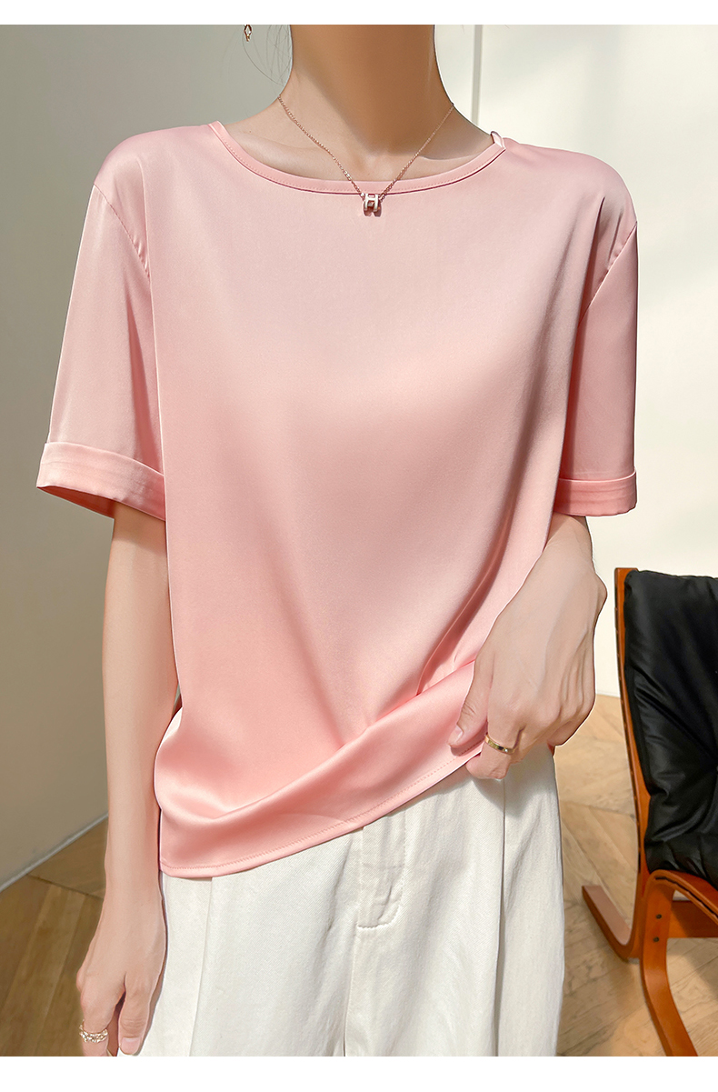 缤纷夏日仿真丝卷边圆领T恤RWF139