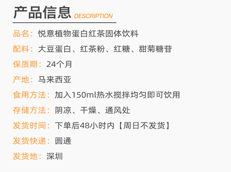 【24年5月生产】悦意 植物奶茶 植物蛋白红茶 210g*2盒 (7袋/盒)