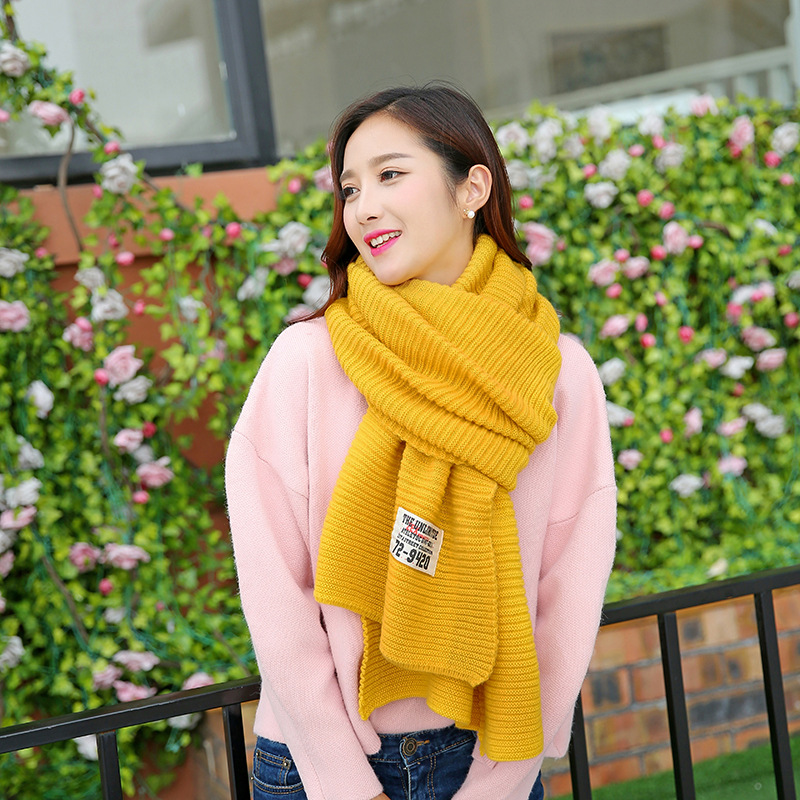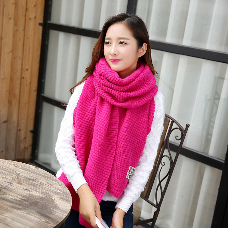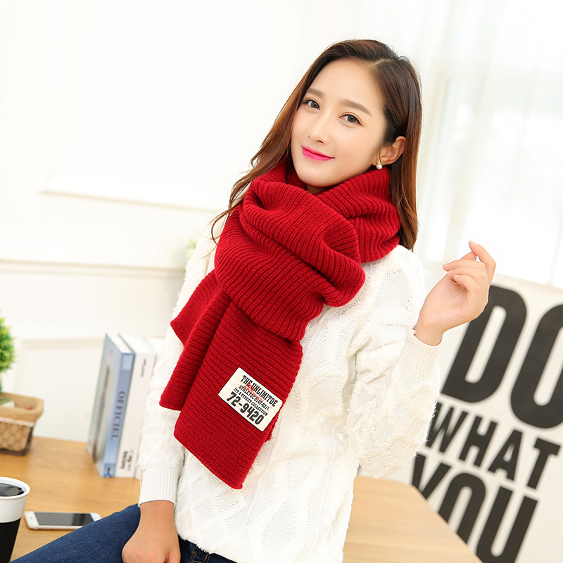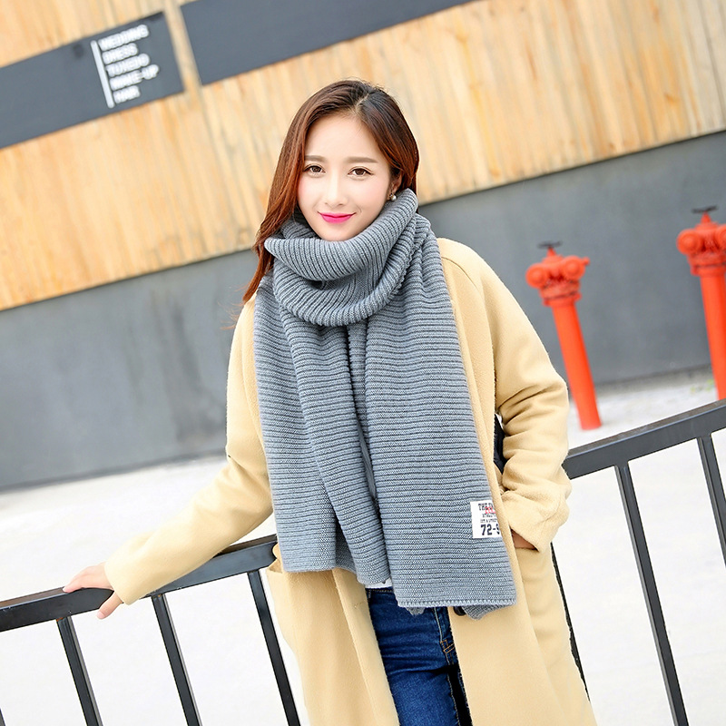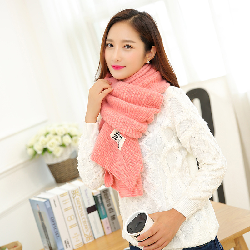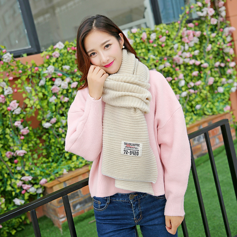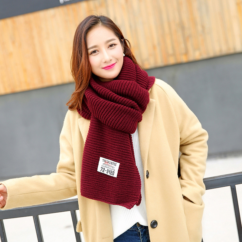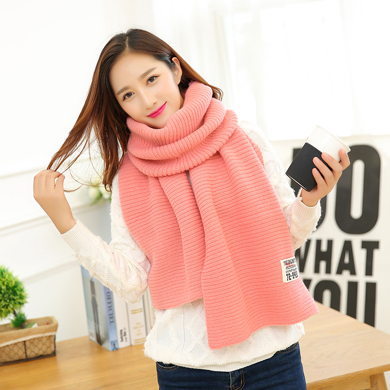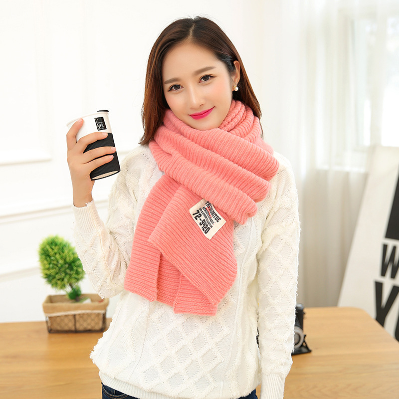【围巾女】韩版纯色毛线围巾围脖冬季新款文艺复古英伦学院风学生情侣款贴标