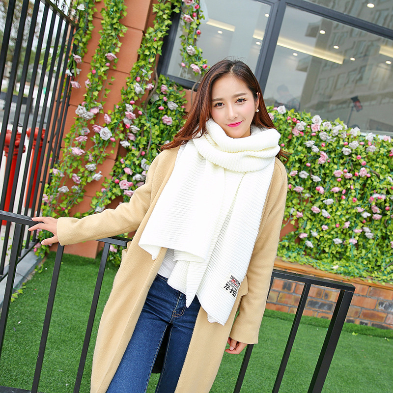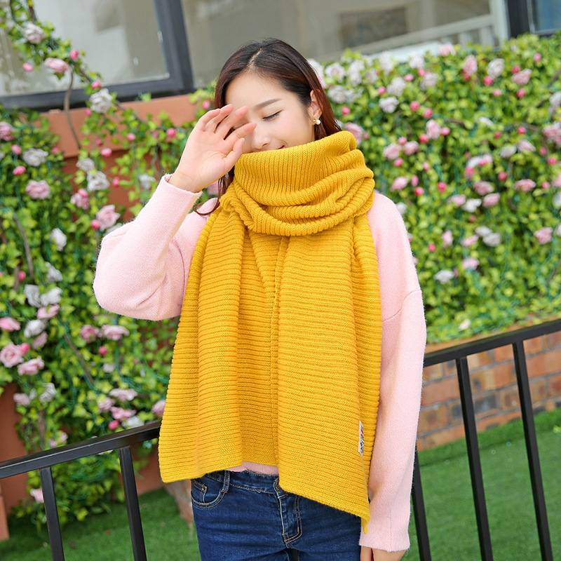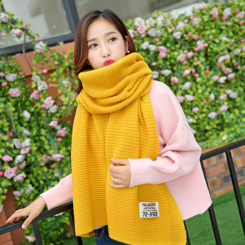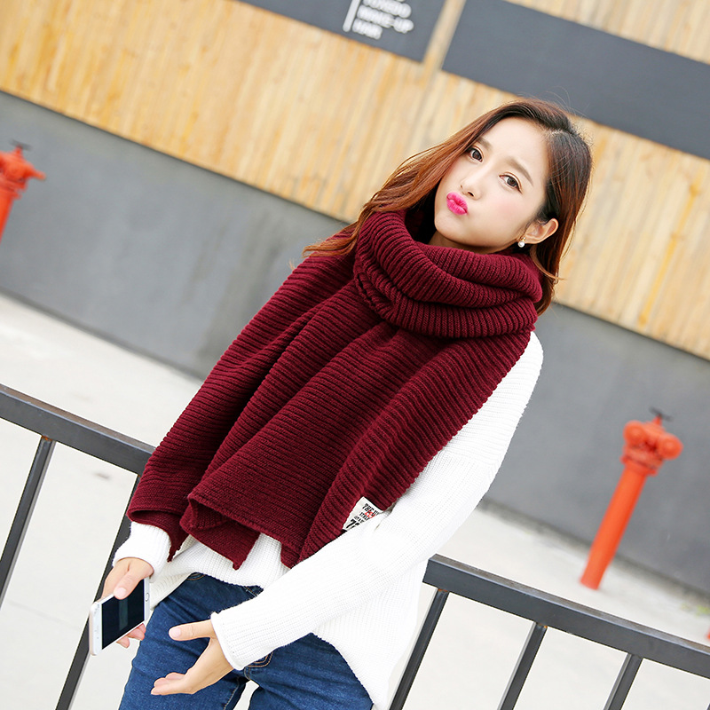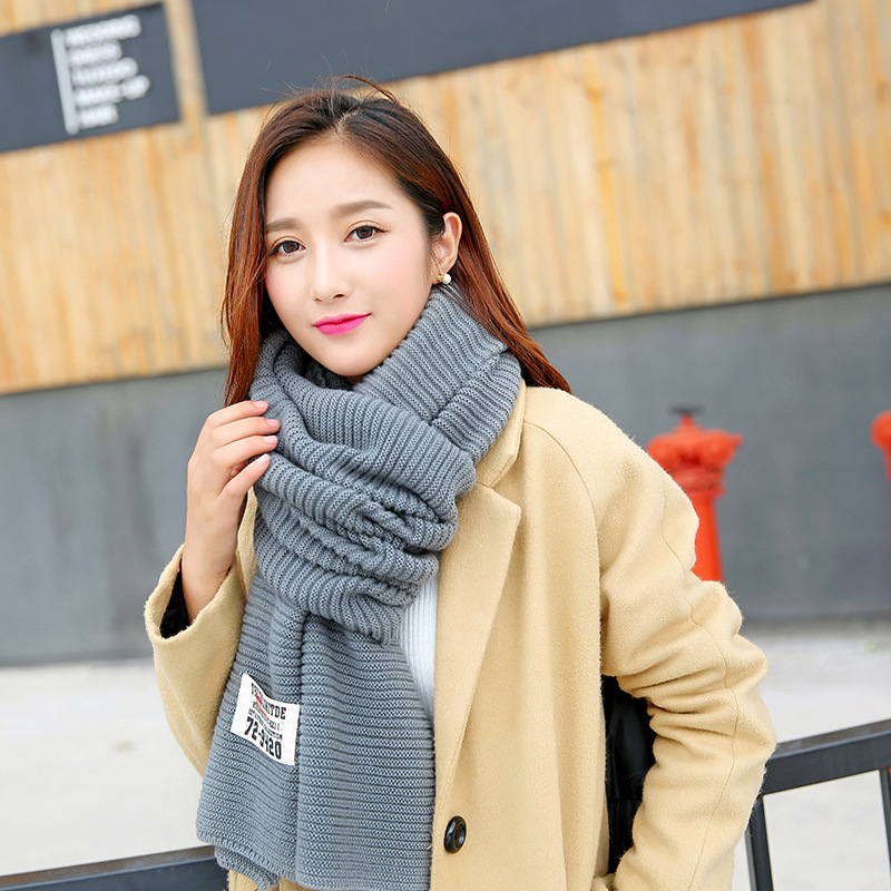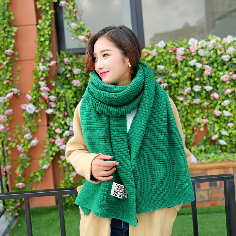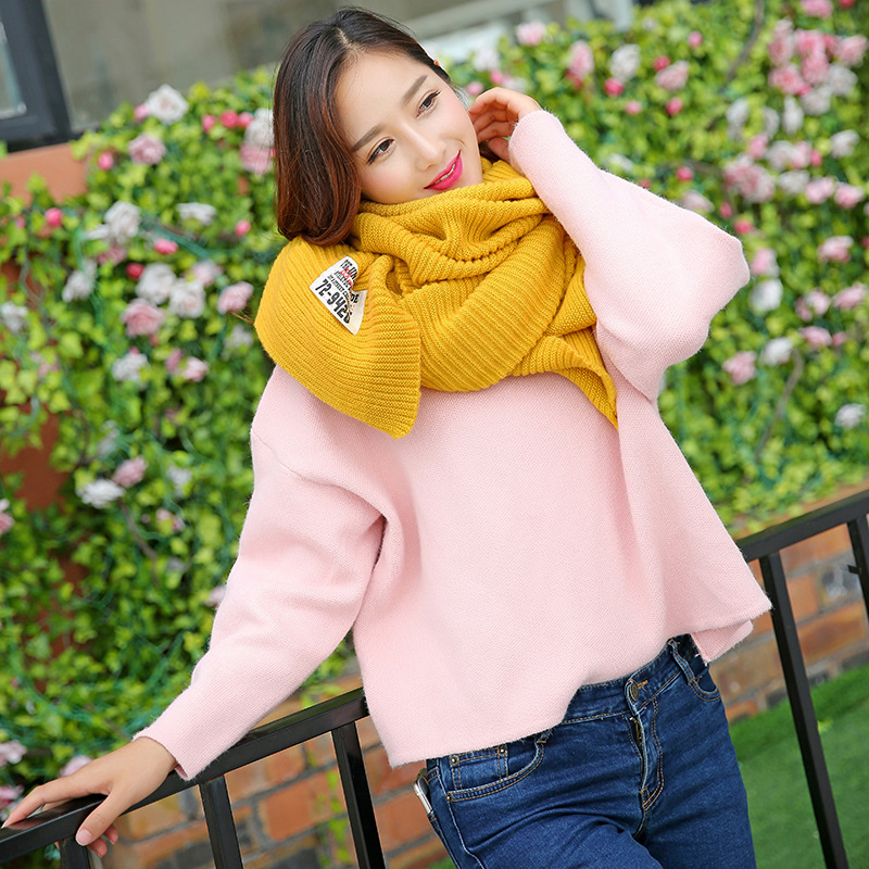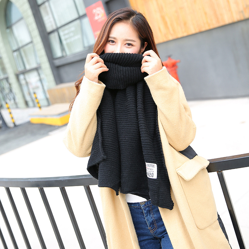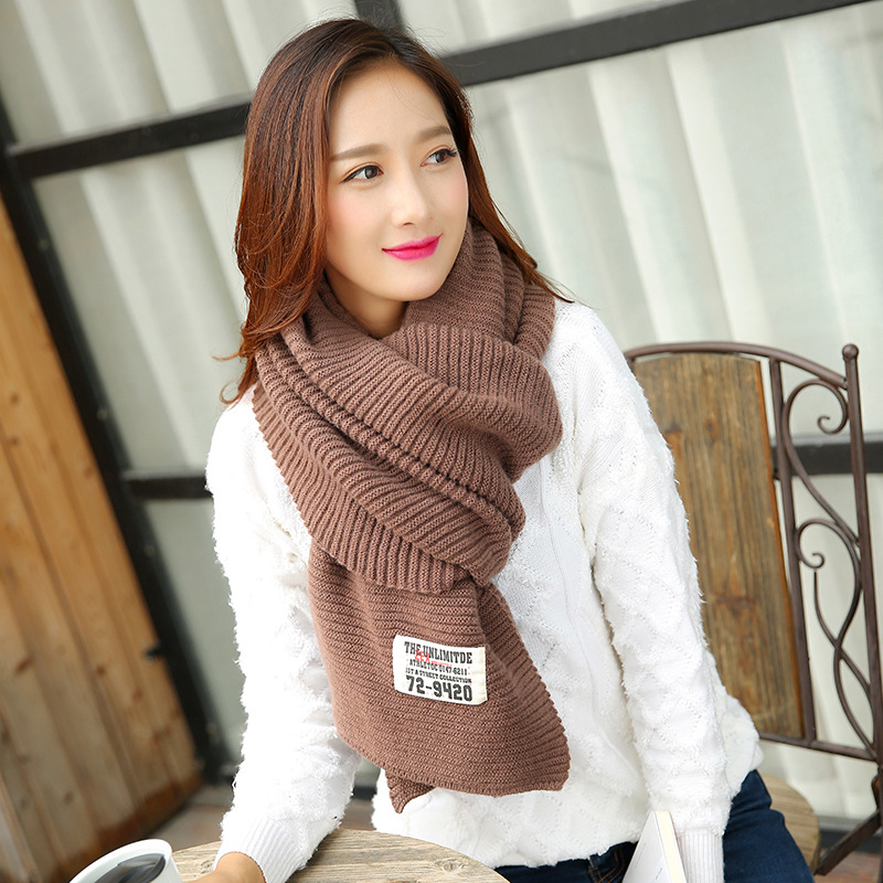 【围巾女】韩版纯色毛线围巾围脖冬季新款文艺复古英伦学院风学生情侣款贴标