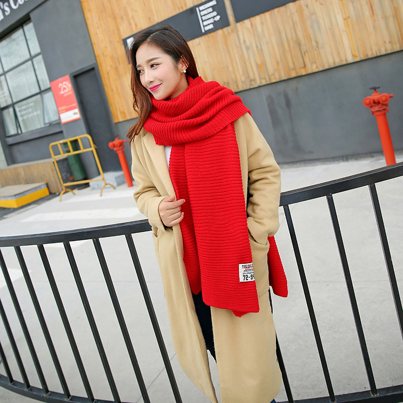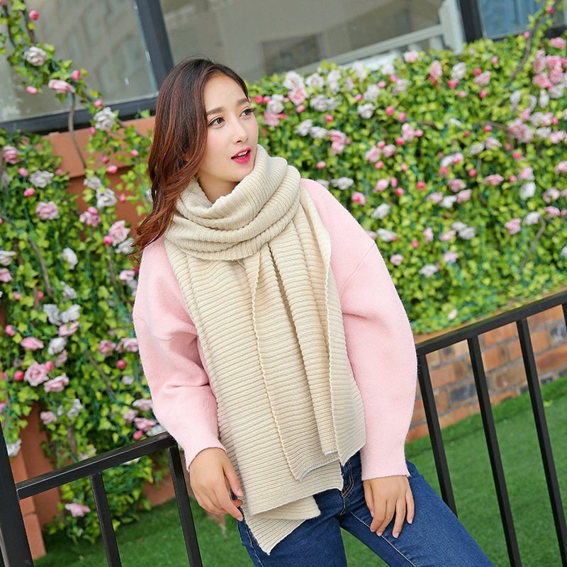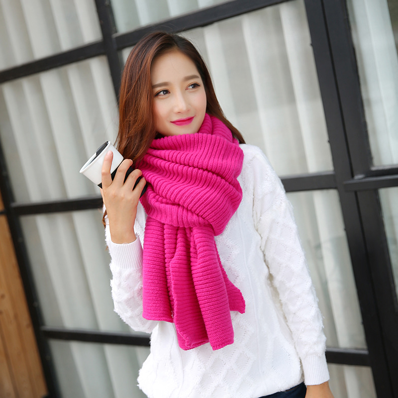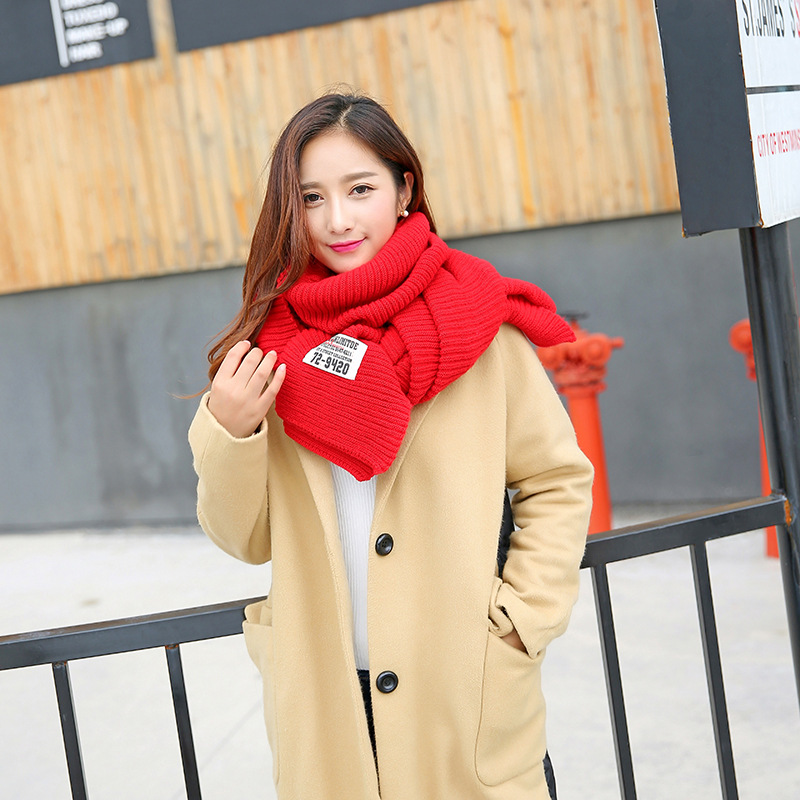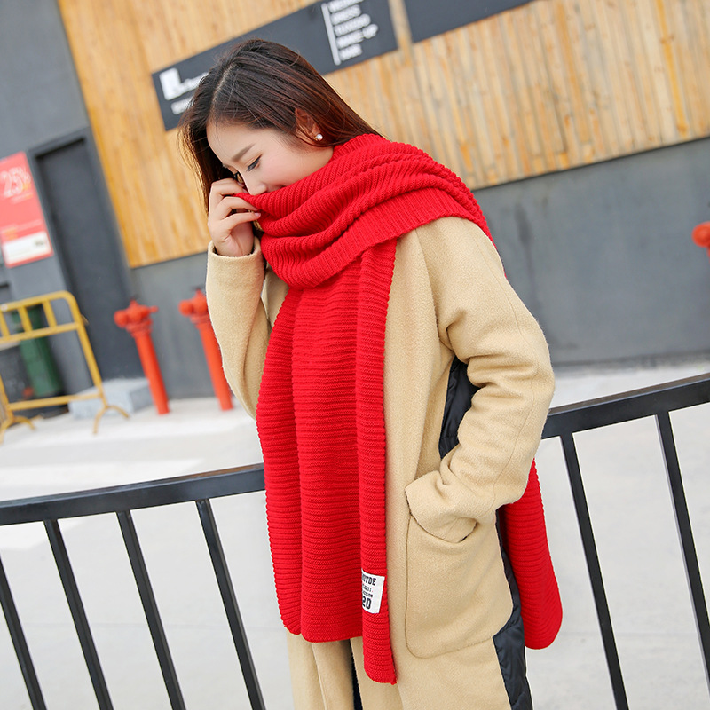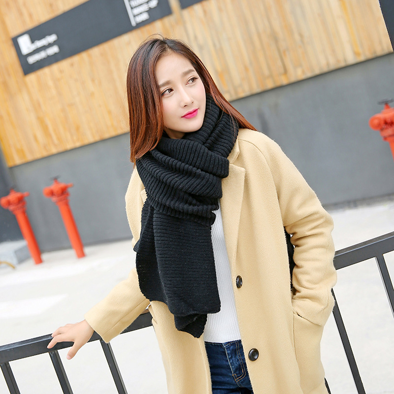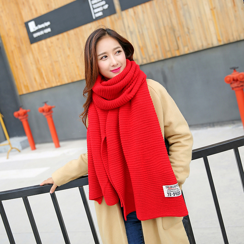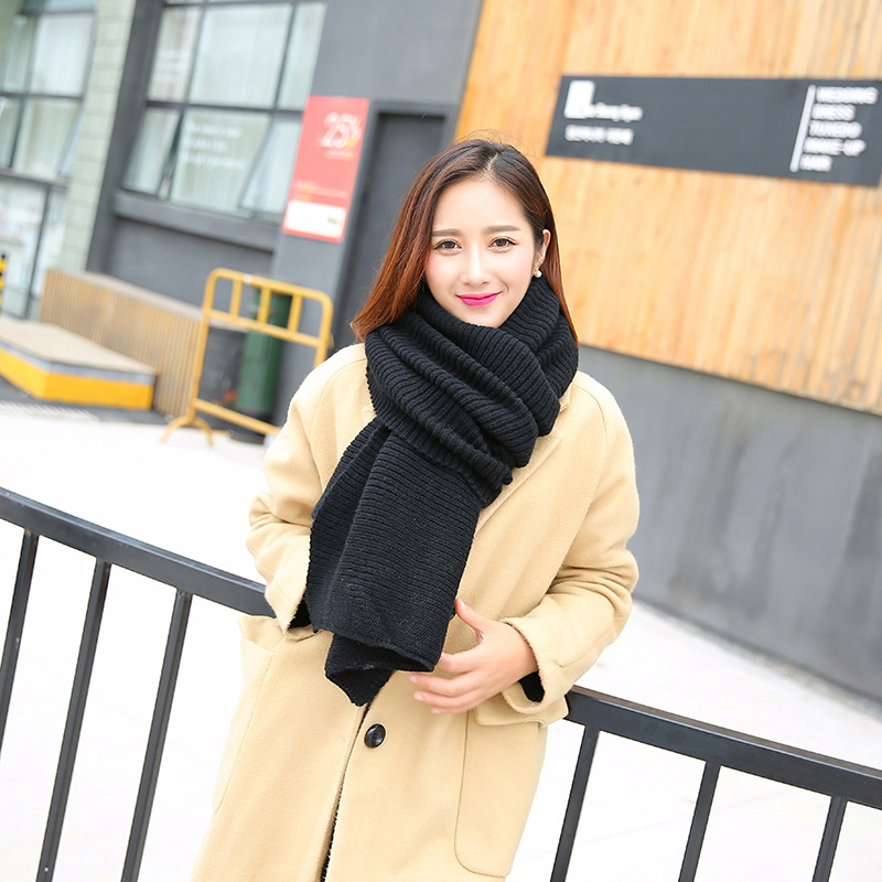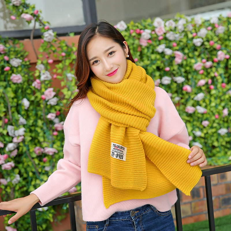 【围巾女】韩版纯色毛线围巾围脖冬季新款文艺复古英伦学院风学生情侣款贴标