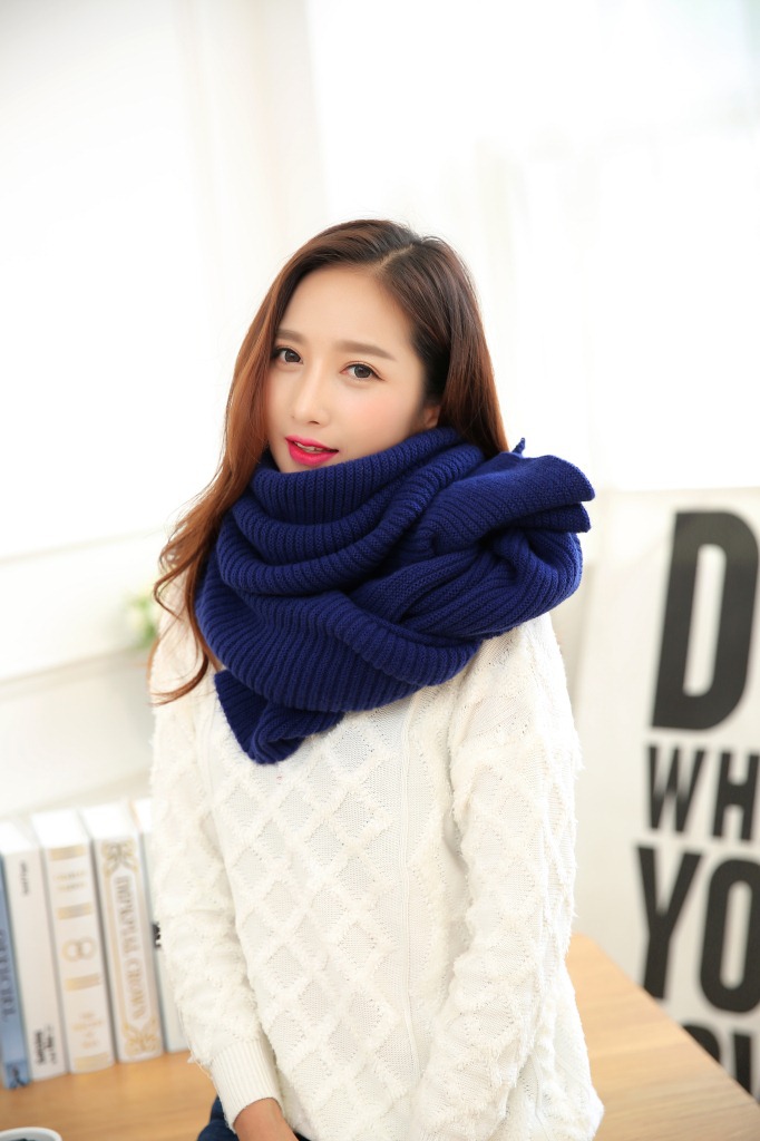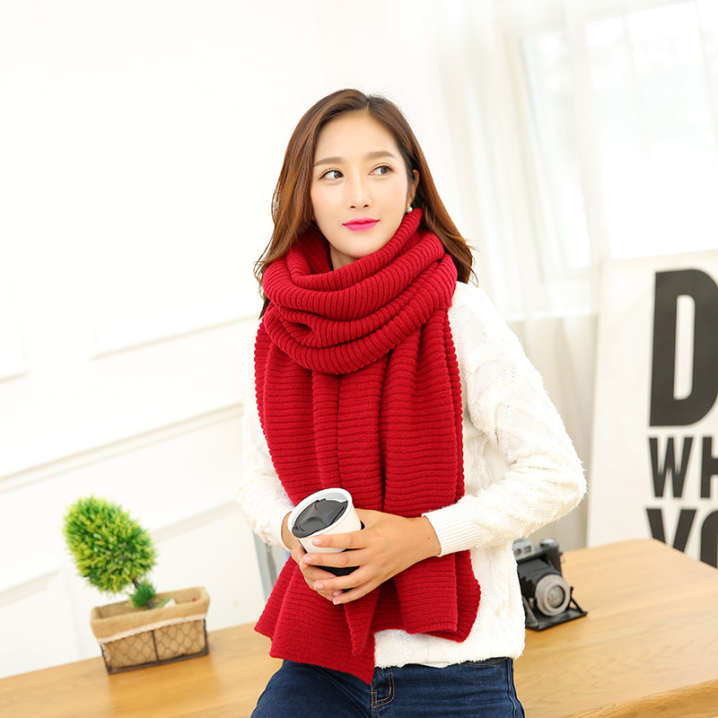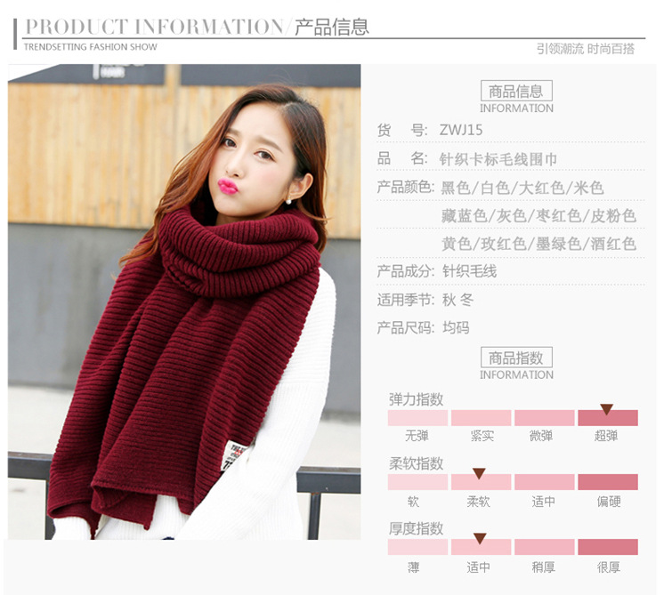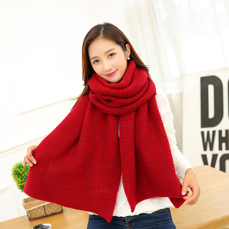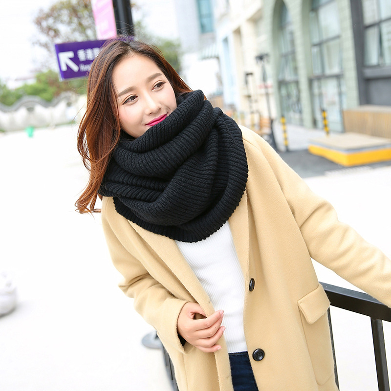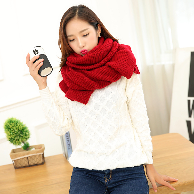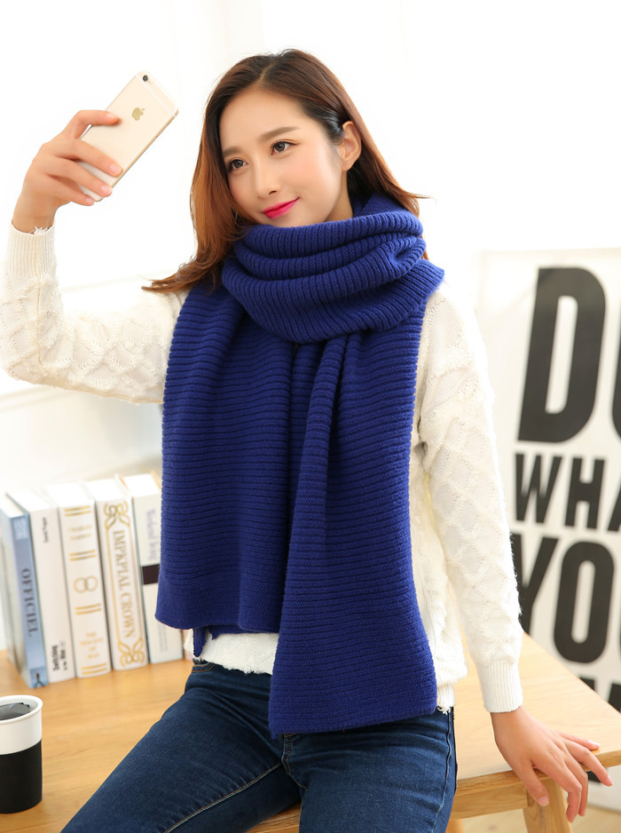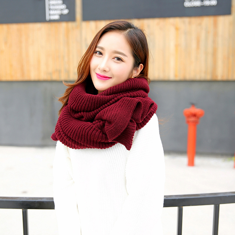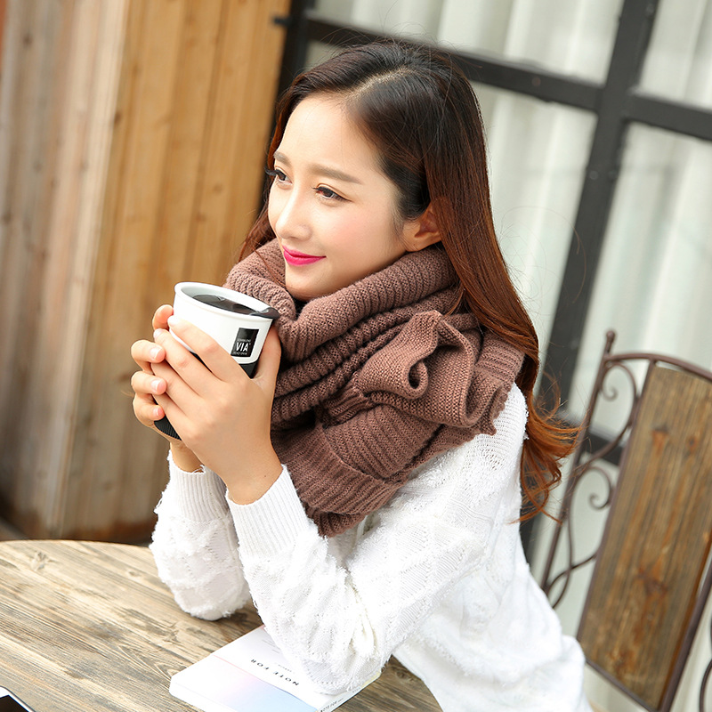 【围巾女】韩版纯色毛线围巾围脖冬季新款文艺复古英伦学院风学生情侣款贴标