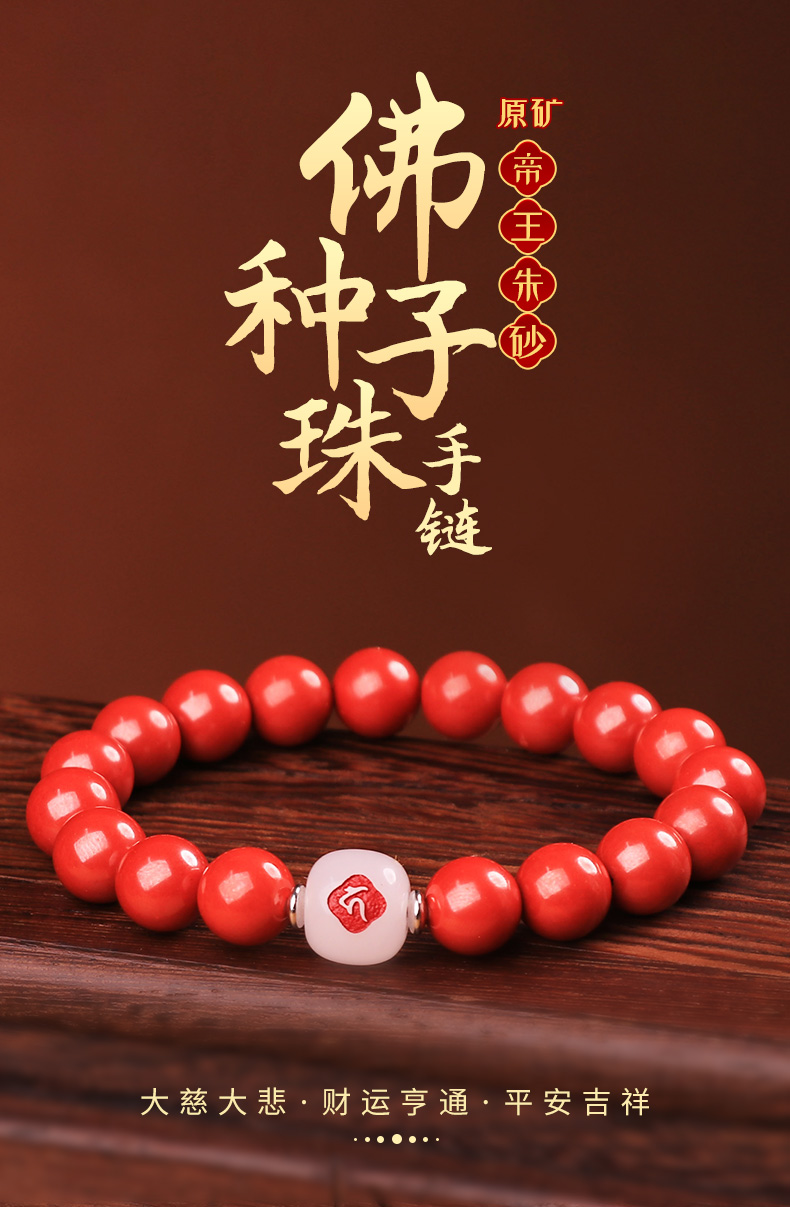 【原矿帝王朱砂佛种子字手链】
