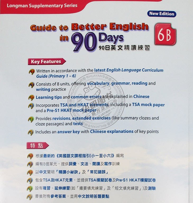 书名:6B guide to better english in 90 days朗文小学教辅90天英文词汇语法阅读及写作强化训练习6年级下