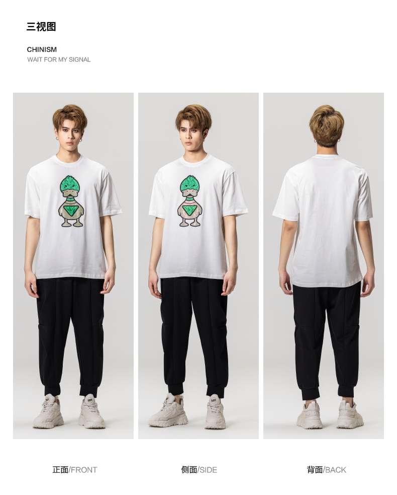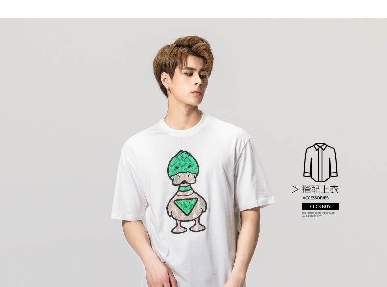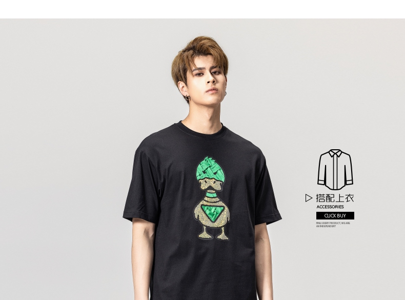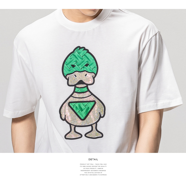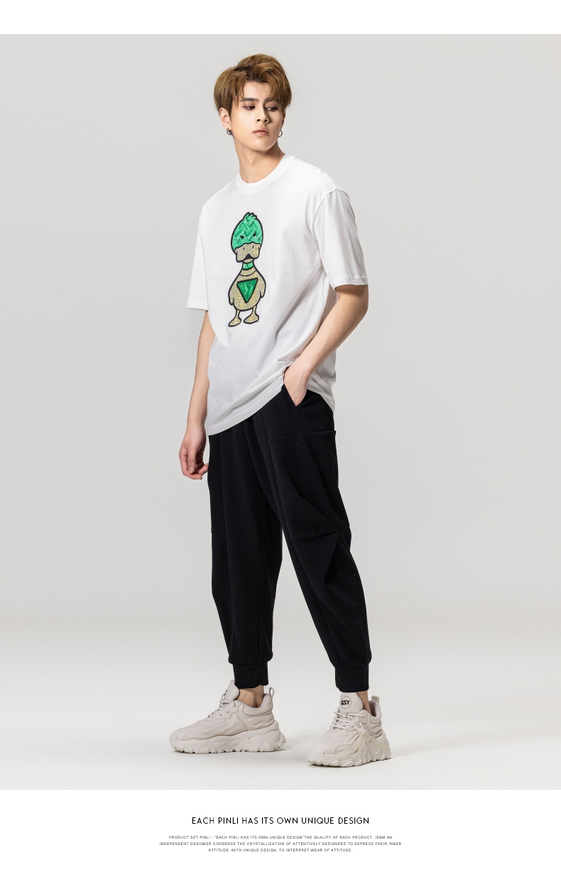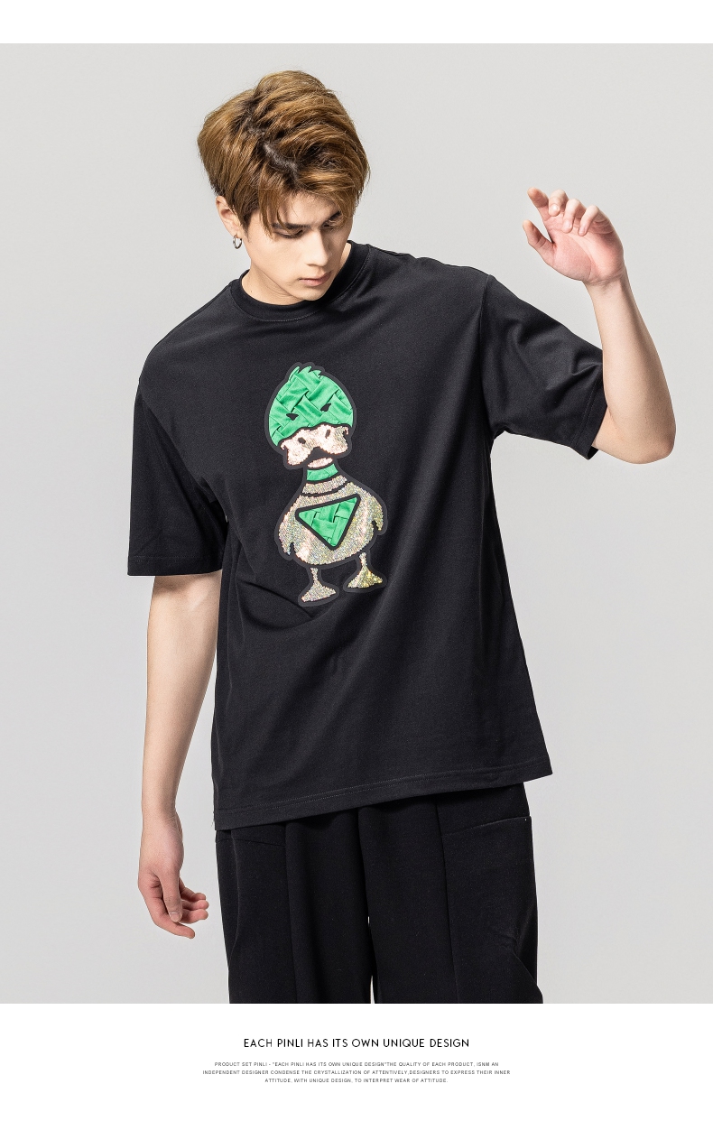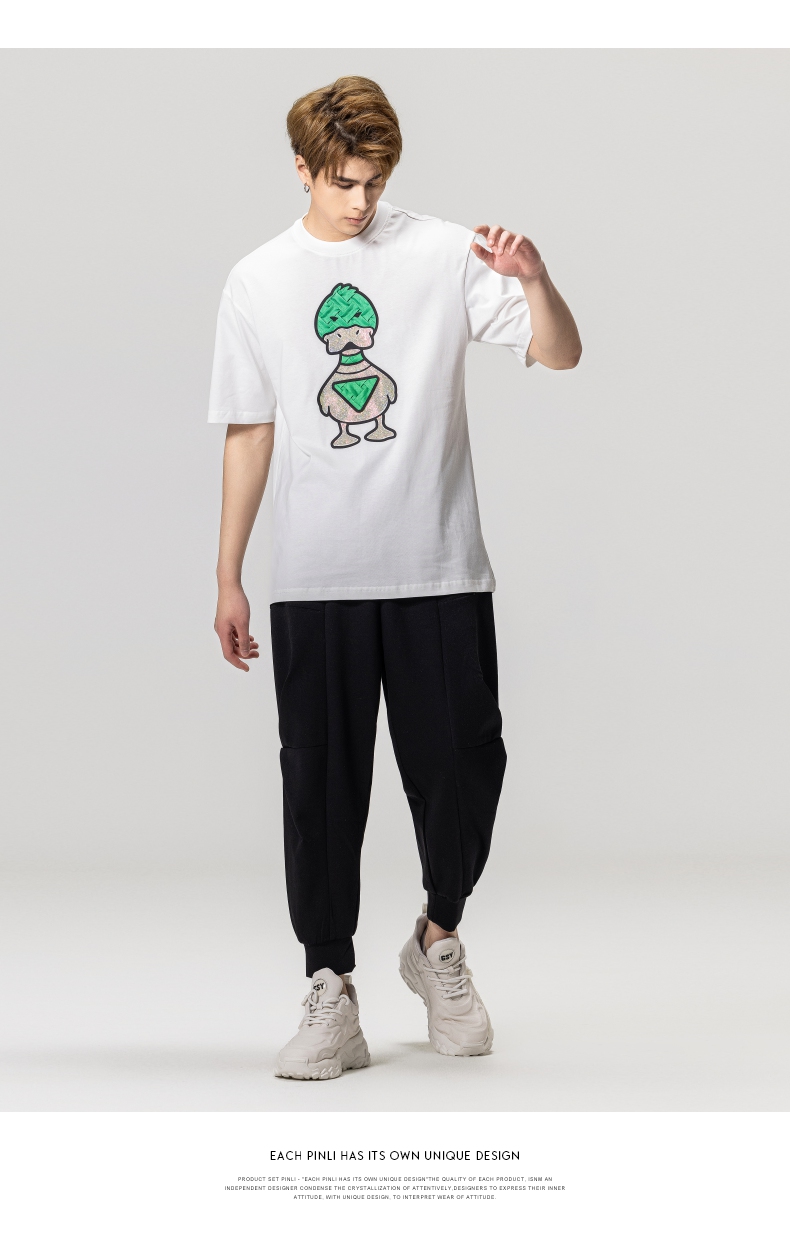 PINLI品立2023夏季新款男士圆领贴布烫钻短袖T恤上衣BG231111056
