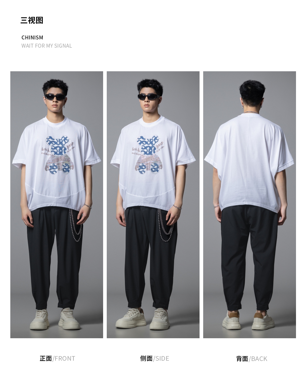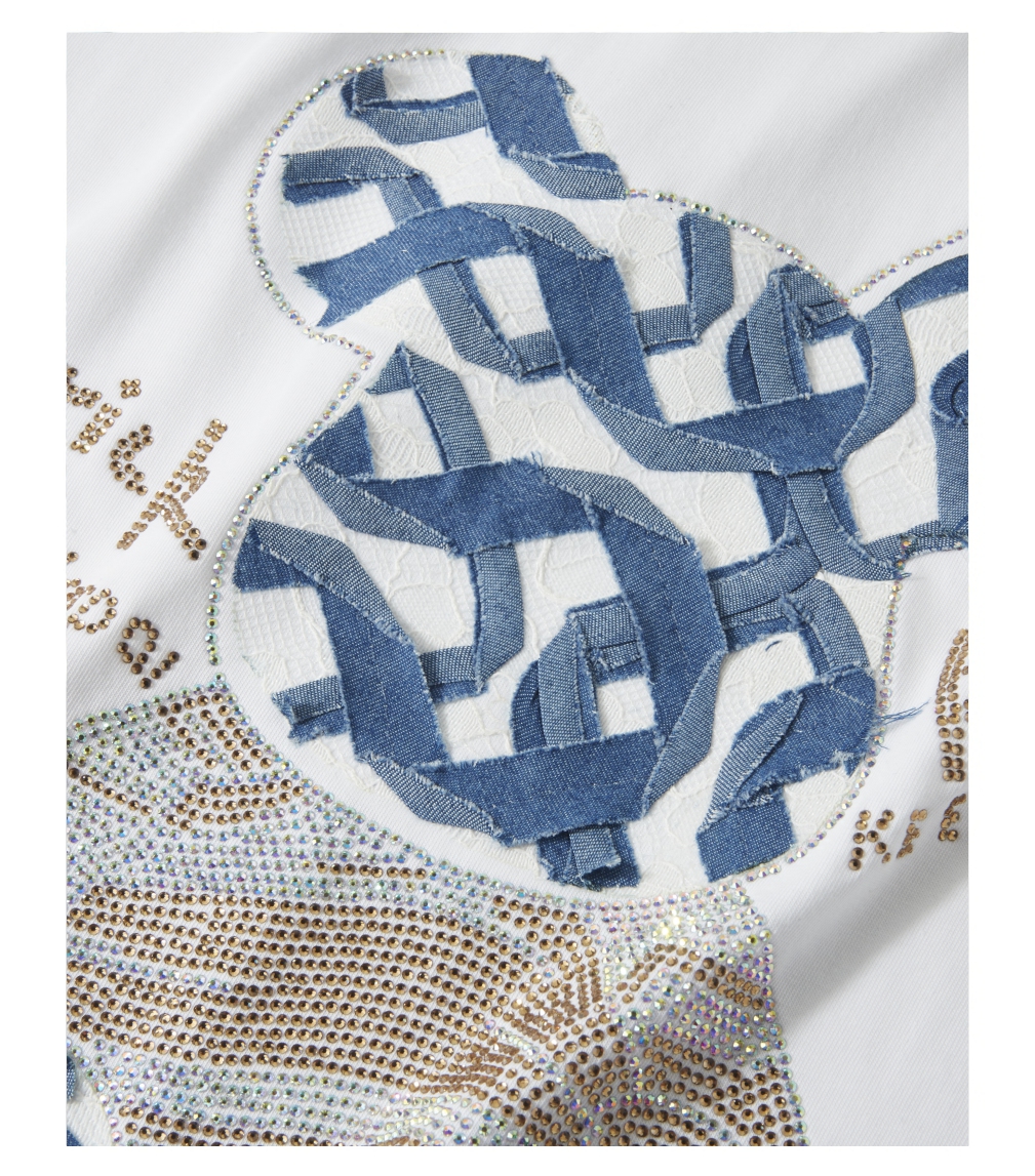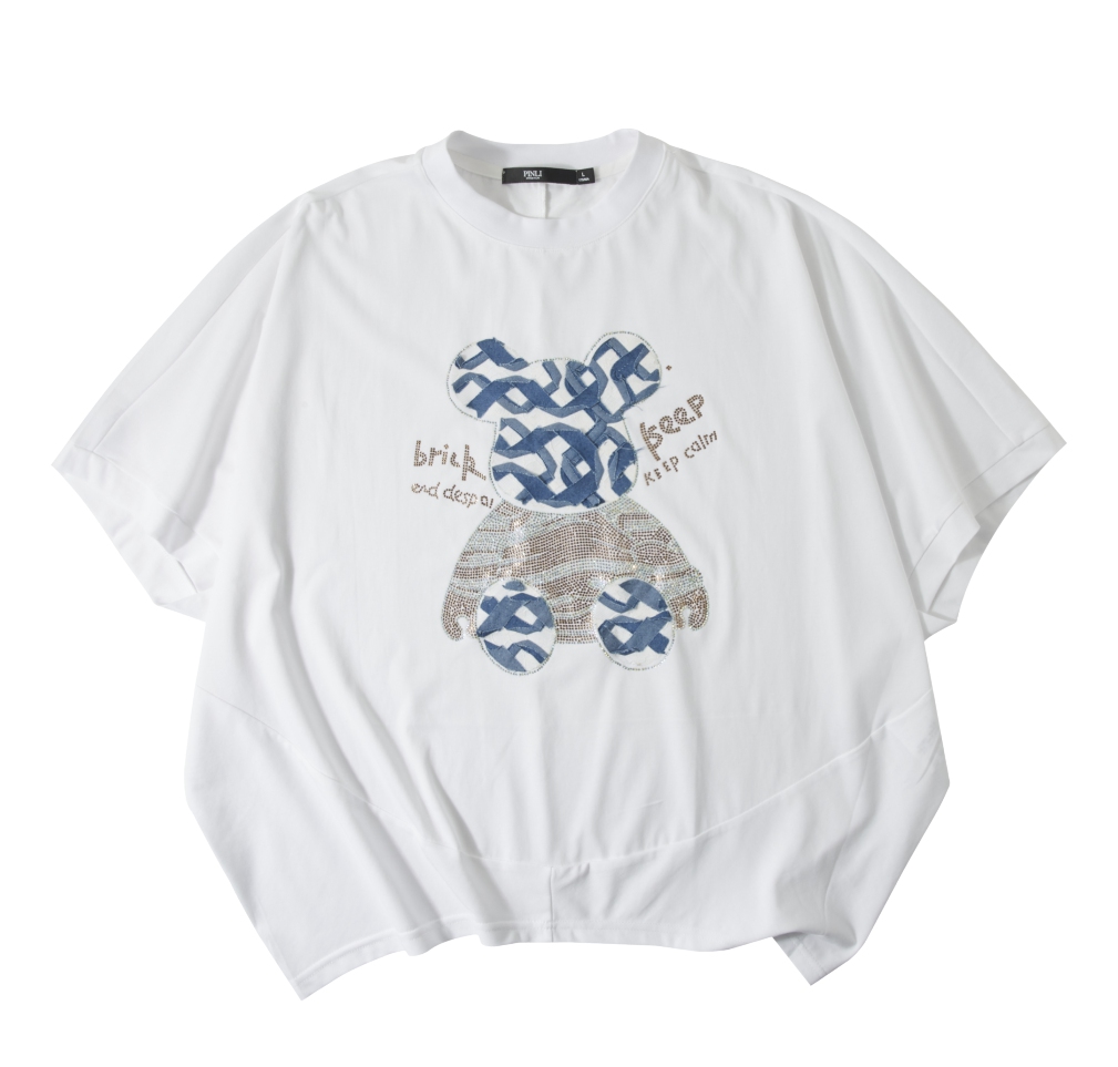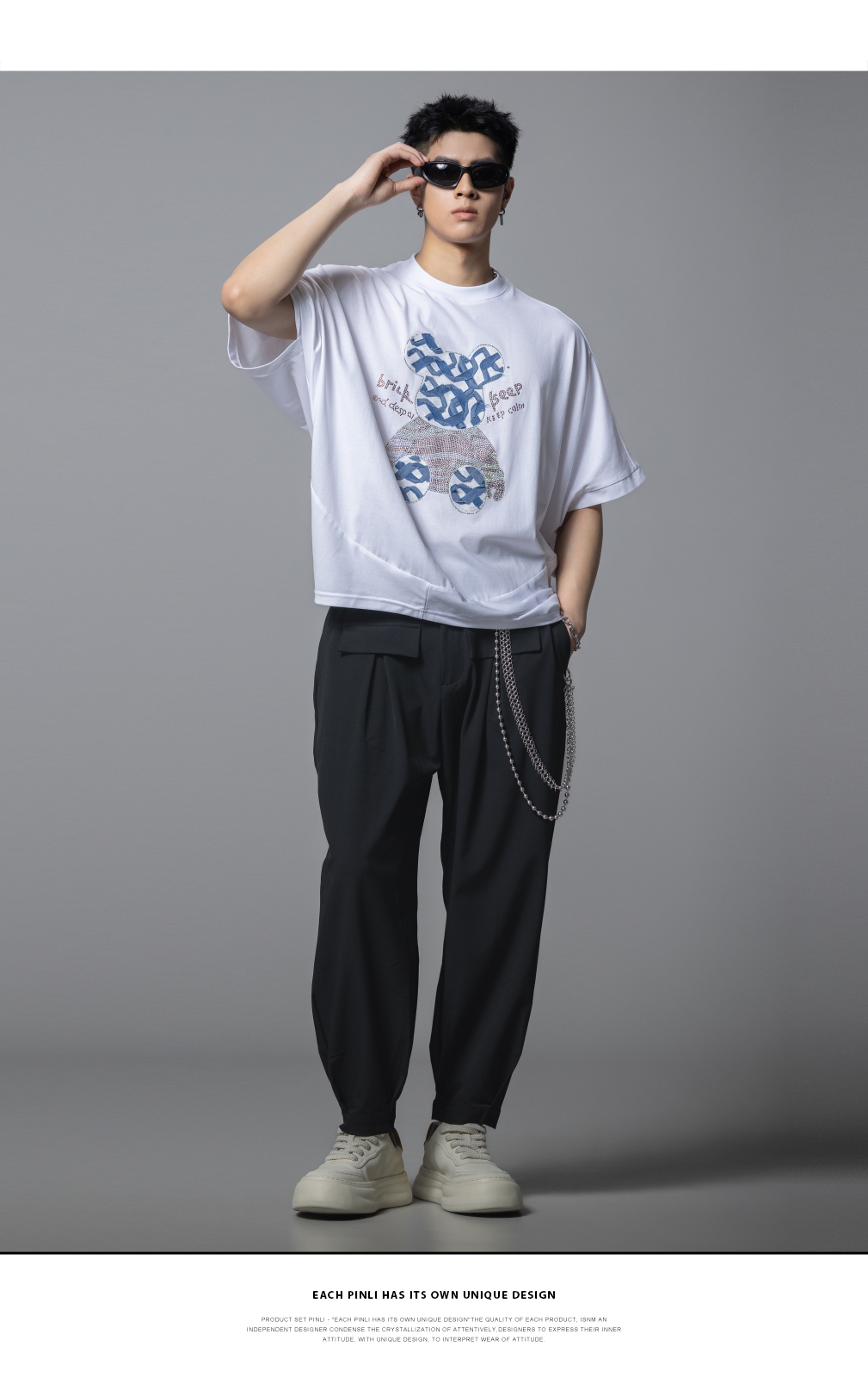 PINLI品立2025夏季新款小熊字母烫钻烫布圆领短袖T恤上衣体恤男士BG252111054