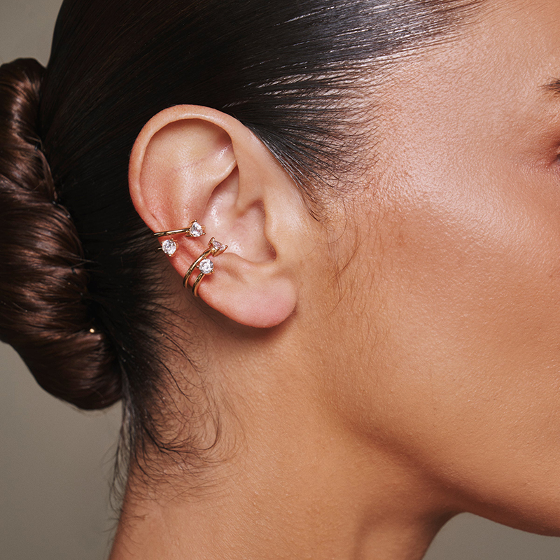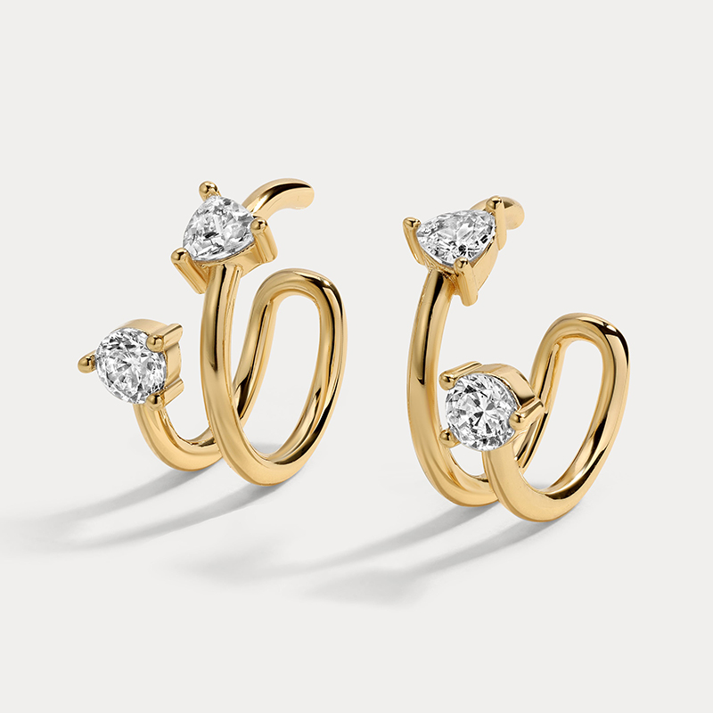 订购8周到|Lili Claspe-Eraz-金色 双圈 锆石 耳夹[美国设计师]