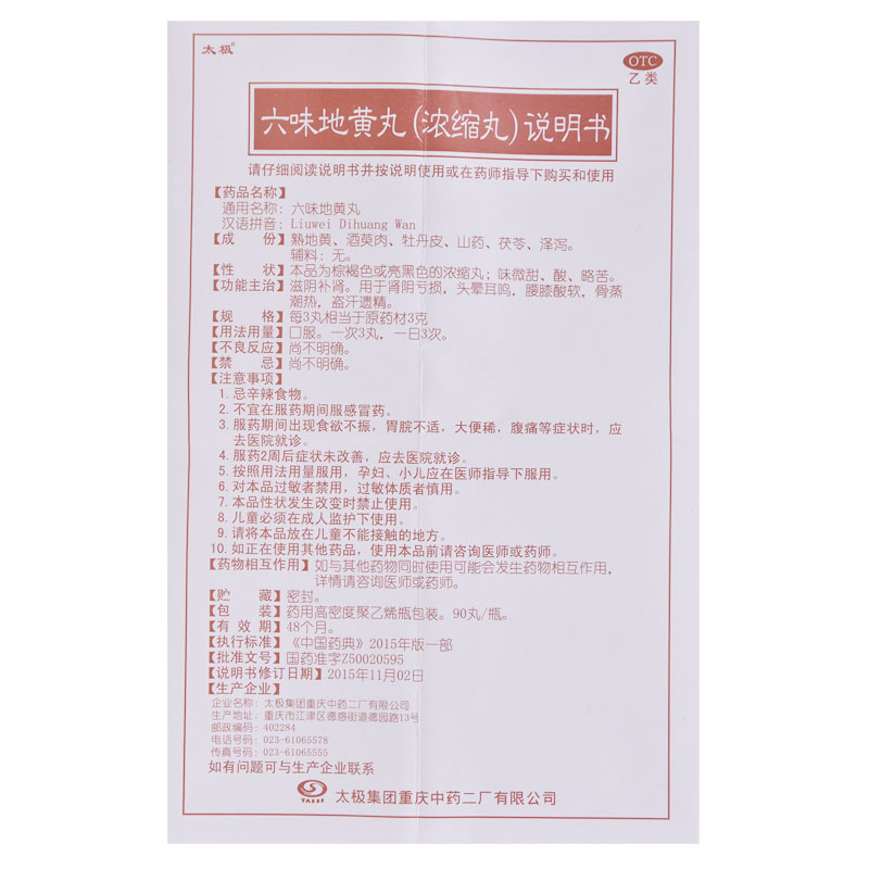 太极六味地黄丸90丸*3瓶/盒滋阴补肾 肾阴亏损 头晕耳鸣 腰膝酸痛