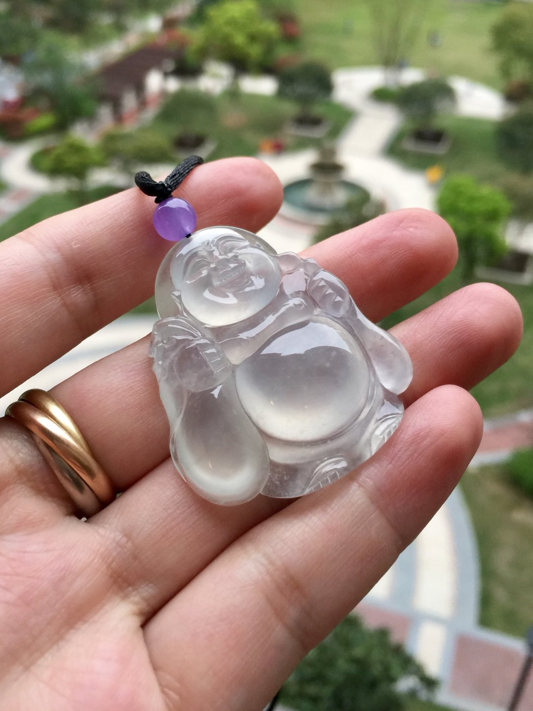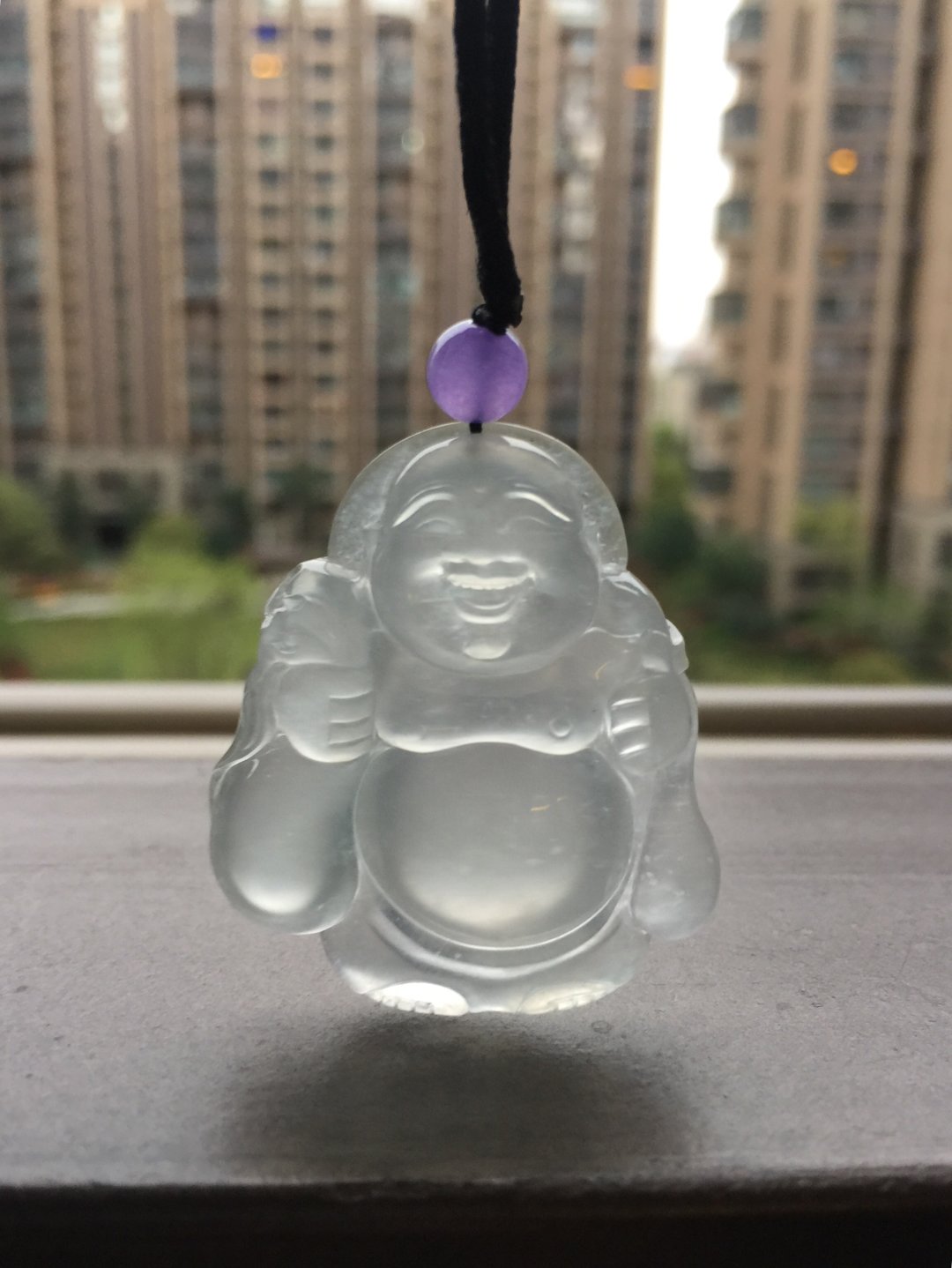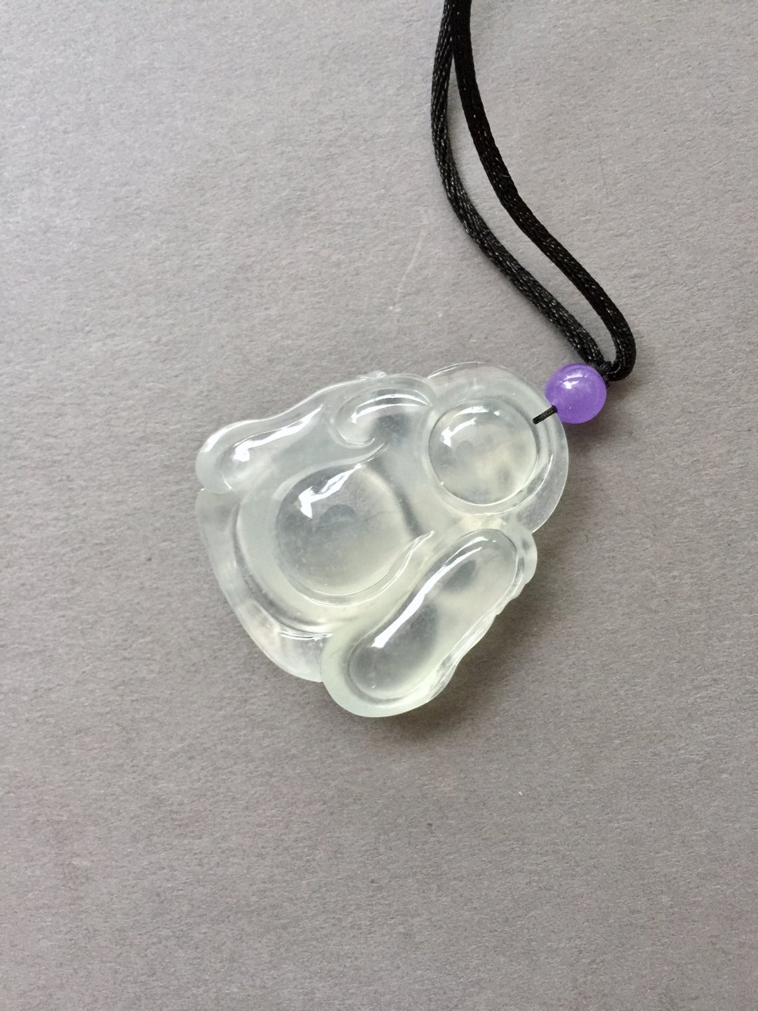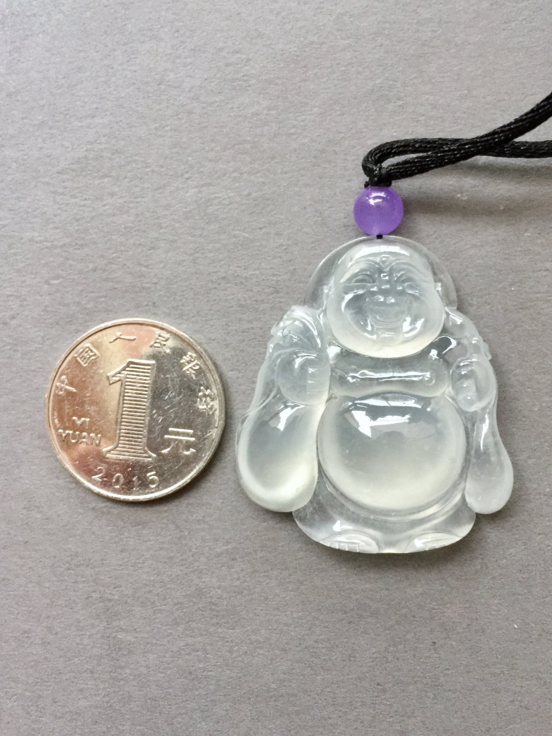 收藏级别,翡翠冰种弥勒佛,41.1×36.4×10.3mm。尺寸大气,厚庄,精工雕刻,大面积留白,完整展现翡翠种水之美,晶莹剔透,荧光四射,肚子就是一个光球。从种水到尺寸到雕刻样样好,这么大规格净度光度这么好的佛,现在行情已经八万以上了,我们的价格简直惊喜,值得拥有