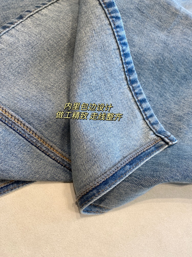 重磅牛仔棉92.5%新疆棉,棉的含量很高,做出来有质感、有阔感带着牛仔该有的垂坠和笔挺穿出来的造型飒美不软塌。