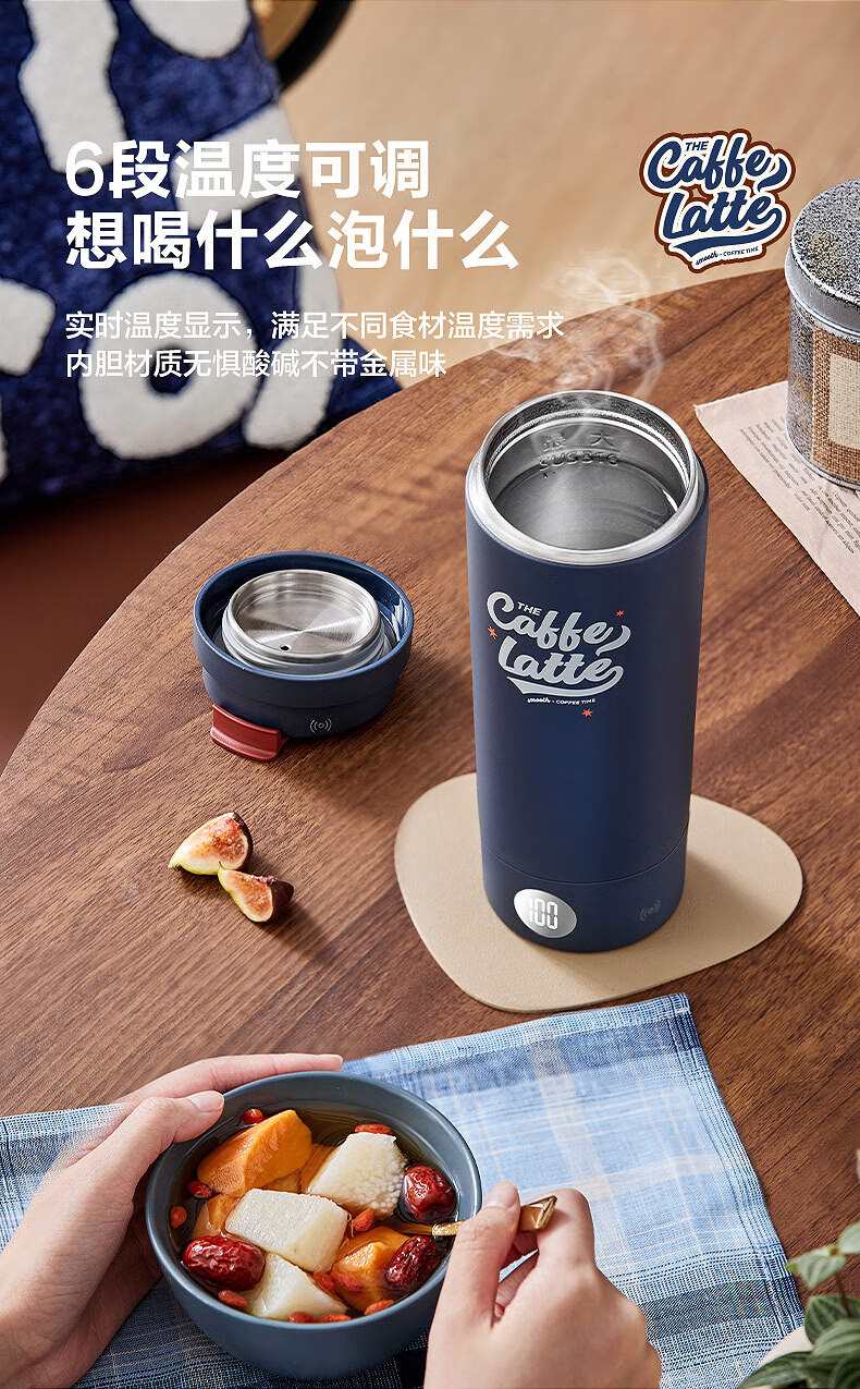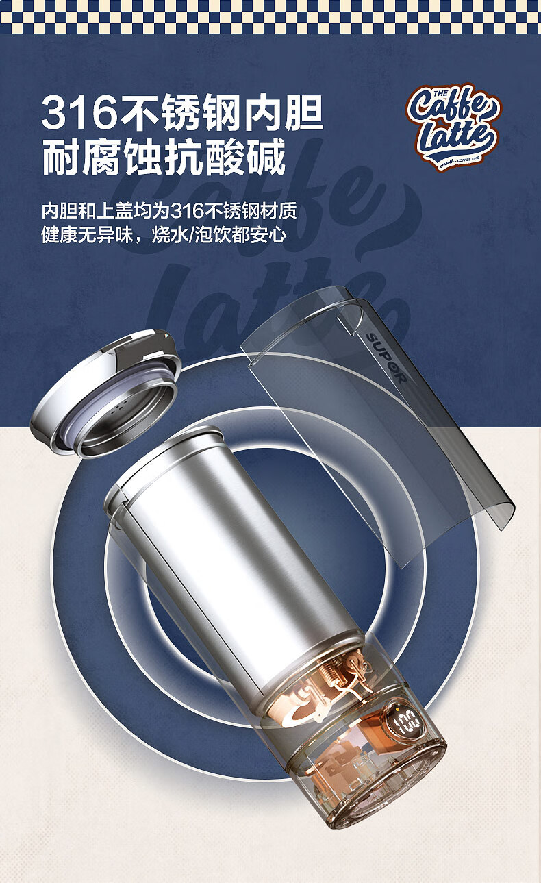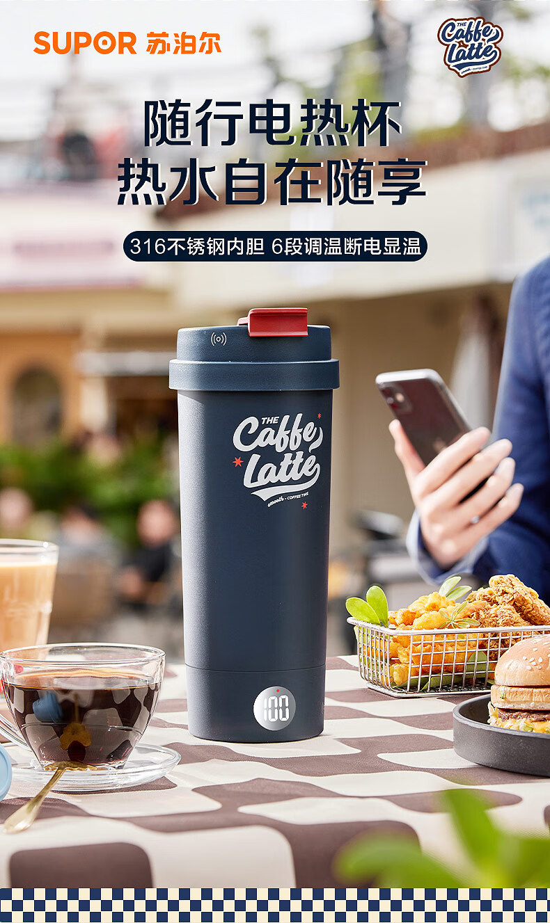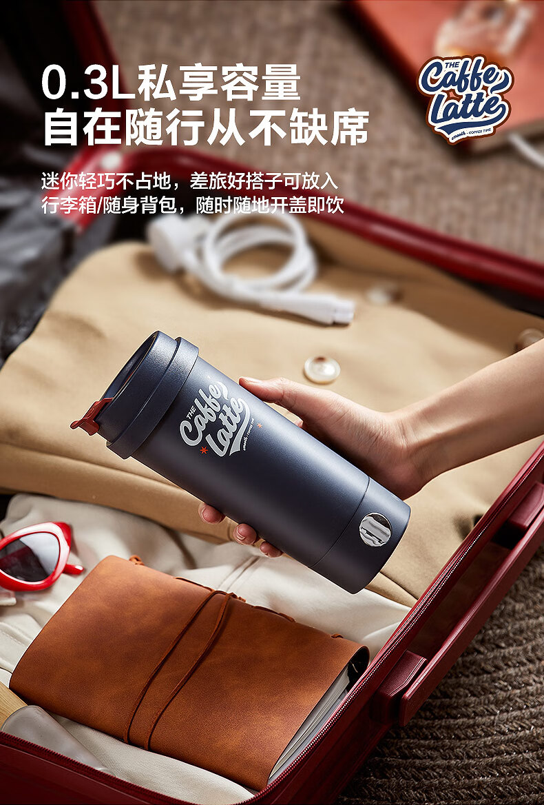 苏泊尔(SUPOR)便携式烧水杯家用旅行电热杯 316不锈钢 旅行冲奶办公室养生 SW-03T01E 摩登红