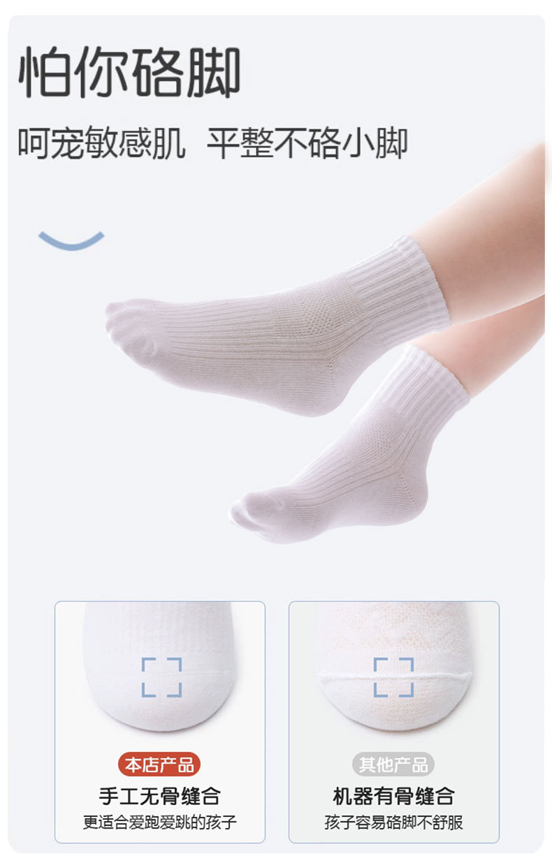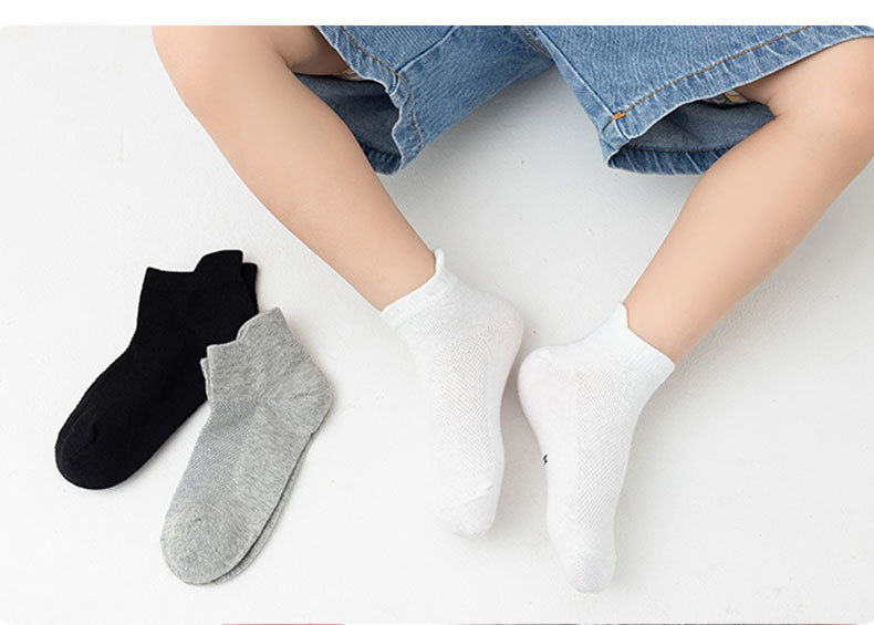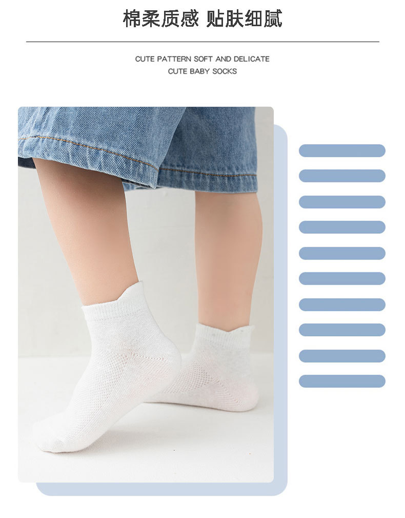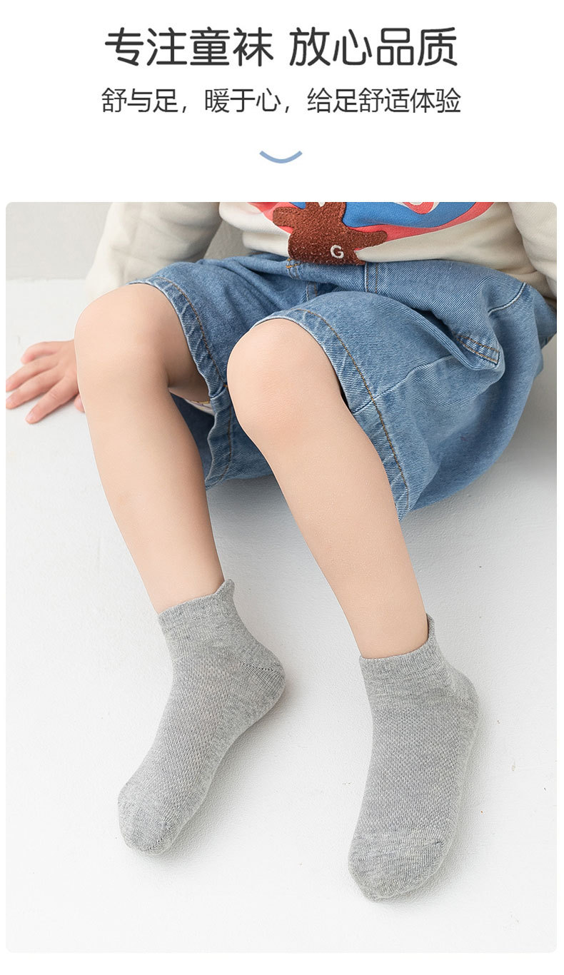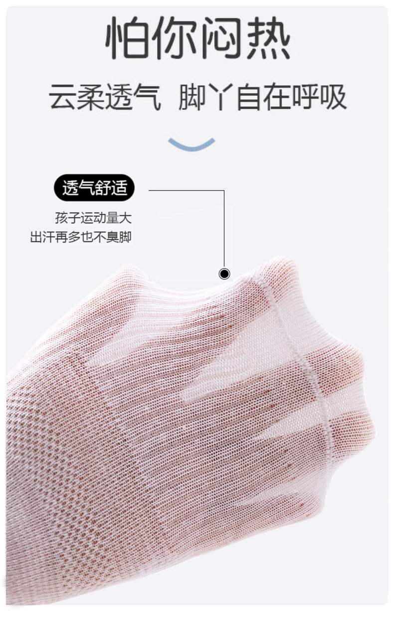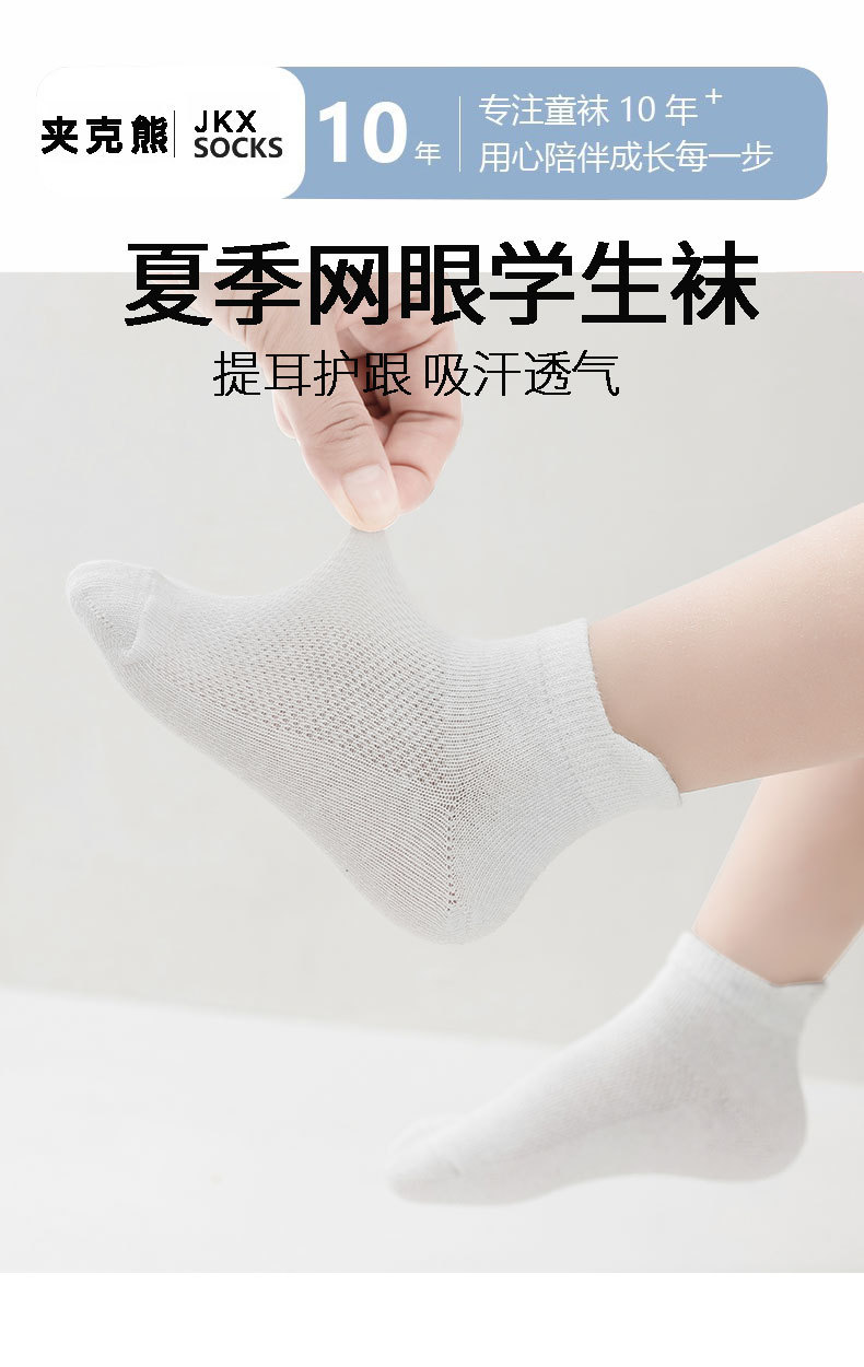 【5双装!学校指定款网眼小白袜】儿童袜子夏季薄款网眼袜纯色棉袜男女童宝宝袜子夏天学生运动潮袜