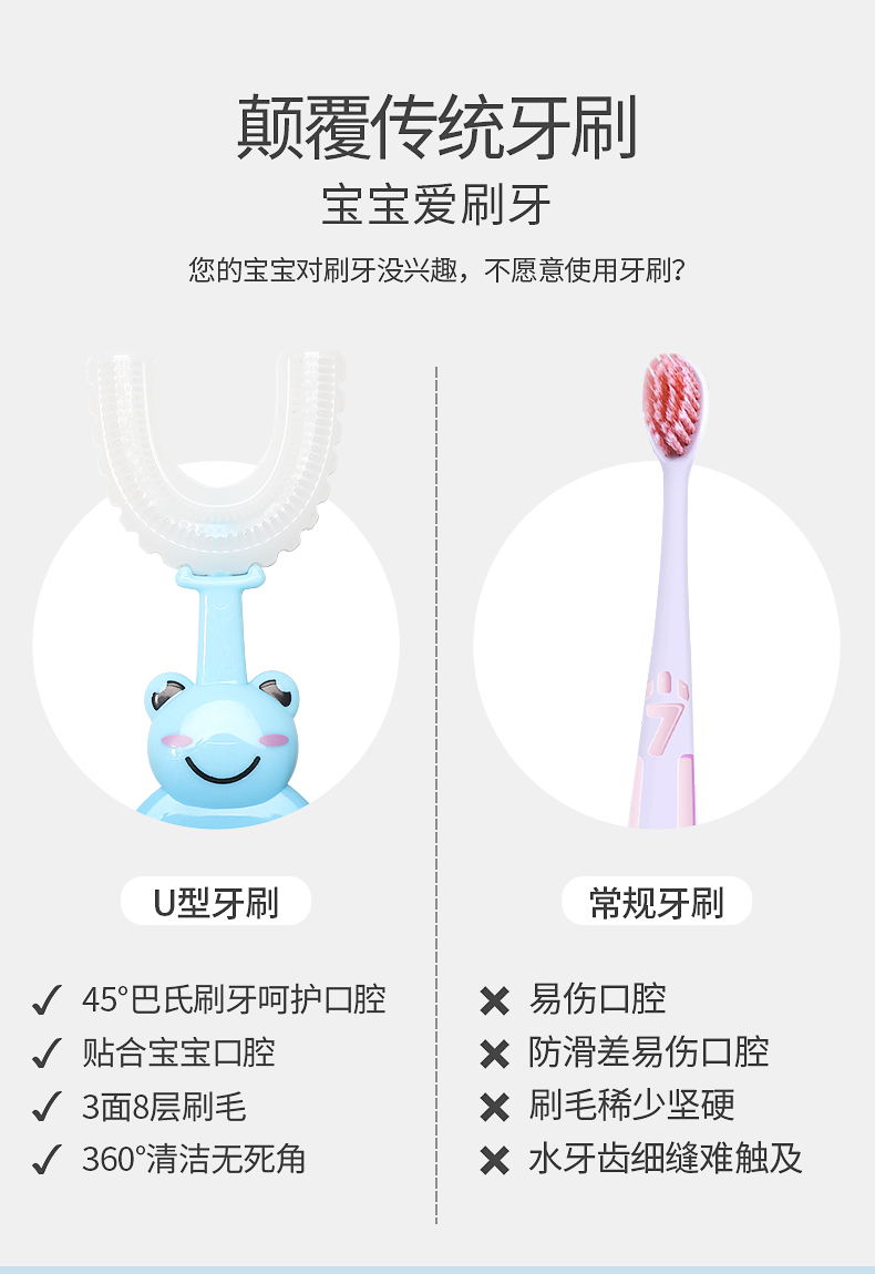 【护牙神器】开优米儿童牙刷u形宝宝口腔清洁2-12岁硅胶口含式360度刷牙护牙神器
