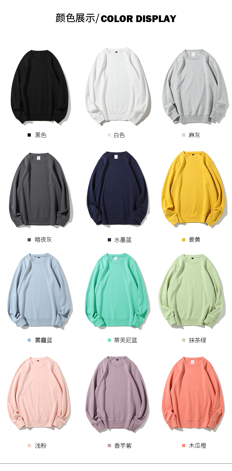 纯色健康布圆领卫衣