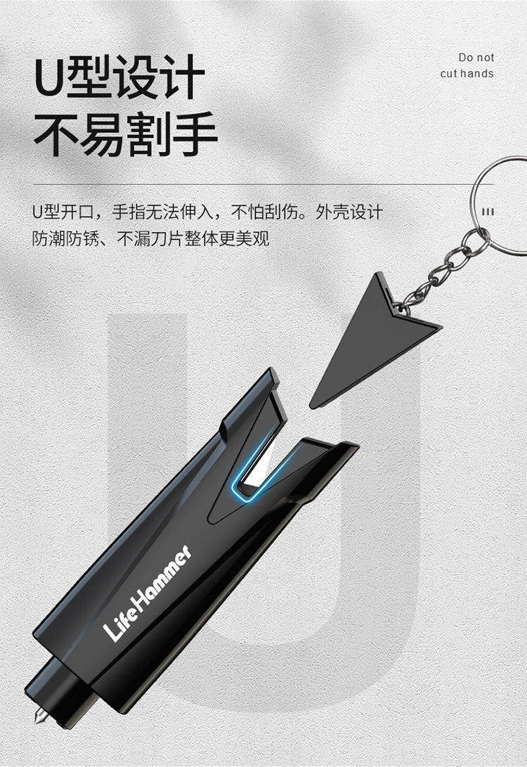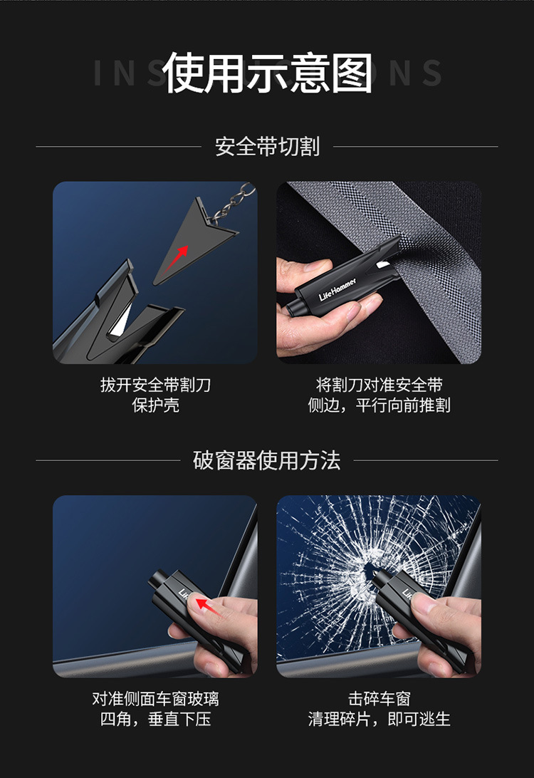 【有备无患!汽车破窗器安全锤神器】危险时刻您的自救工具,下压弹出撞针轻松击碎玻璃,割断安全带逃生无阻碍,救生车内碎玻璃逃生器车用多功能应急器QQ
