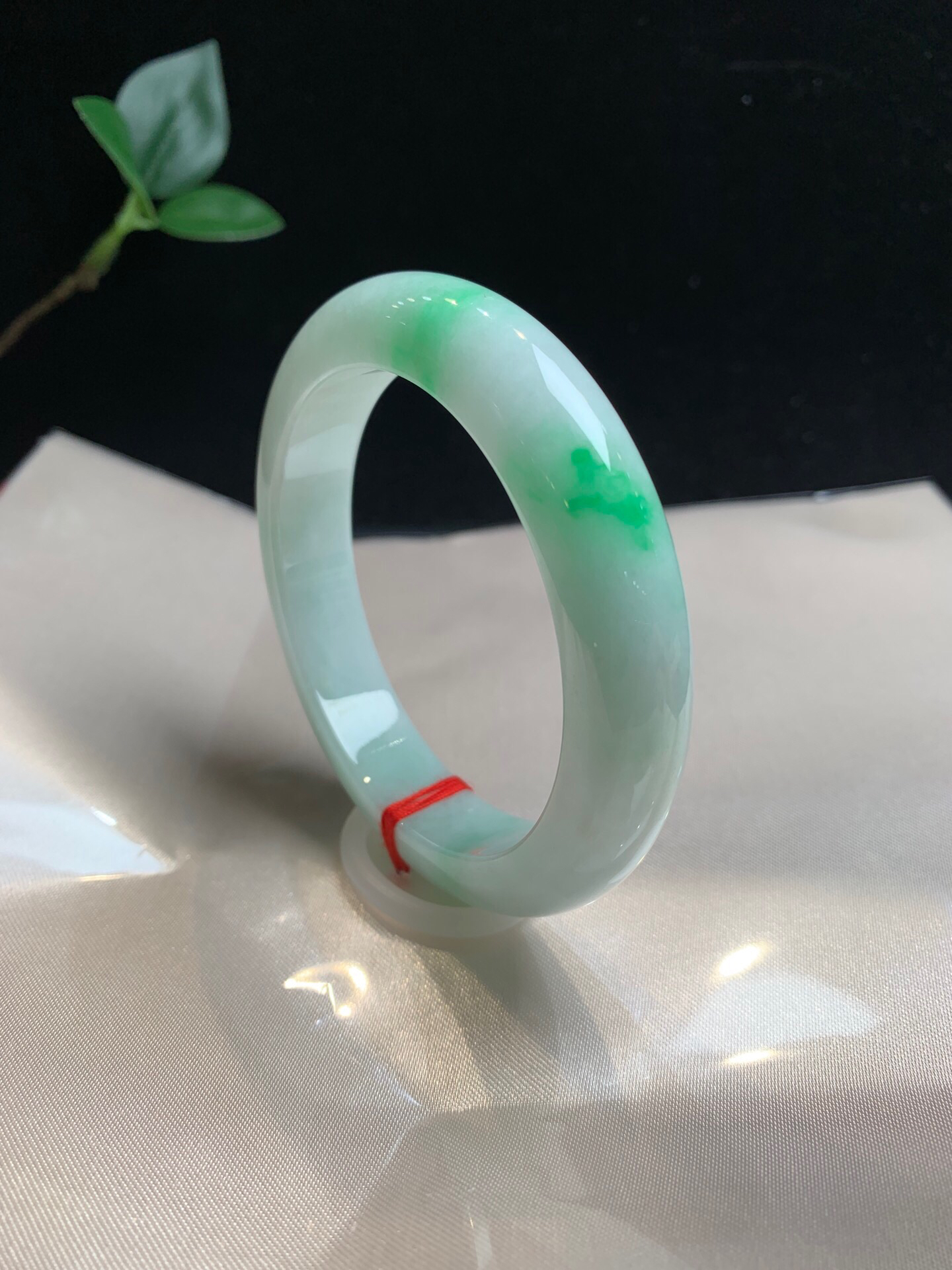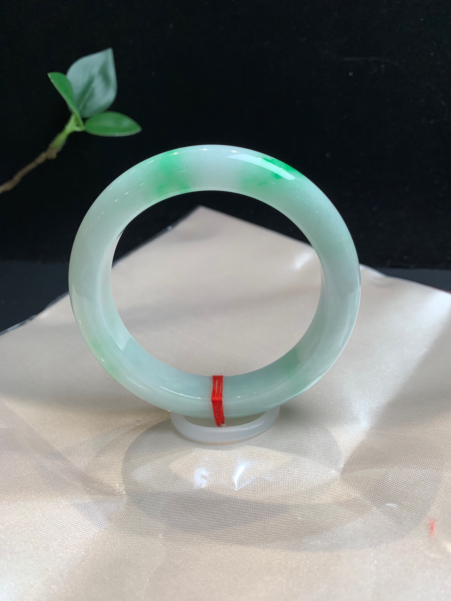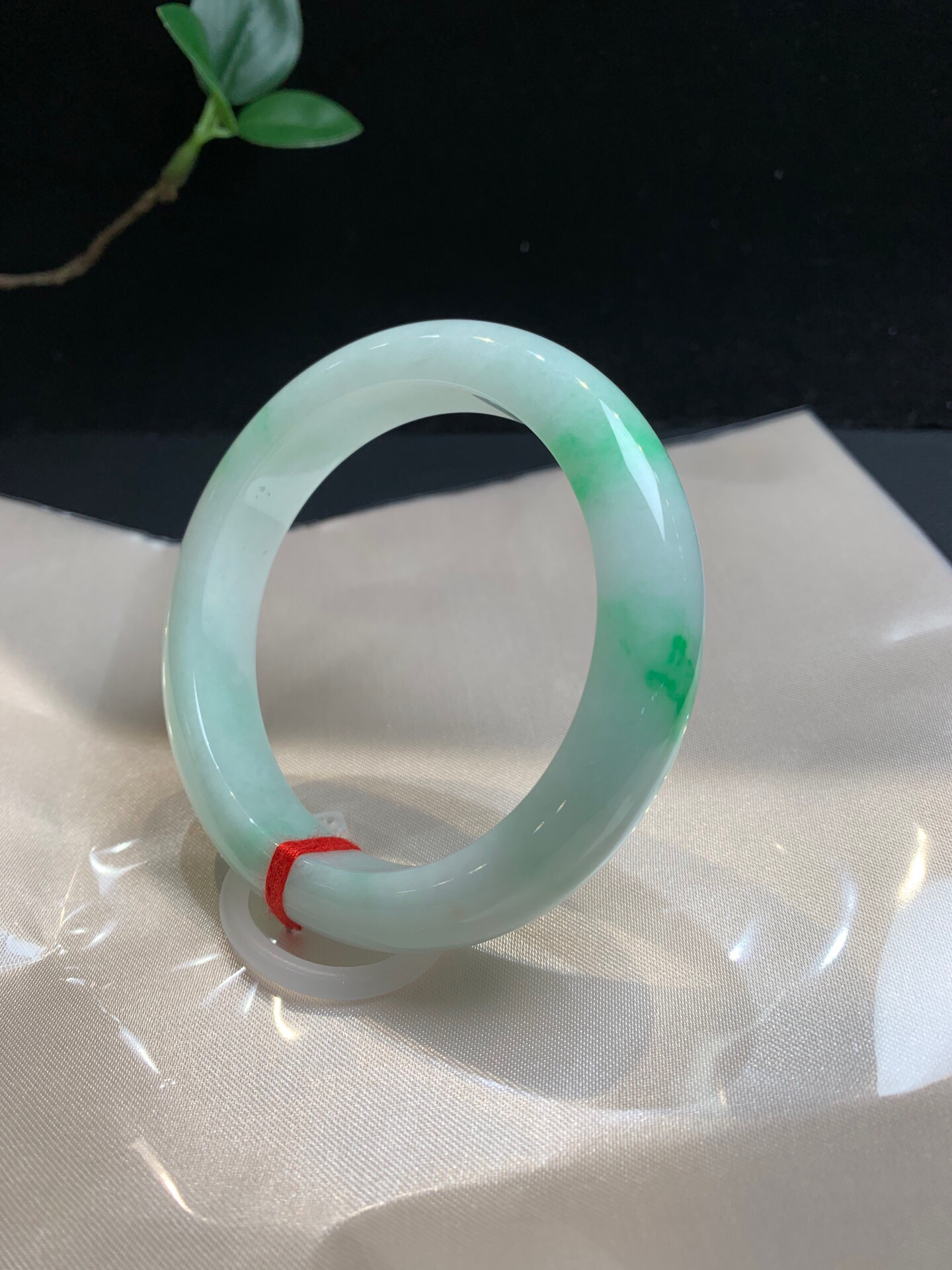 611566,57.7飘绿正圈手镯,12.7-9mm,底子干净均匀,飘几抹阳绿色,完美的,佩戴效果漂亮。💰15000 #优石客珠宝