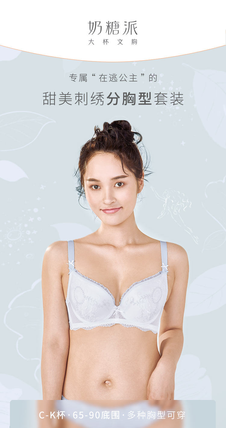 奶糖派大罩杯魔镜文胸套装上托侧收薄款舒适精致刺绣大胸大码内衣