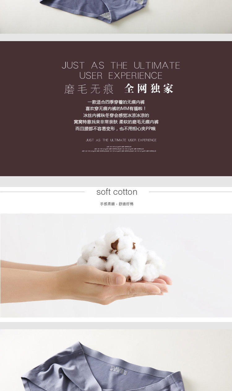 【服饰鞋包】。秋冬款米高布磨毛纯棉女士内裤一片式无痕全棉三角裤内裤
