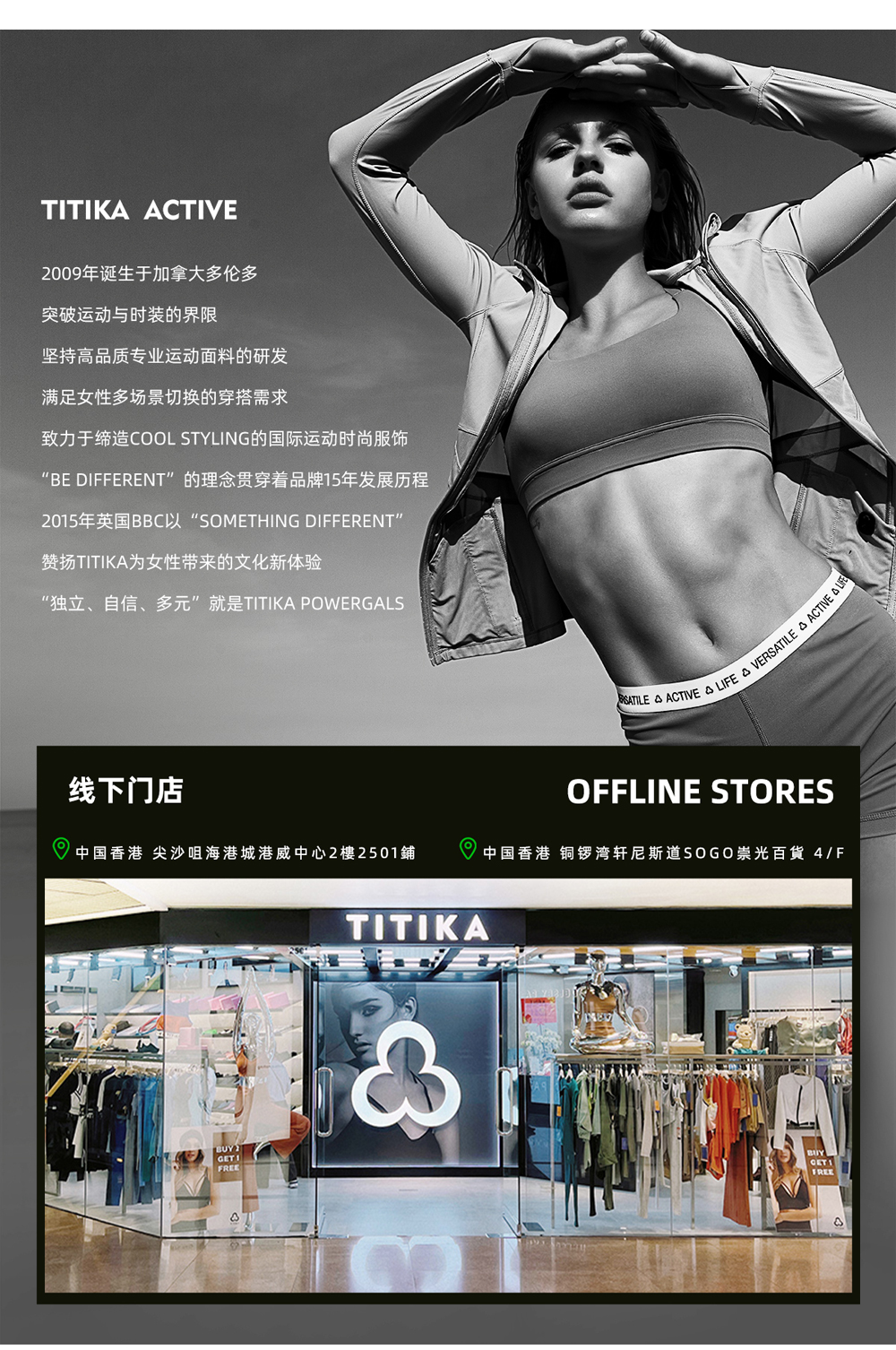 - 2009年,Titika Active Couture诞生于北美时尚之都,重新定义运动服饰,让运动时尚,前卫、性感,更宣扬一种无畏自由的生活态度。TITIKA缇缇卡不断求变,为品牌添加多种元素