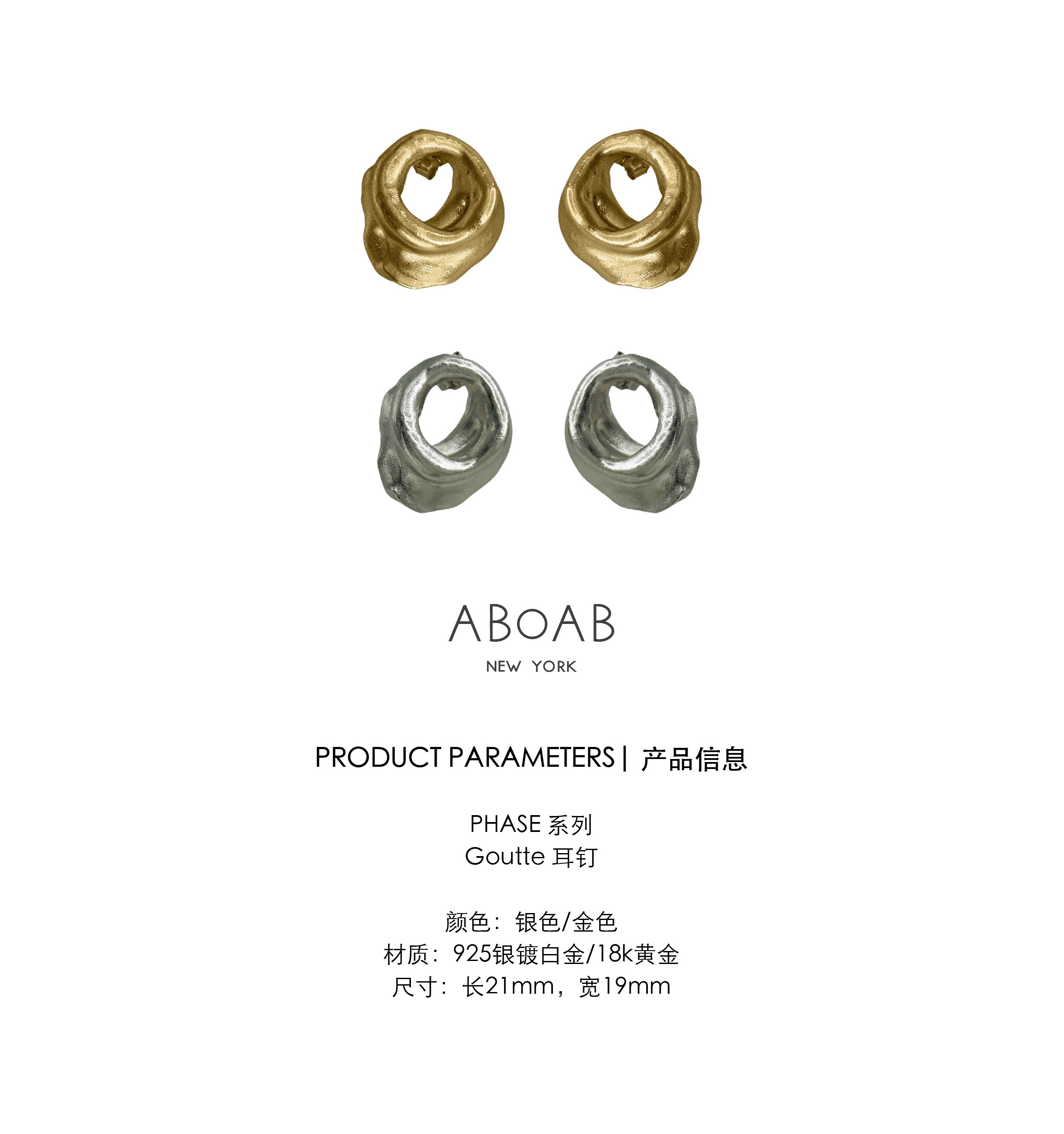 ABOAB|Goutte Studs [耳钉 金 / 银 ]【PHASE】