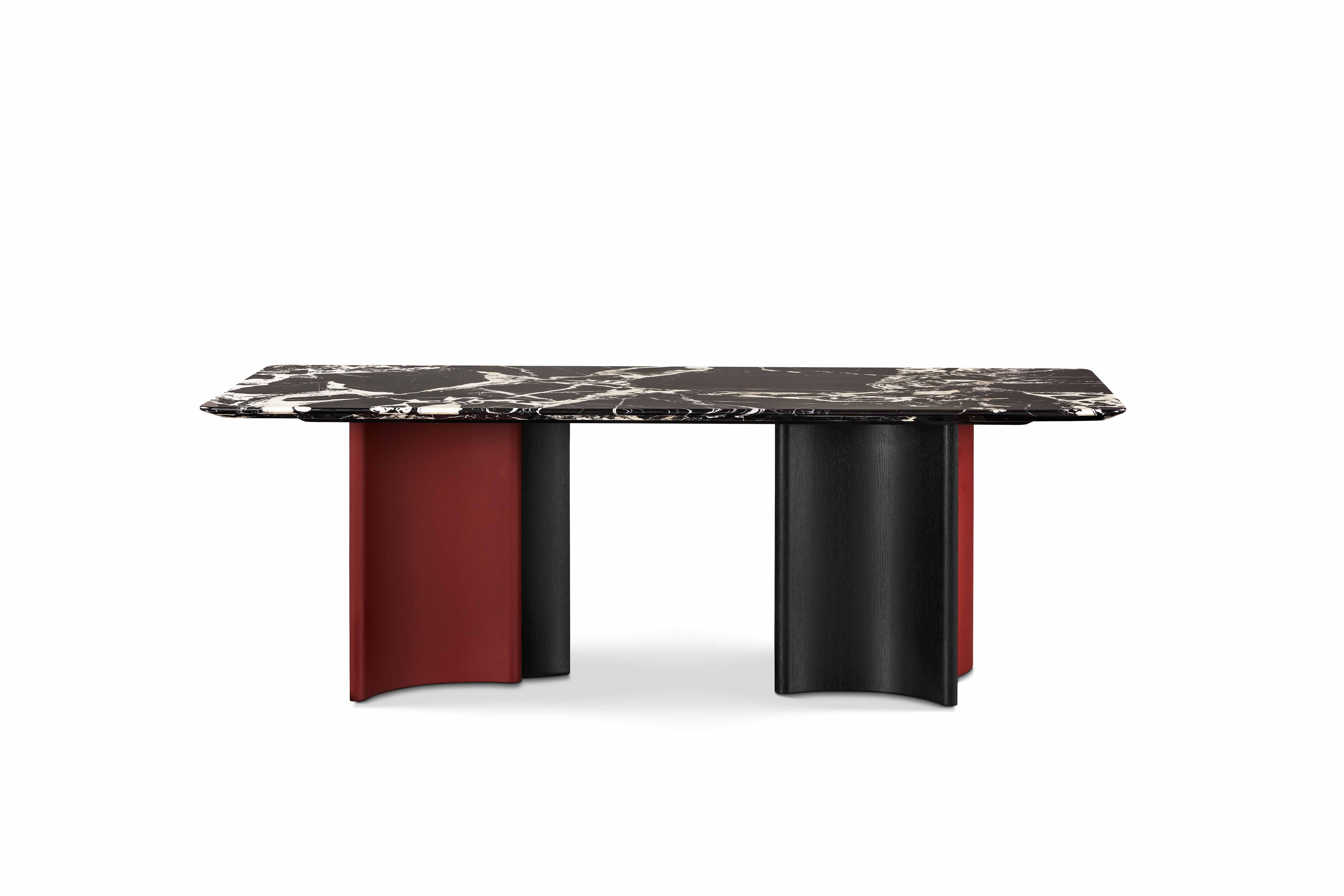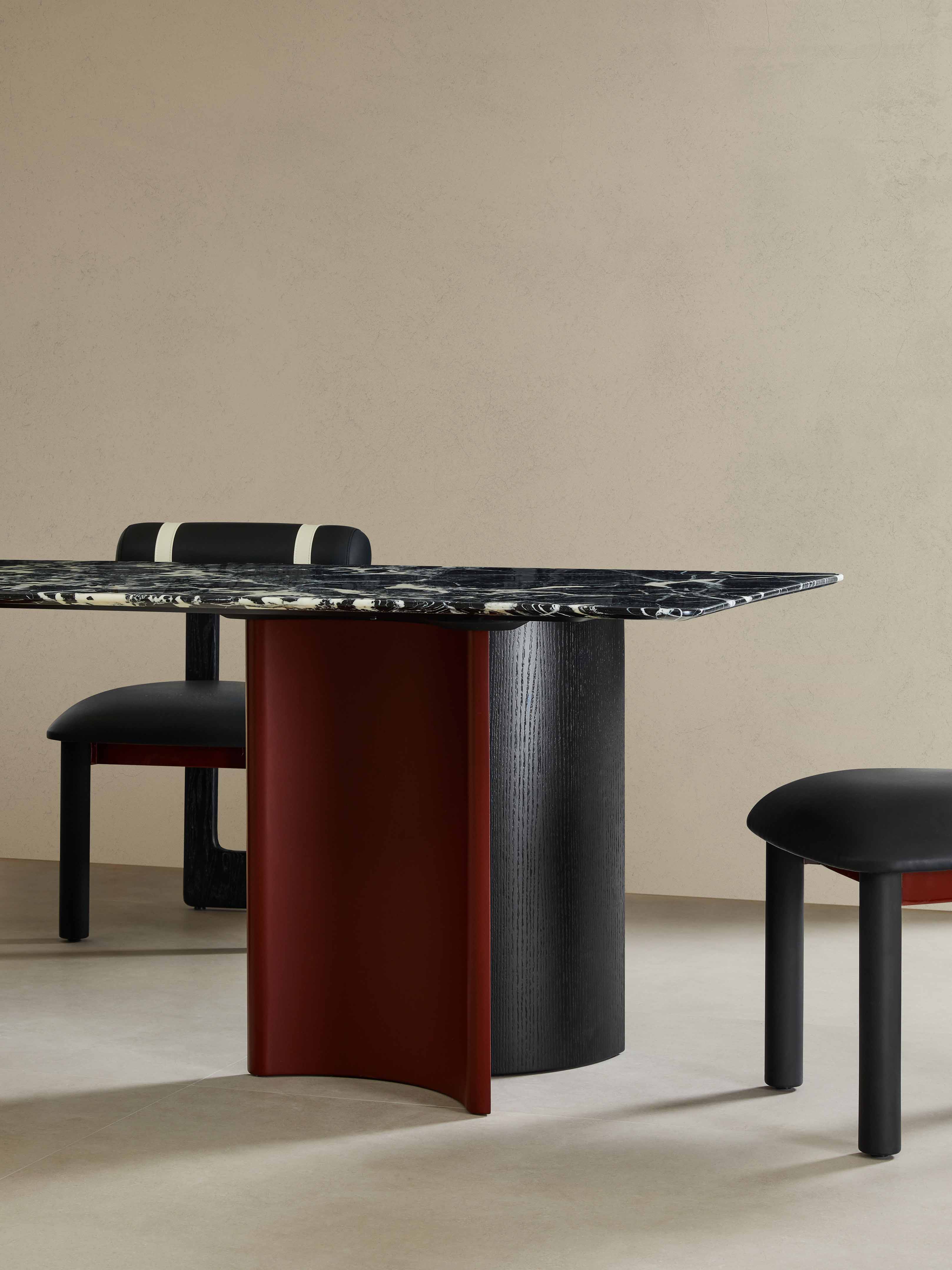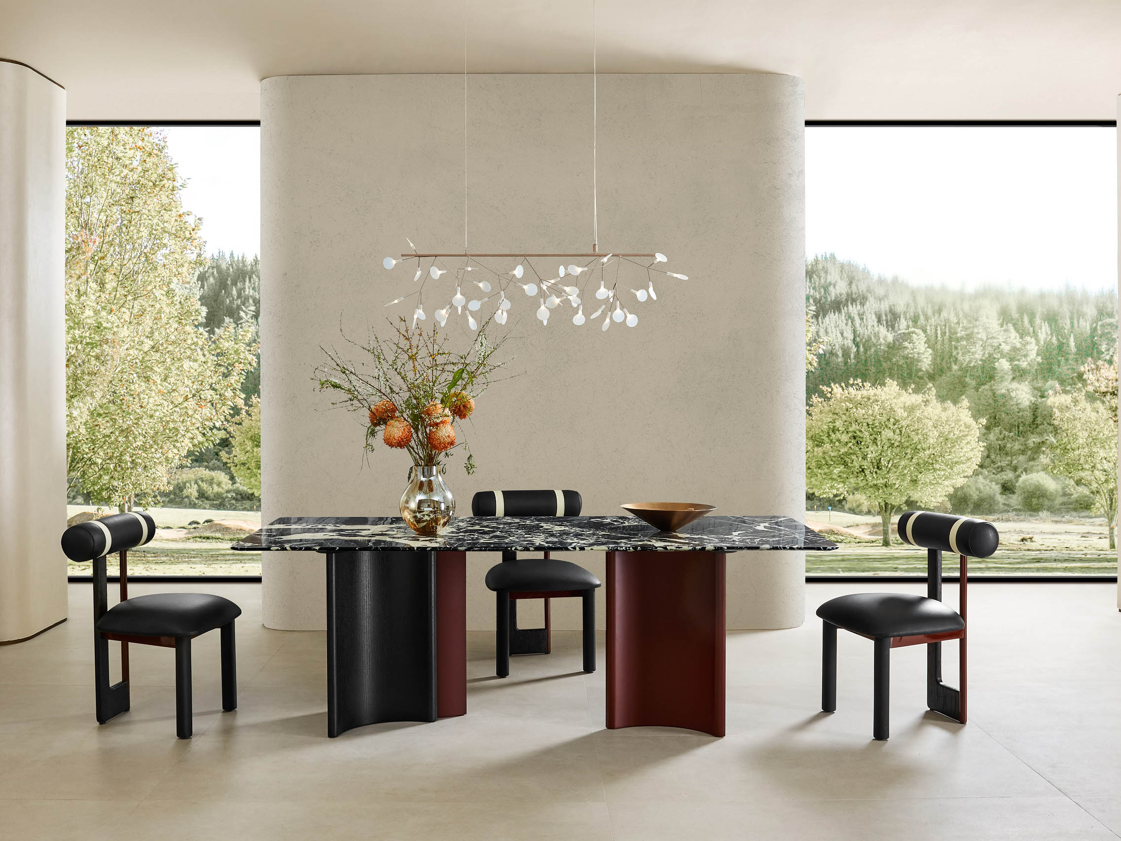 主材:宝格丽黑大理石+拉丝红橡木皮+朱砂红肤感漆