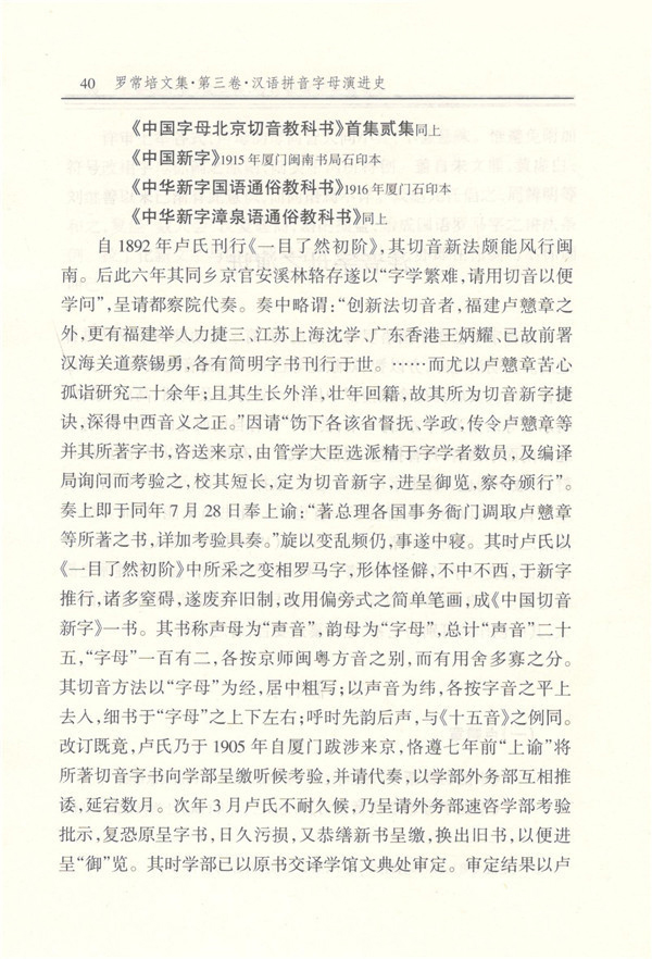 本书原名《国音字母演进史》,是作者1930年在清华大学任教时主讲《中国音韵沿革》讲义的一部分,1934年由上海商务印书馆出版。后来作者又加以修订,1959年由文字改革出版社重印再版,改题《汉语拼音字母演进史》。本书据1959年修订本进行整理,并据1934年本增加《自序》。附录《(汉语拼音方案)的历史渊源》是1959年修订本增加的,原载《人民日报》1957年12月18日第7版,本书据《人民日报》所刊原文进行了校订。本书由尉迟治平负责编校。