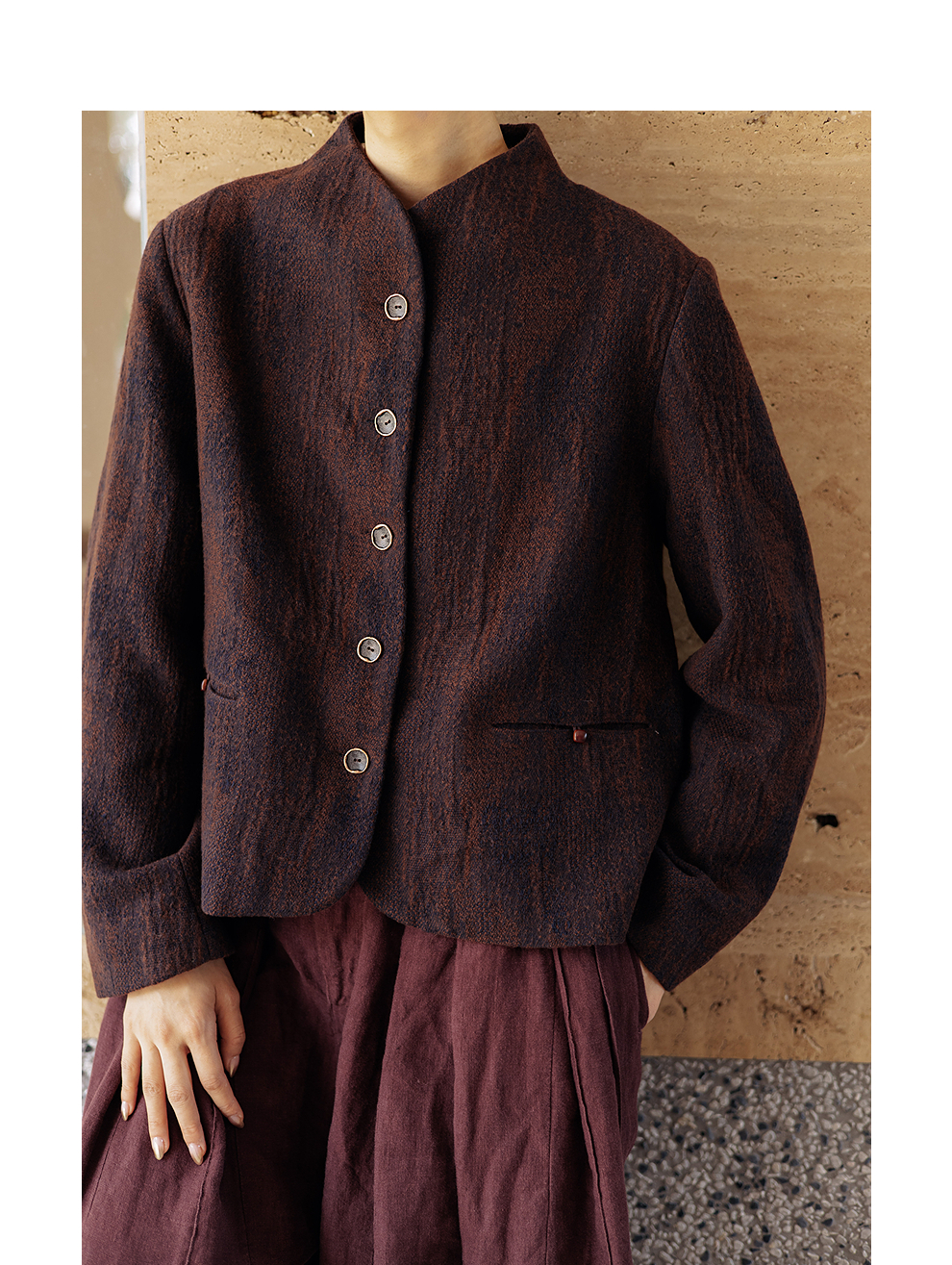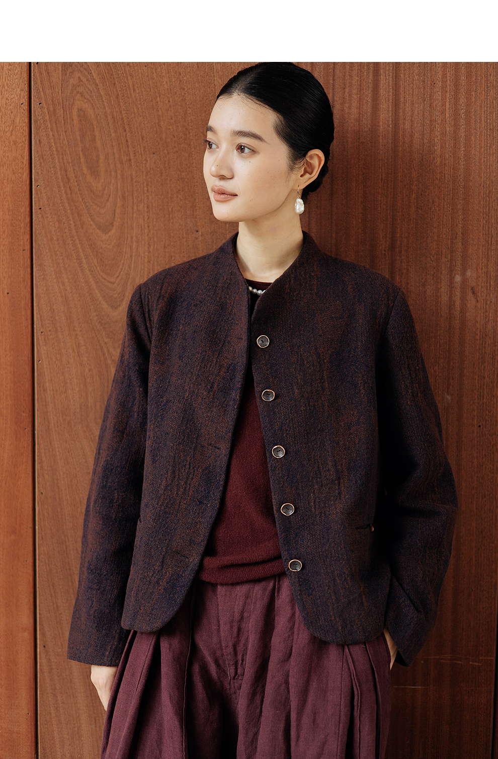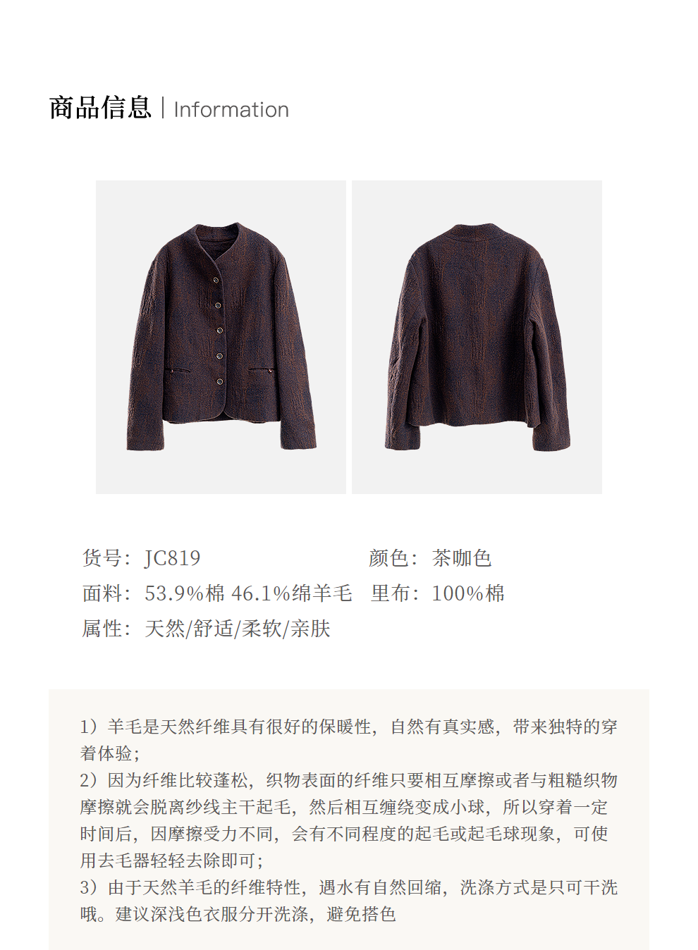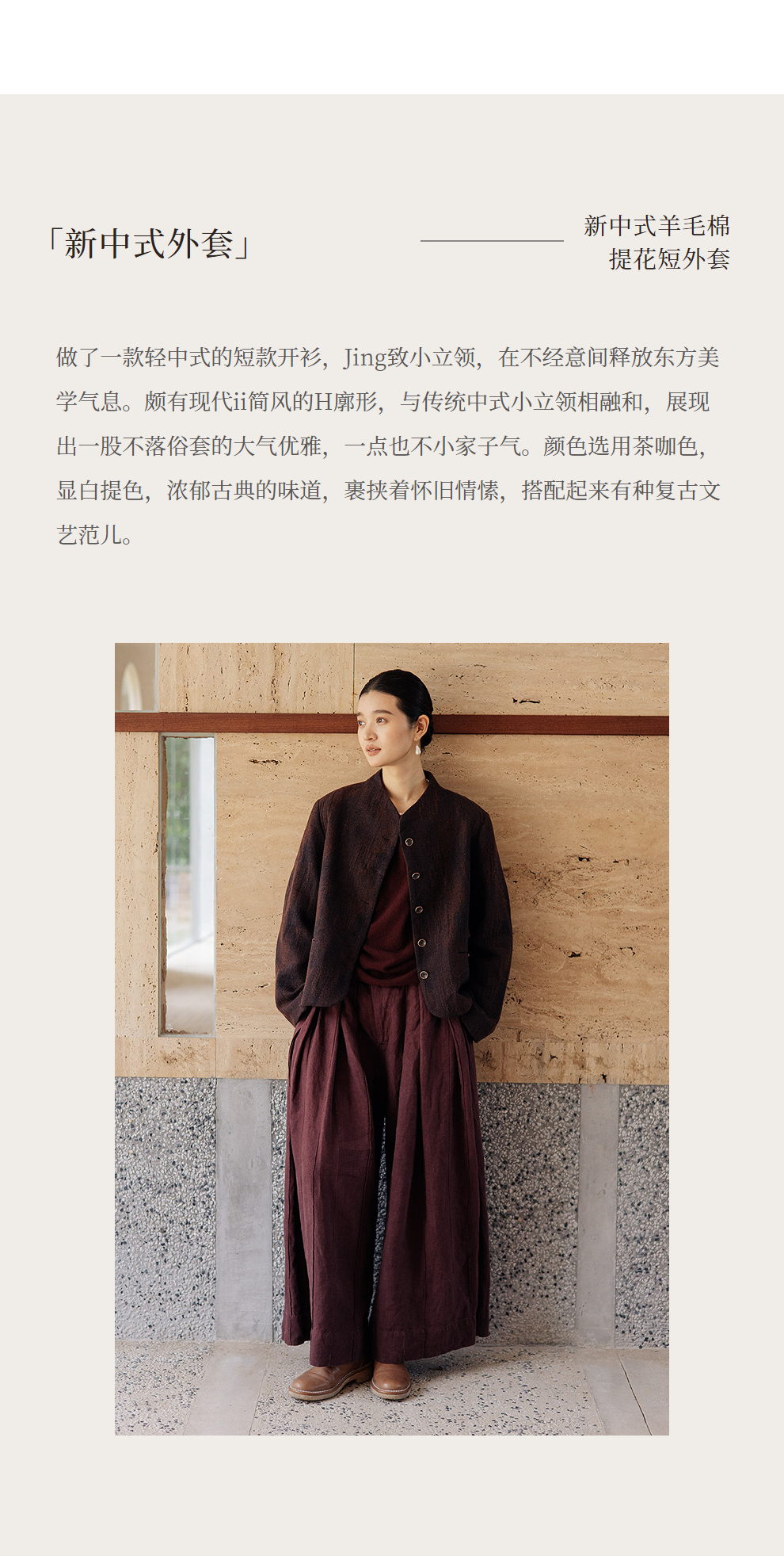 绽放旅行女装819朵/云感羊毛棉开衫上衣新中式提花立领短毛呢外套