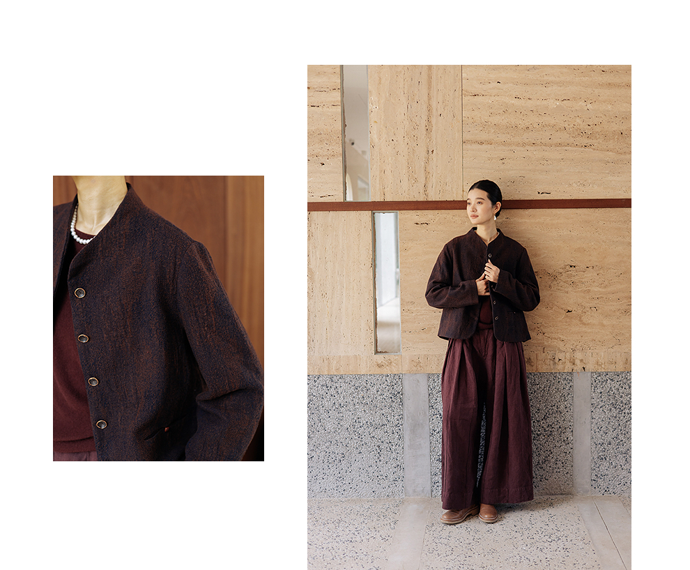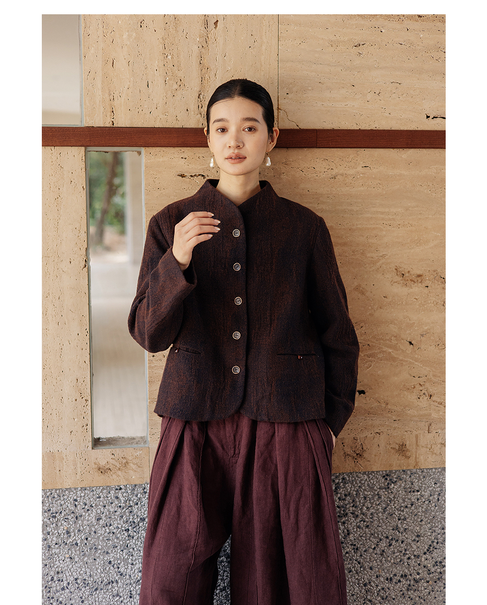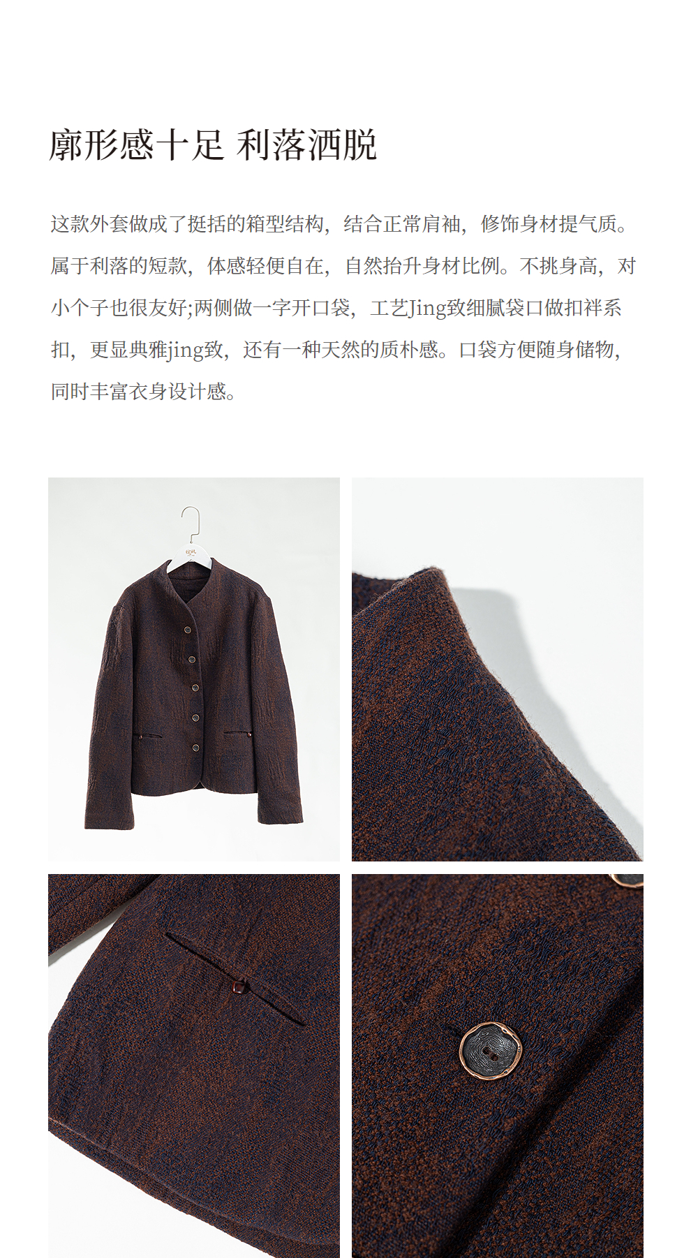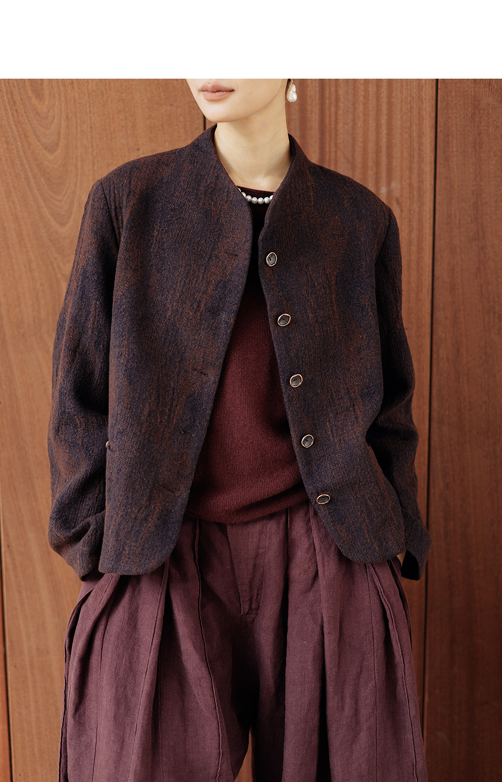 绽放旅行女装819朵/云感羊毛棉开衫上衣新中式提花立领短毛呢外套