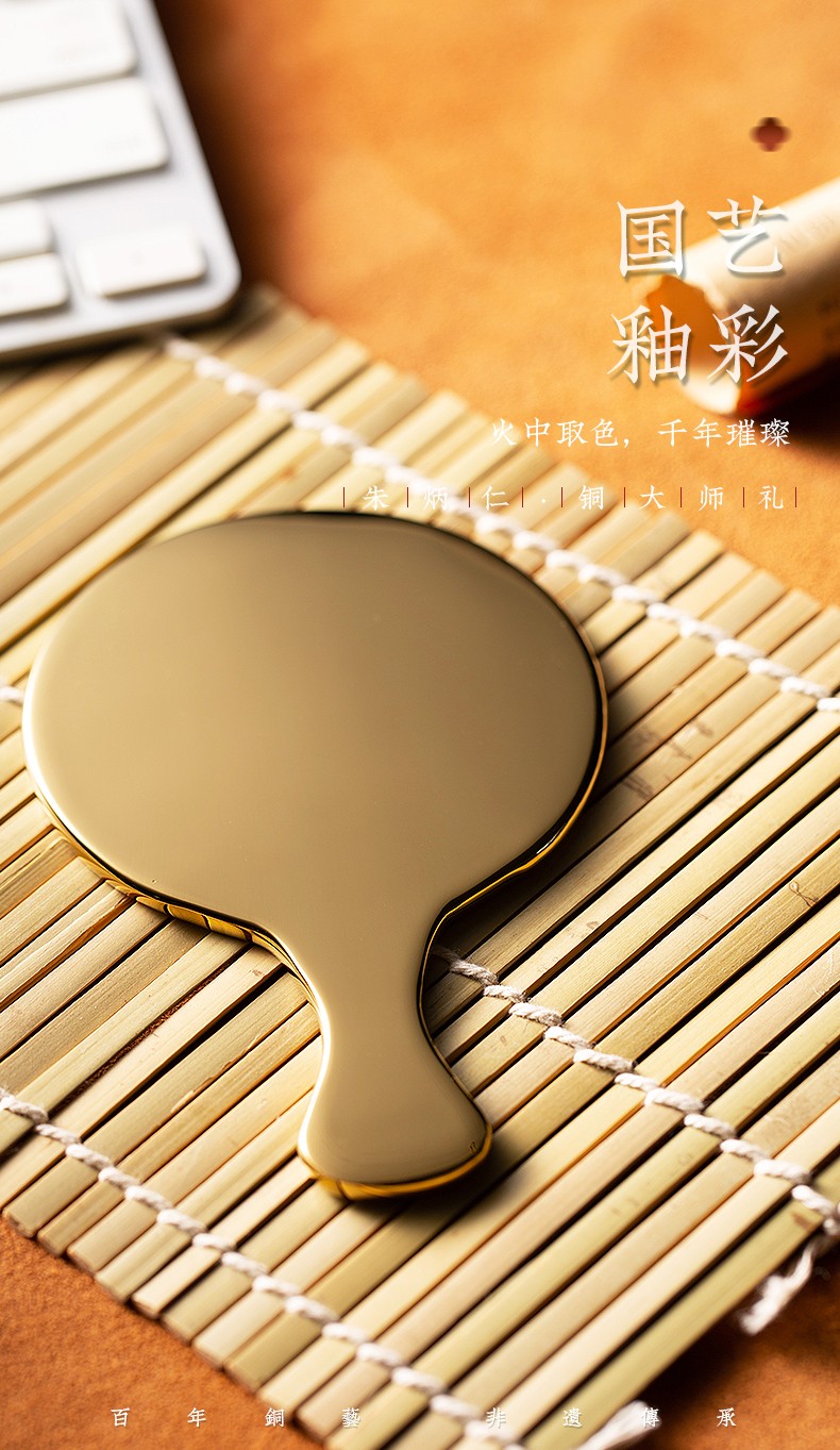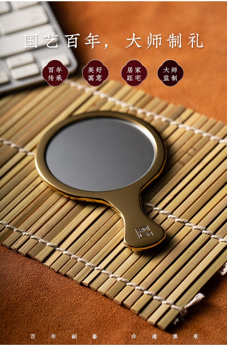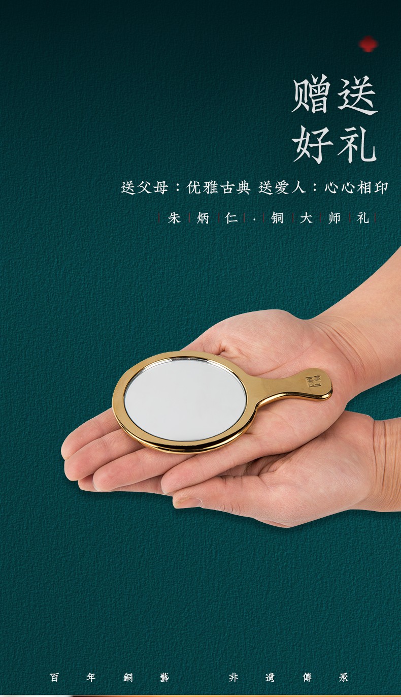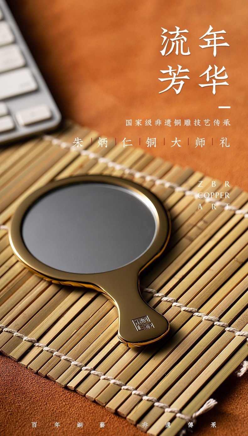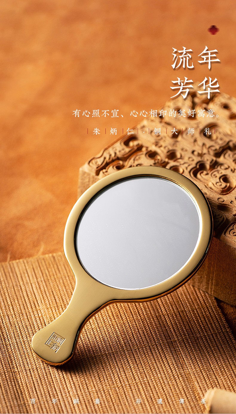 【6F】朱炳仁 铜 流年芳华手柄铜镜 家居饰品 艺术品生活 礼品礼 流年芳华铜镜