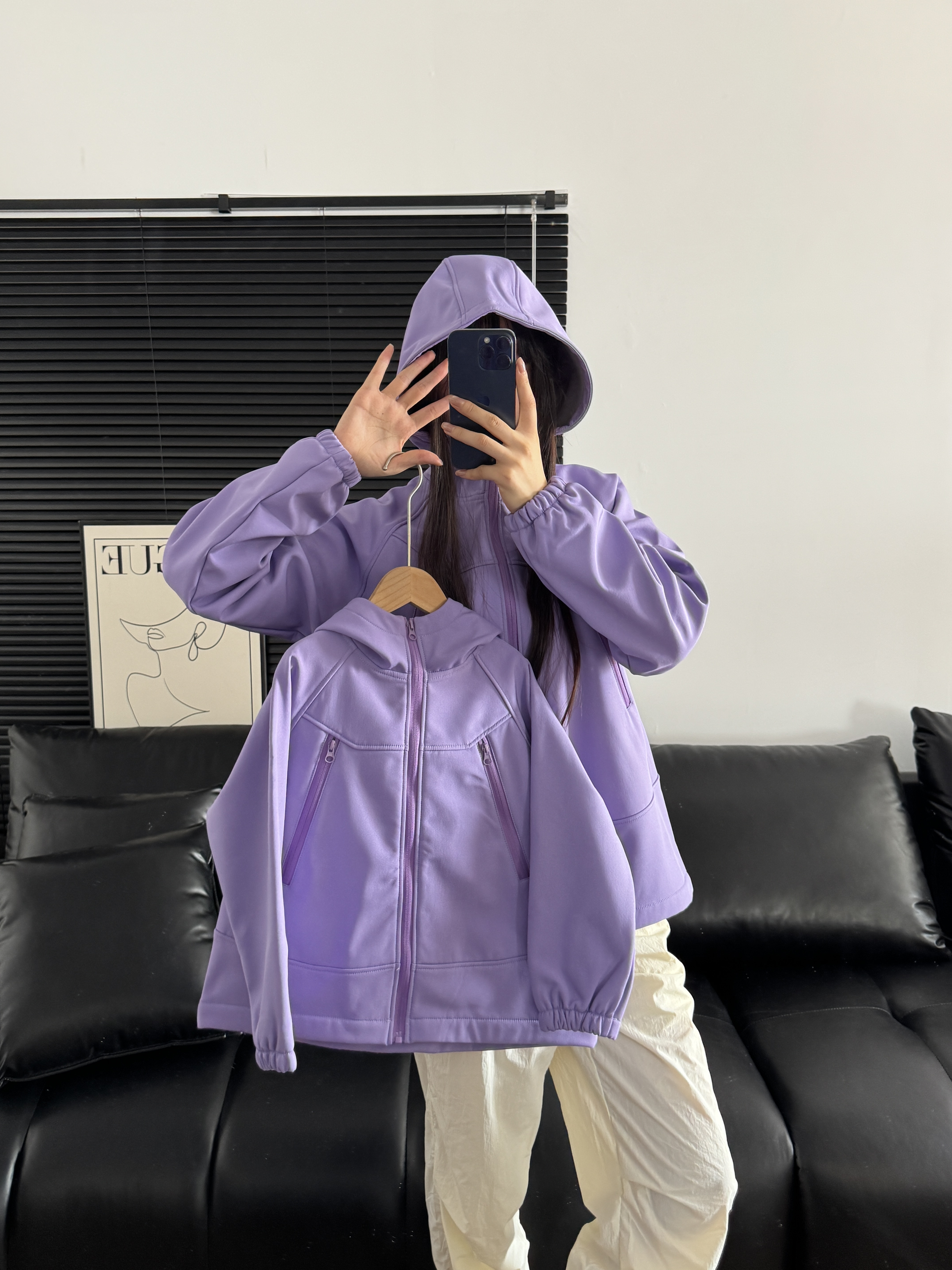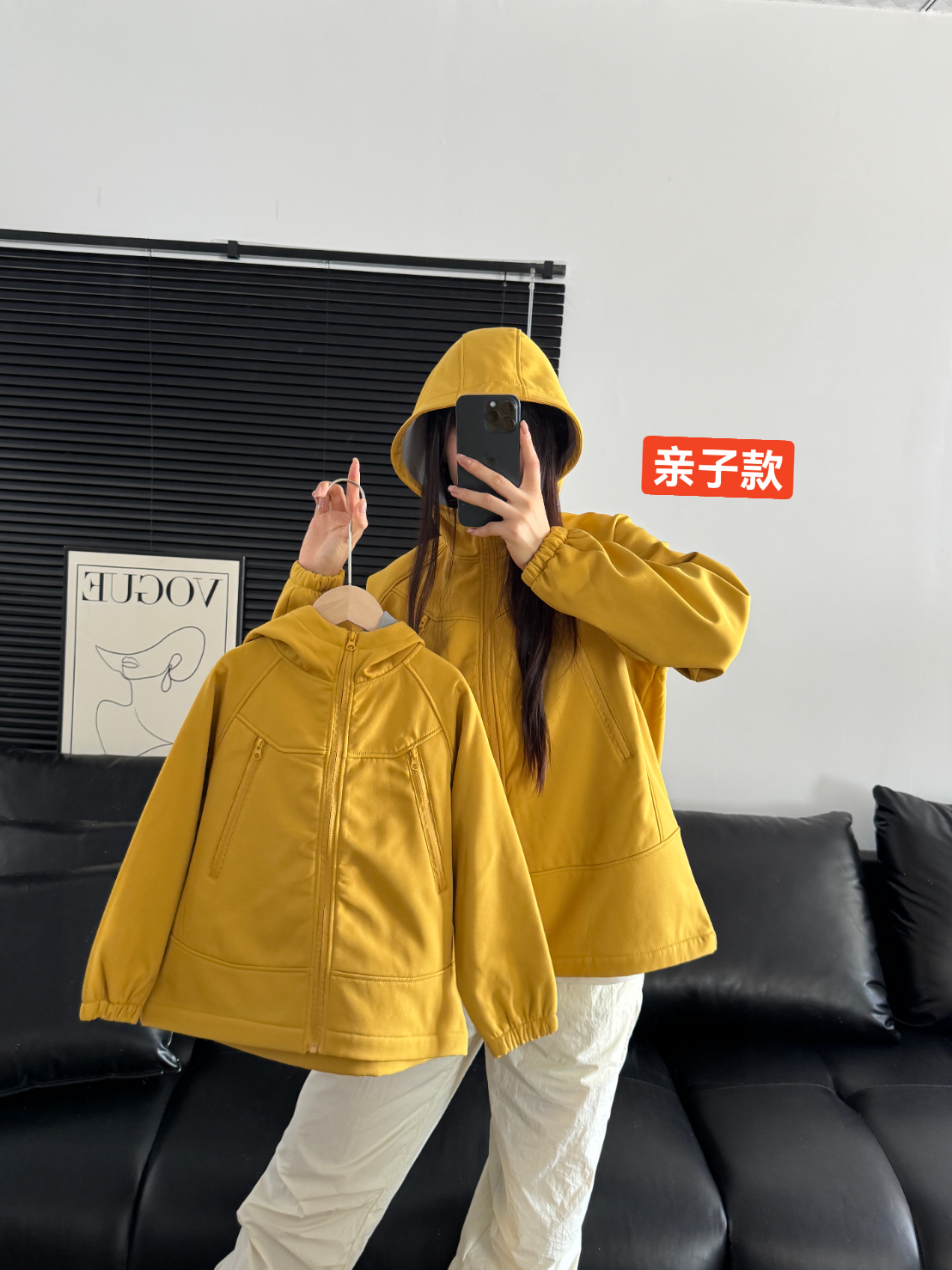 品牌直发,亲子装更优惠!【韩国saeul山系软壳冲锋外套】三防面料,防水、防污、防油、内里摇粒绒内胆,琐温防风,保暖透气颜值设计 6色可选,男女童同款 成人码段150-170
