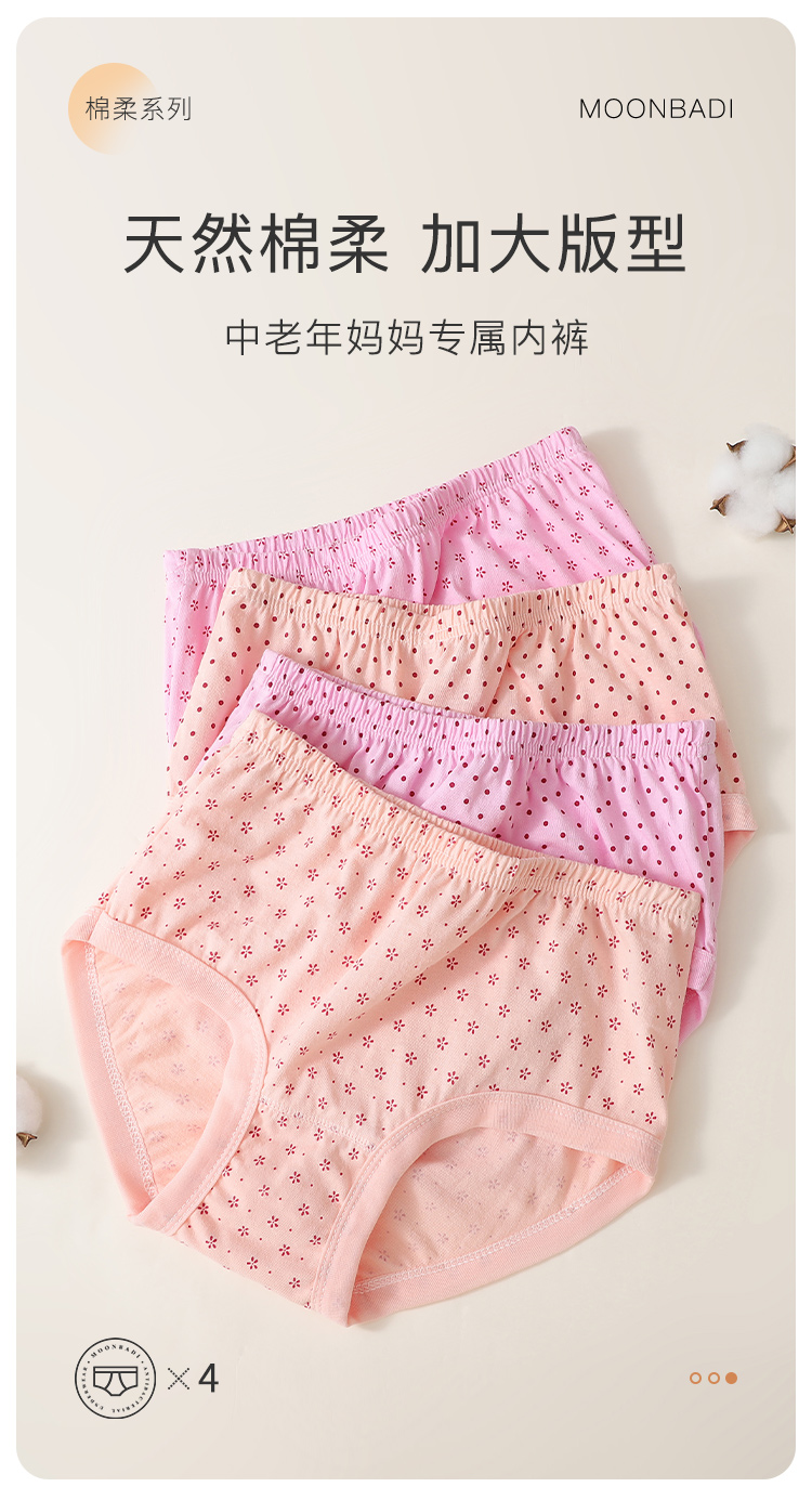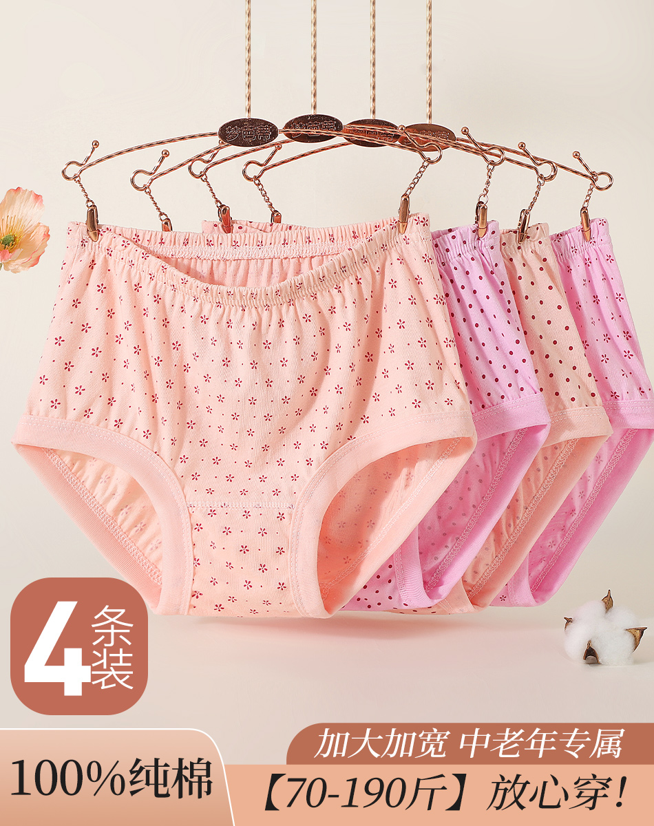 【4条装】中老年100%纯棉三角内裤女加肥加大全棉裤衩女8003中老年三角裤