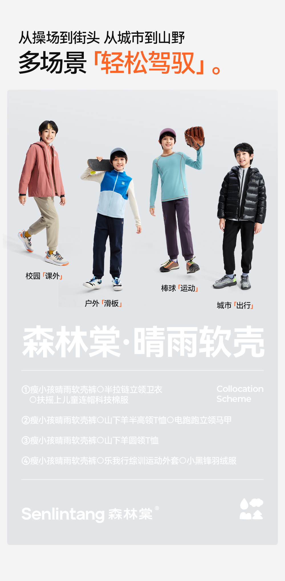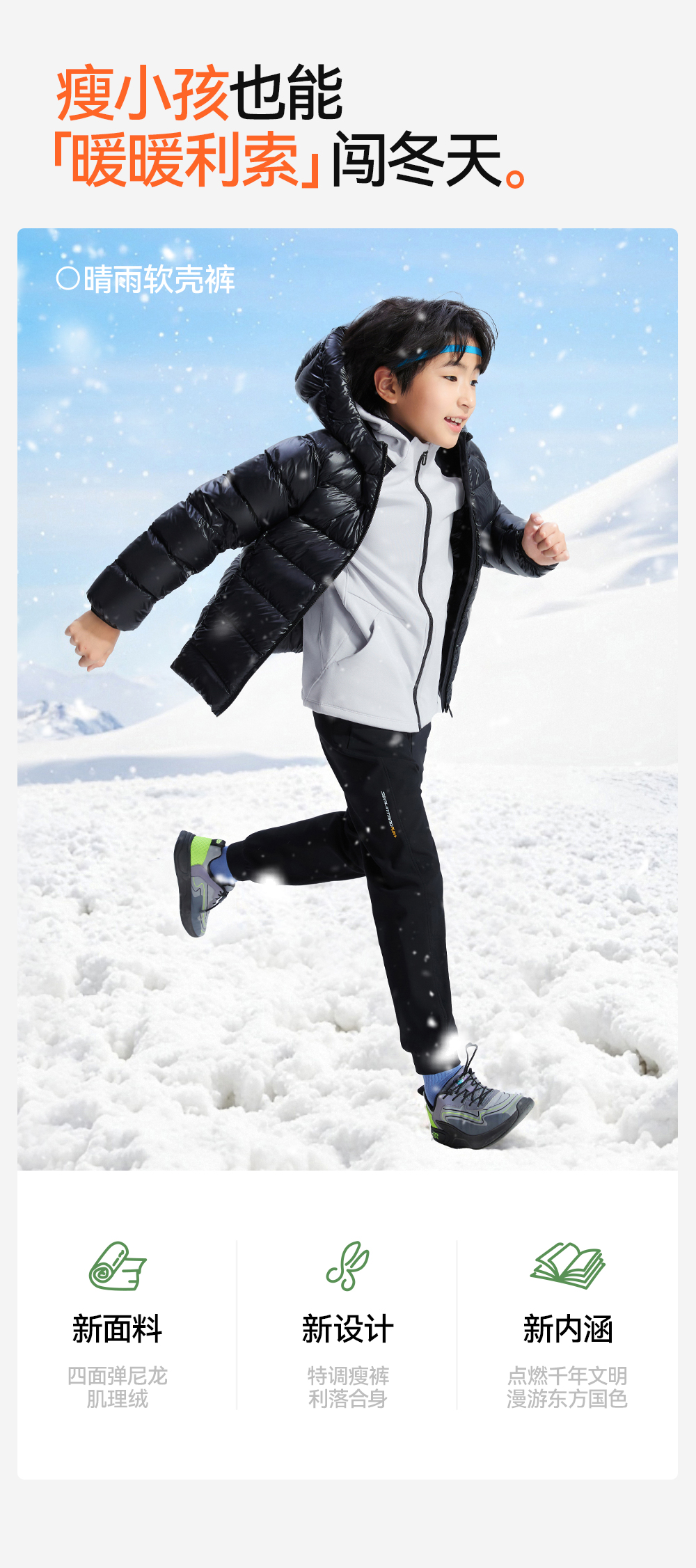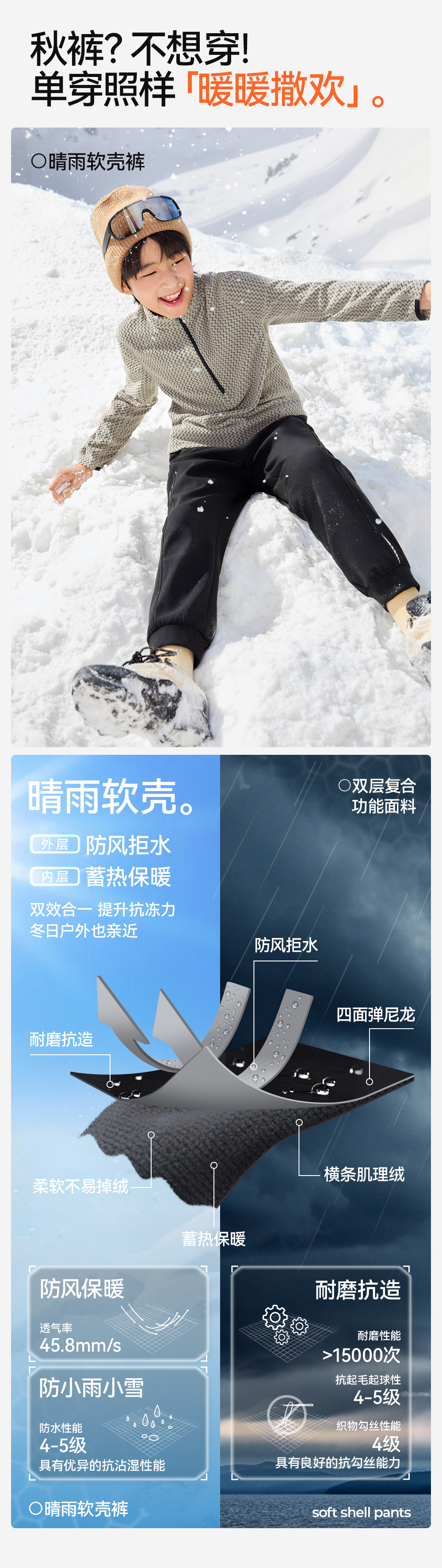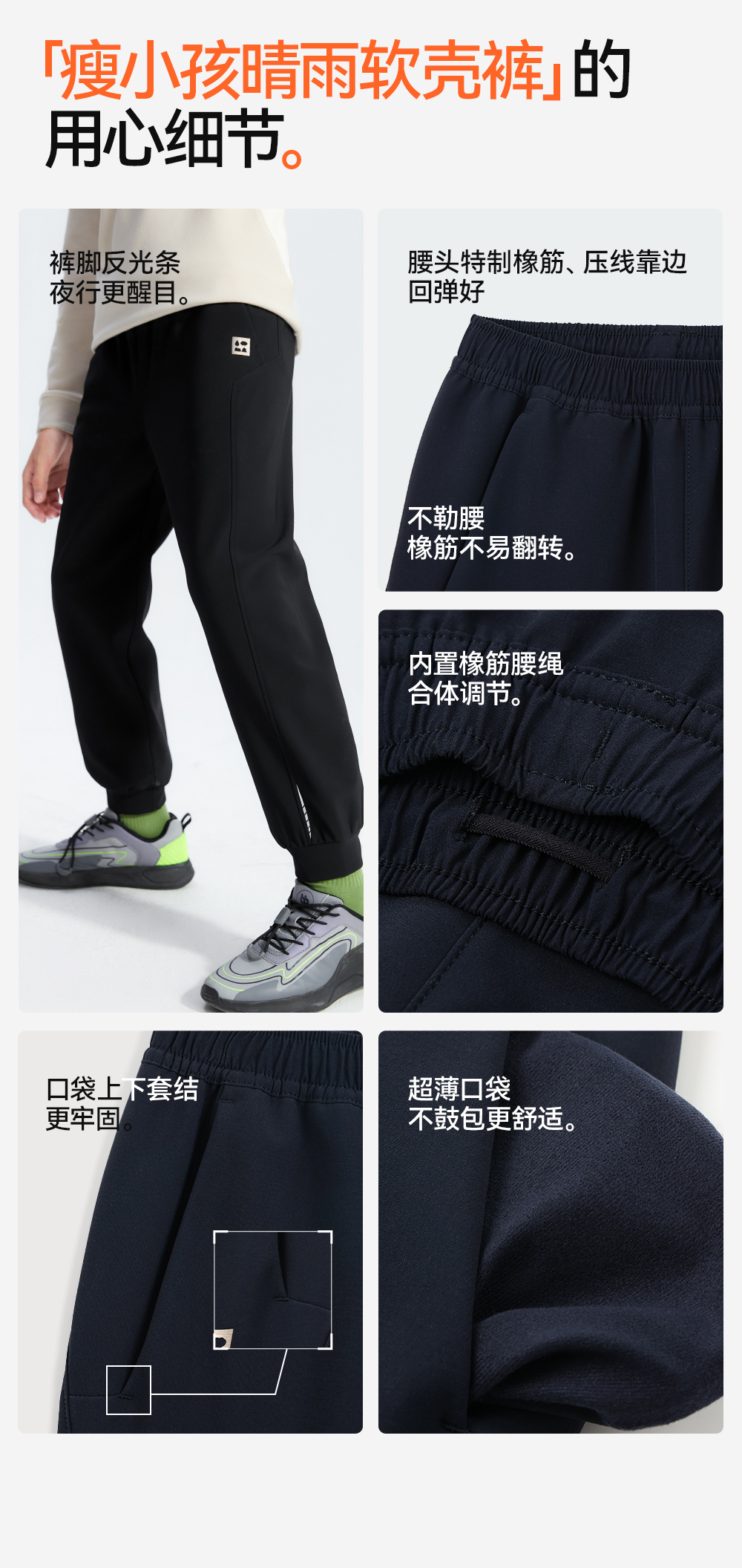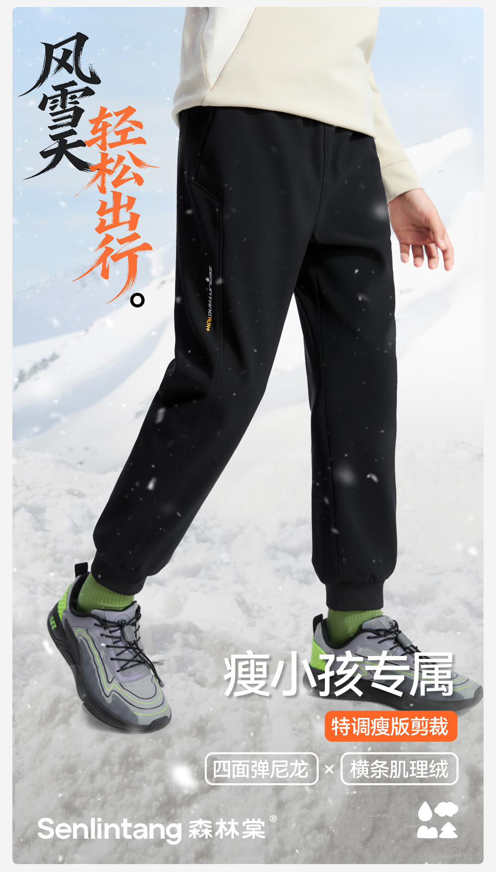 【儿童软壳束口裤】森林棠25冬季新款儿童瘦版保暖束脚运动裤61082511