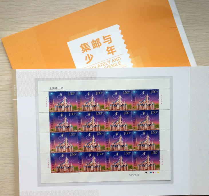 大版册内含:2016《上海迪士尼》大版2张、2016集邮周邮资明信片一枚。