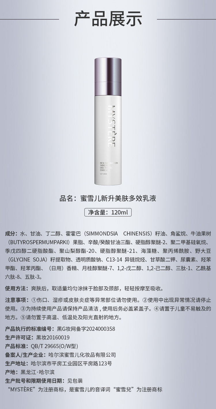 蜜雪儿新升美肤多效乳液120ml保湿滋润多胜肽