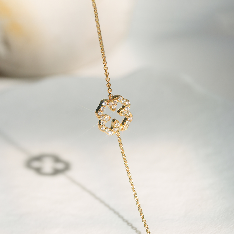 北京仓|Skultuna-Pavé-金色 四叶草 密钻 手链[瑞典设计师]