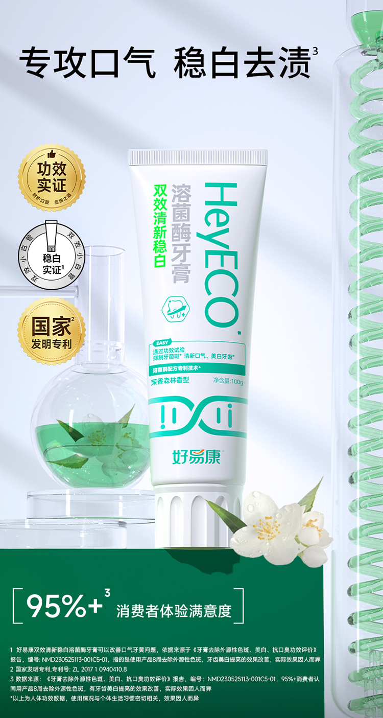 好易康清新稳白小白管牙膏 去牙黄 亮白牙齿 清新口气 减轻口臭异味 双效稳白-3支囤货装
