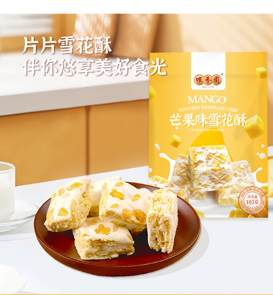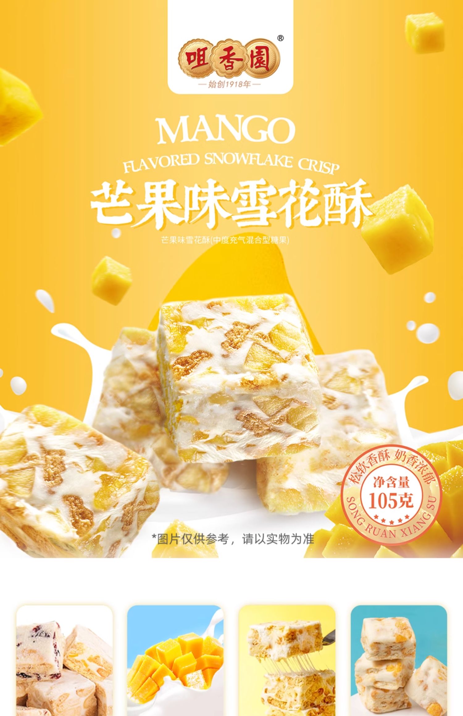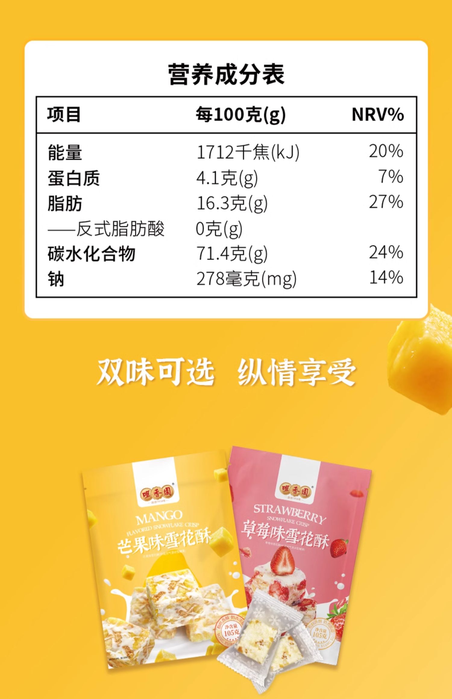 【咀香园雪花酥105g】草莓糕点春游休闲小吃网红芒果牛扎糖零食